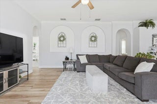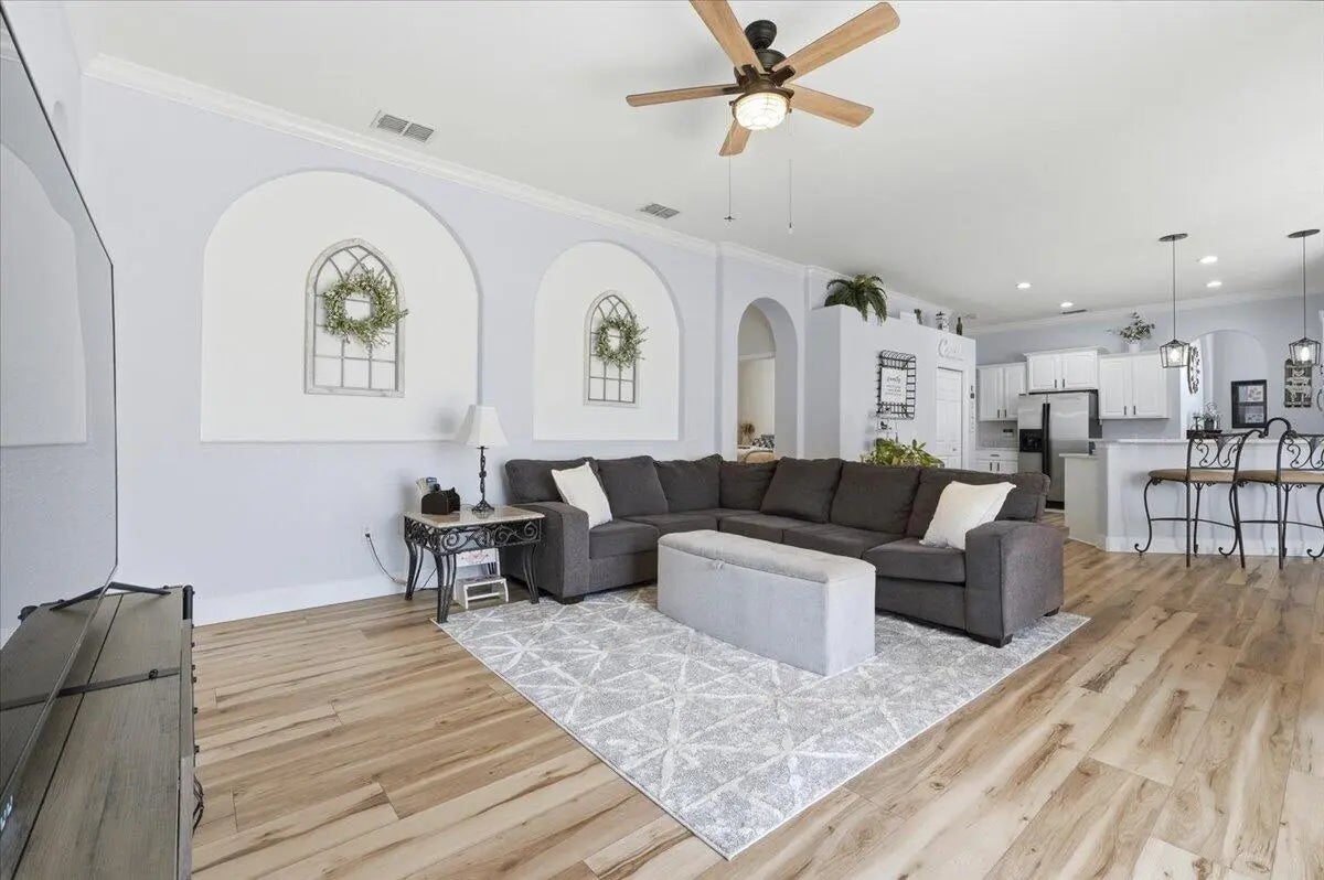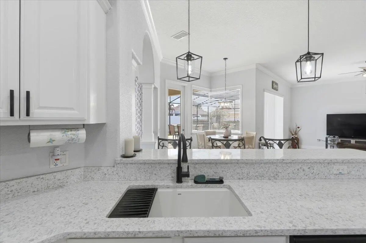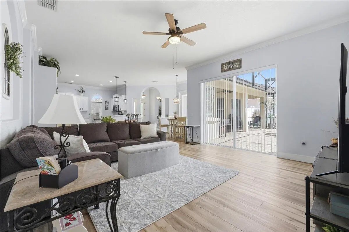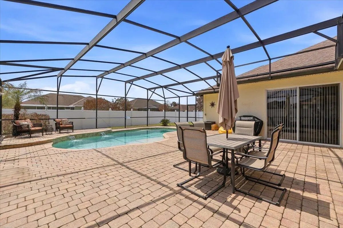 Welcome to your ideal Florida home, nestled in a quiet gated community only a short drive to the hustle and bustle of Orlando, the fun capital. This cozy 4 bed 3 bath home offers a perfect blend of comfort, style and convenience. A warm and inviting living space with an open- concept layout that flows effortlessly from the entry through the living and dining areas ideal for everyday living or entertaining.. The bedrooms provide ample comfort and privacy, designed with practical finishes. The kitchen features generous cabinet and counter space, and easy access to the main gathering areas. Natural light creates a bright and airy atmosphere throughout. Outdoor living is a breeze: step onto an enclosed patio with gorgeous pool and fenced in yard where you can entertain or simply relax.
