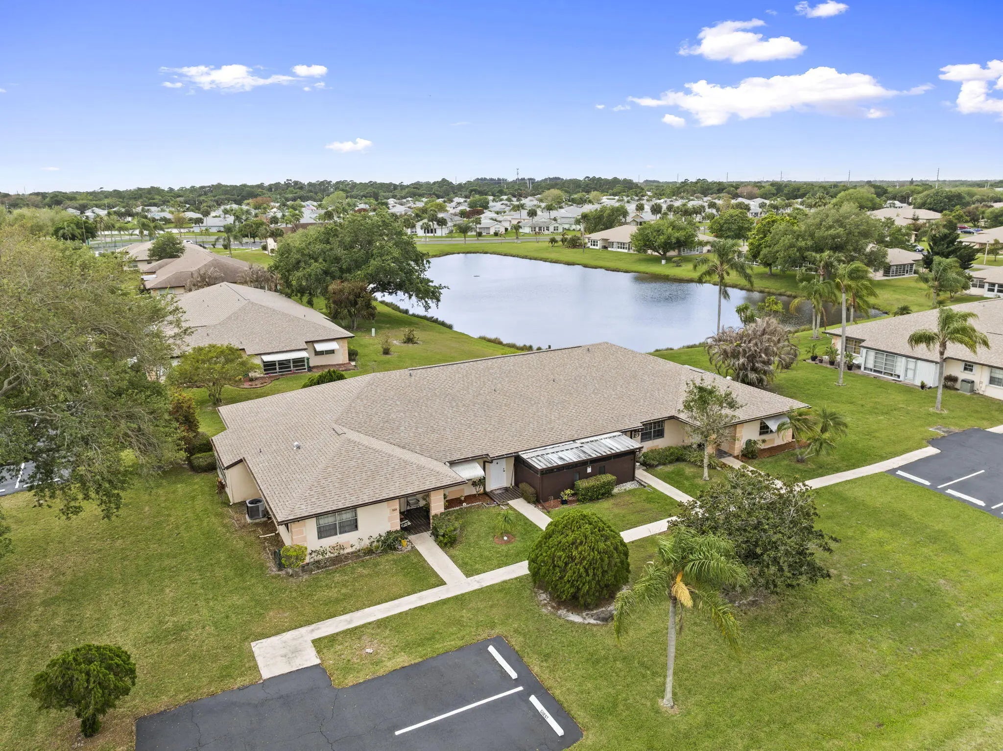 Aggressively priced end-unit waterfront condo offering serene lake views & endless potential. Tiled front entry welcomes you with landscaping ready to be customized to your desire. Featuring partially updated kitchens & bathrooms, this home includes an oversized Florida room filled with lots of natural light, perfect for relaxing while listening to the soothing sounds of the lake's fountain. Washer & dryer conveniently located in unit. A/C & hot water heater only a few years old. A fantastic opportunity to enjoy waterfront living at an exceptional value. Gated & guarded community with low county only taxes. HOA fees includes cable, internet, water & sewer. The Grove features a heated pool year round, clubs, shuffleboard, tennis, bocce, corn-hole tournaments & many holiday parties.