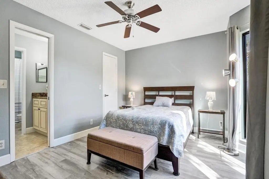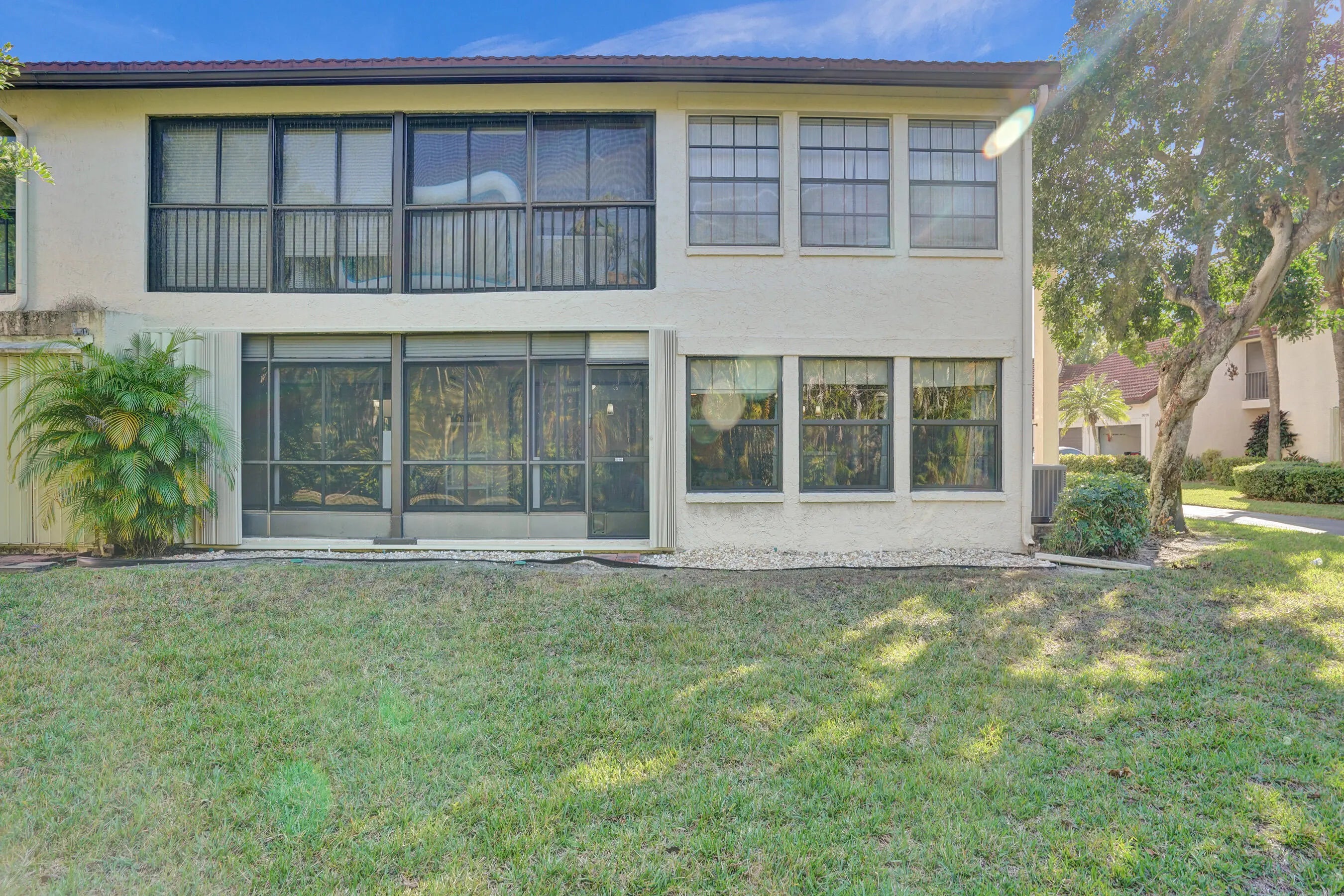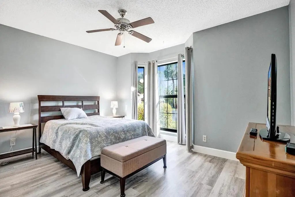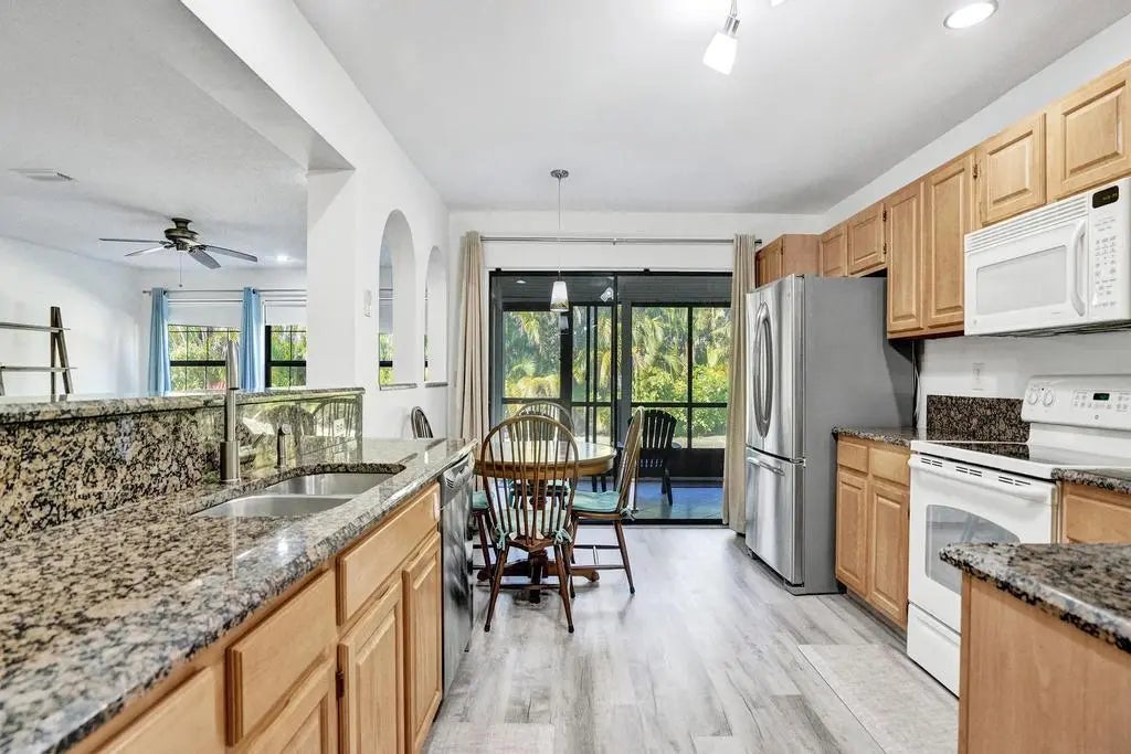 Welcome to this home in Greenacres—a vibrant active community where style, comfort, and peace of mind come together. This stunning 2-bedroom, 2-bath + den residence offers an expansive refined living space with a private entrance, tranquil garden views, and a one-car garage. Major upgrades are already complete, including a 2021 HVAC, 2022 hot water heater, and a long-life metal tile roof. Enjoy total storm protection with PGT impact, insulated, tinted windows, hurricane shutters, and a hurricane-rated garage door. Inside, every detail impresses—from sleek waterproof LVP flooring and fresh designer paint to a beautifully updated kitchen featuring granite countertops. The living and dining areas feel open and elevated, while both bathrooms have been luxuriously remodeled with new cabinetry, tile, and a redesigned master shower. Enhanced with new PEX plumbing, upgraded electrical, and thoughtful modern touches throughout, this home delivers effortless sophistication. Step outside to your private screened patio oasis with peaceful garden views—perfect for morning coffee or evening unwinding. The community elevates your lifestyle with a heated saltwater pool and meticulously maintained grounds, while small pets are welcome. Ideally located near shopping, dining, and major routes, this residence offers both convenience and exclusivity in one of the area's most desirable settings. Make this luxurious retreat your own and experience refined living in this exceptional residence.