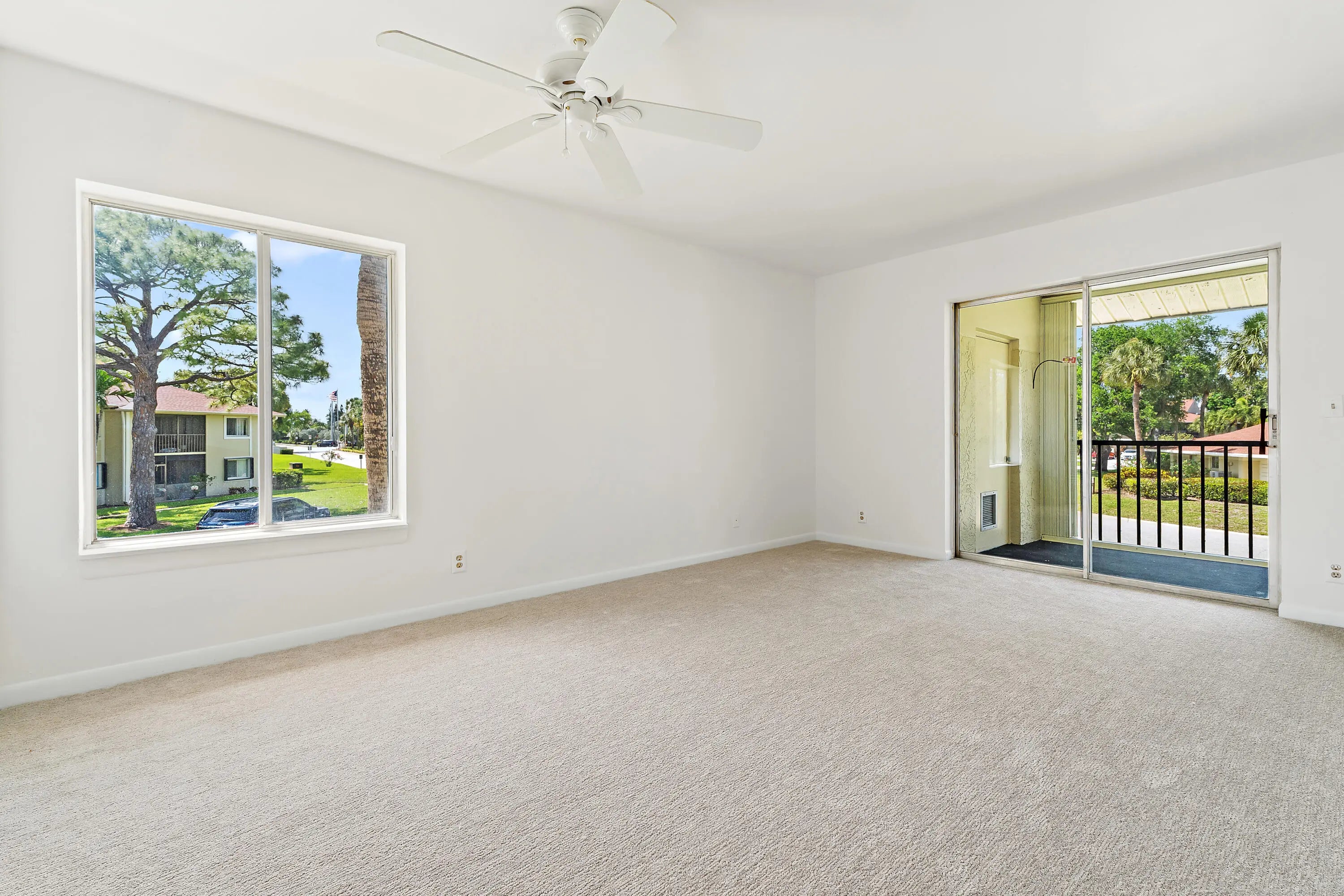 Freshly painted and ideally located, this 2-bedroom, 2-bath second-floor condo in Chasewood North offers vaulted ceilings (no popcorn) and a bright, open feel. Recently painted throughout—including ceilings, walls, baseboards, and casings—along with brand new carpet, the interior is clean and move-in ready. This is the largest floor plan available in the community, and the building is ideally situated directly across from the clubhouse for easy access to amenities. Major systems have been addressed with a 2019 HVAC and 2020 hot water heater, taking care of key items for the next owner. The second-floor position enhances natural light and ceiling height, adding to the overall sense of space. Centrally located in Jupiter, you're just minutes to local restaurants, shopping, and everyday conveniences, with easy access to both I-95 and the Florida Turnpike for commuting.