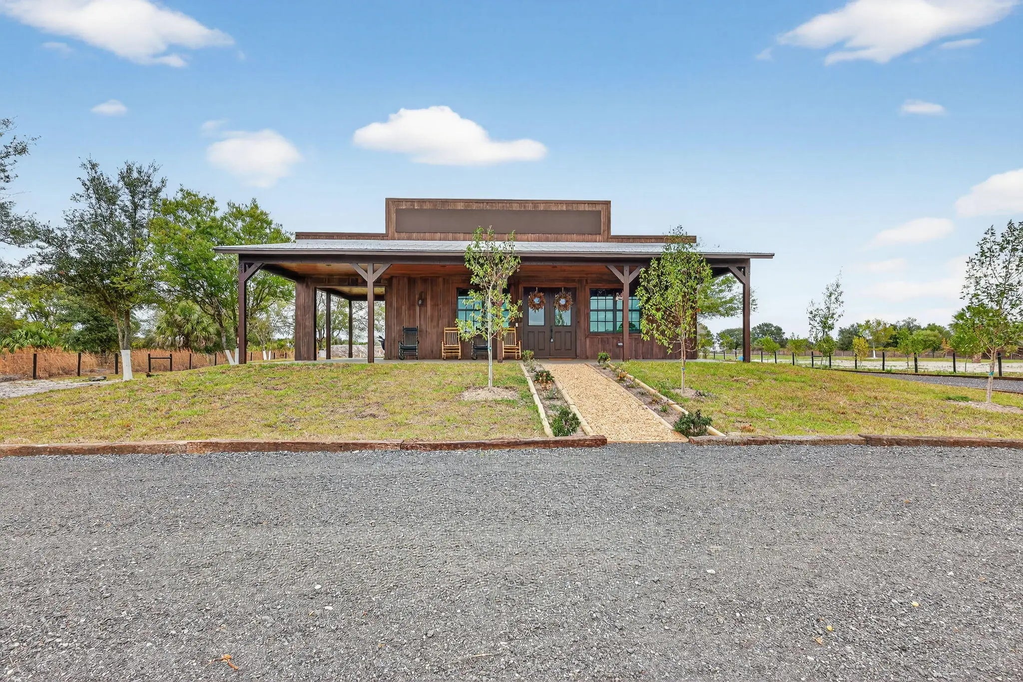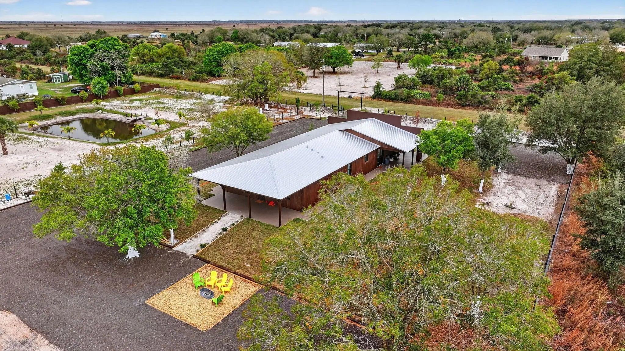 Brand New Ranch Style Home in Okeechobee Florida!!! Fully Furnished and move-in ready. This property sits on 3.75 acres (3 lots) with a pond built in and a private shooting berm area, perfect for safe target practice. This home has a western style touch all around it. Perfect for anyone looking for a peaceful country living. Bring your hat and boots and your animals too! There is plenty of room for cows, horses, donkeys, goats, chickens, dogs, and cats. There are large trees around the property, fully fenced, metal roof, impact windows and doors. Close to Kissimmee Prairie Preserve State Park and Lake Okeechobee which offers world-class bass fishing, airboat tours, and boating. Also, this property is close to great outdoors activities such as rodeos, biking, and four wheelers trails. The property is been sold together with two additional lots that makes the 3.75 acres.