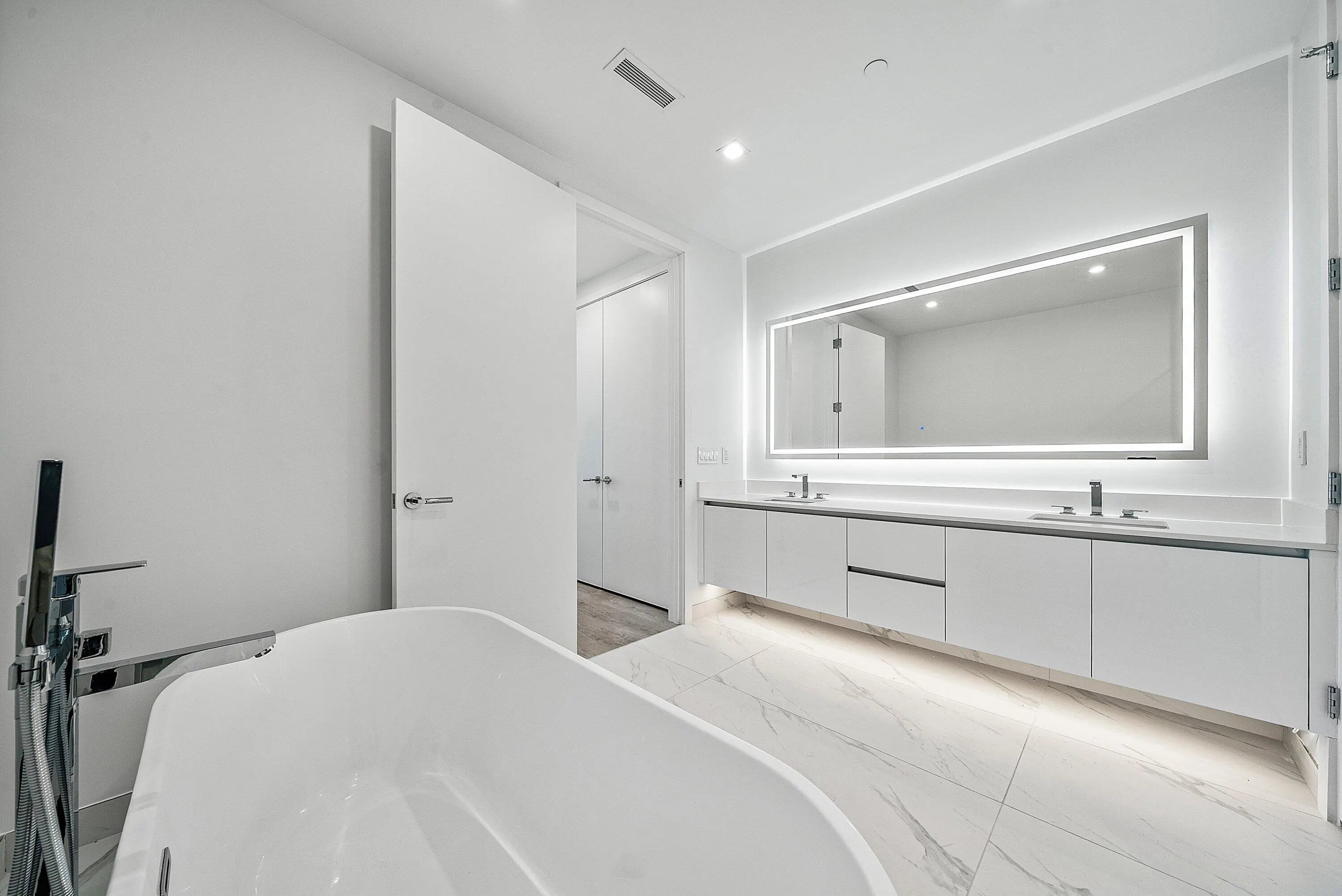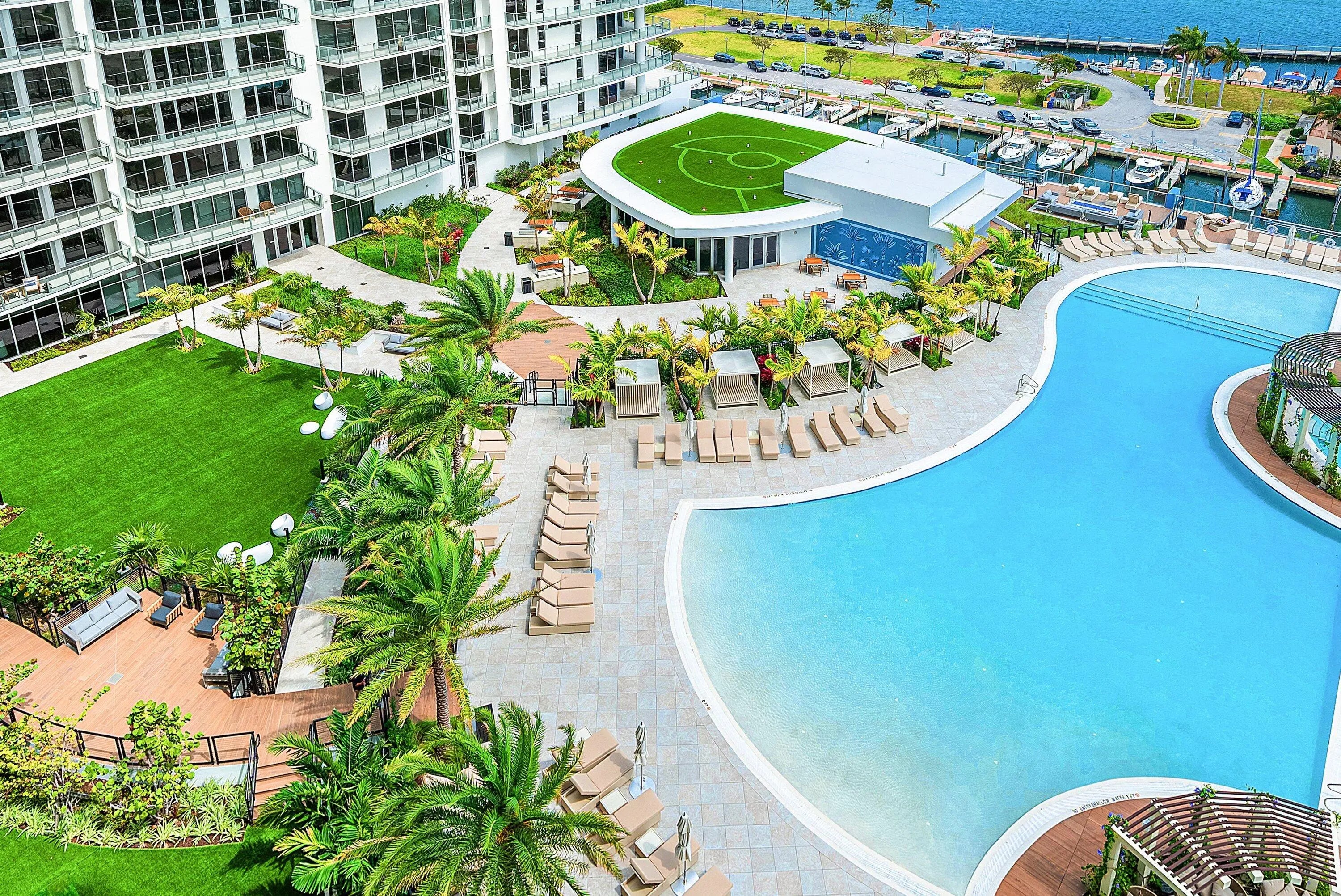 Wake up to sweeping, unobstructed waterfront views at Nautilus 220, where expansive glass and private outdoor space capture the beauty of the Intracoastal Waterway, Lake Park Harbor Marina, and the Atlantic Ocean. This 3-bedroom + den residence is designed to maximize natural light and coastal views, offering a bright, open layout that seamlessly connects indoor and outdoor living. Beyond the views, this residence offers the ease and peace of mind of brand-new construction—no renovations, no deferred maintenance, and a modern design ready to enjoy from day one. The primary suite boasts stunning, sparkling water views with a spa-inspired bathroom complete with dual vanities, freestanding soaking tub, luxurious shower, and water closet. The two spacious guest rooms have their own private bathrooms. The flexible den provides additional space for a home office or bonus room. Interior features include 10' ceilings, floor-to-ceiling hurricane impact glass, and a contemporary kitchen with quartz waterfall countertops, European cabinetry, and premium Miele appliances. Smart home-ready infrastructure and ultra-high-speed connectivity enhance everyday convenience. Nautilus 220 offers an amenity package that rivals a private resort. The 6th floor waterfront pool deck features beach entry, cabanas, and a large spa. The rooftop pool deck offers an additional lap pool and lounge area. There is a full wellness center with cardio and strength equipment, yoga and spin studios, sauna, steam, and physiotherapy rooms. Residents also have access to a theater lounge, golf and sports simulator, bowling lounge, club room, and multiple spaces for entertaining, working, and relaxing. Outdoor areas include a yoga deck, putting green, dog run and wash station, and landscaped gathering spaces along the water. One of the standout features of the building is the on-site waterfront restaurant, SeaHawk Prime by Chef David Burke, offering a high-end dining experience just downstairs. It adds a level of convenience and lifestyle that is hard to replicate. The location is another major advantage. You are minutes from the beach, a short drive to Downtown West Palm Beach for dining and shopping, and close to Palm Beach International Airport for easy travel. The surrounding waterfront area continues to see new development and investment, further enhancing the overall appeal and connectivity of the location.