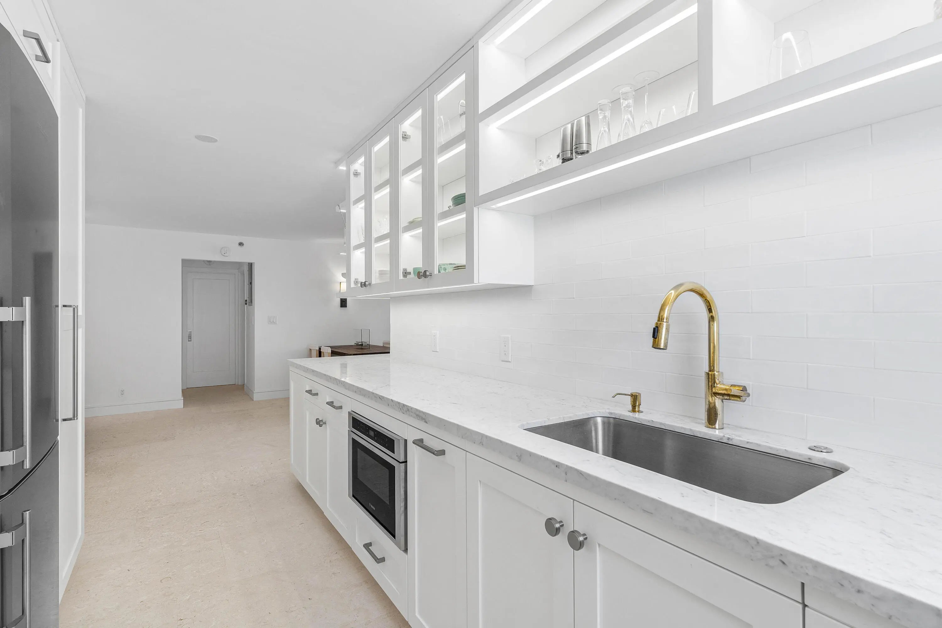 A rare opportunity to own this exceptional direct ocean corner residence, showcasing breathtaking, unobstructed views that stretch endlessly along the coastline. Located in the highly desirable community of Highland Beach—known as "3 Miles of Paradise"—this beautifully renovated home is thoughtfully designed with a refined coastal aesthetic & features top-tier finishes throughout, including Waterworks bathroom & kitchen fixtures, a Bosch range, Liebherr refrigerator, Thermador dishwasher, and a Miele washer/dryer. Enjoy effortless indoor-outdoor living with two private oceanfront balconies—perfect for taking in the sea breeze and panoramic views. The residence offers two spacious ensuite bedrooms, elegant natural coral stone flooring throughout, and custom cabinetry & closets providing abundant storage. New furniture and complete contents are included in the purchase, offering a true turnkey opportunity. Additional highlights include garage parking, fitness center, two resort-style pools, storage, a car wash area, billiard and ping pong tables, an active social calendar and generous guest parking.