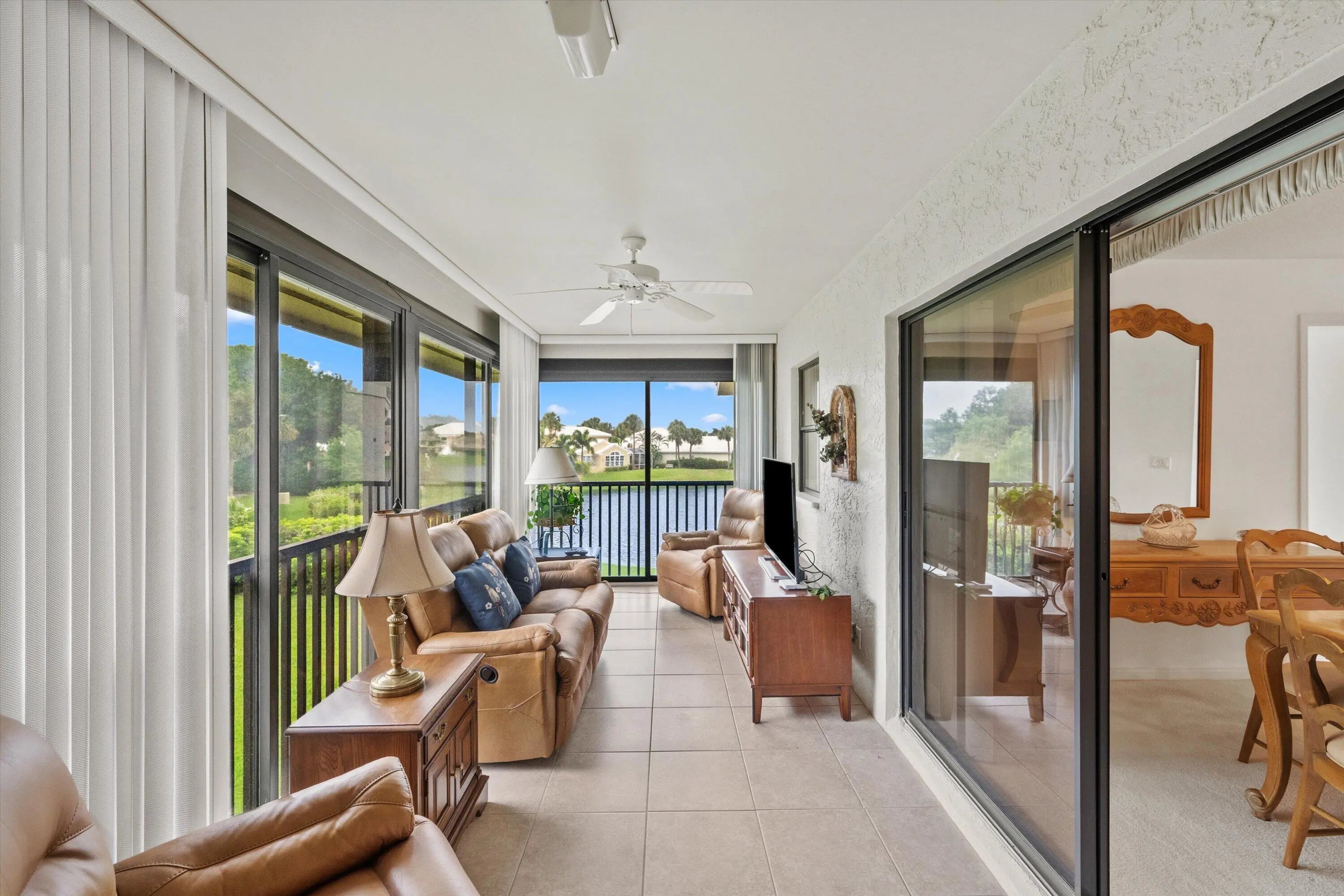 This beautifully maintained second-floor lakefront condo is located in the highly desirable gated community of Jonathan's Landing - West Bay. Spanning 1,839 square feet, this spacious and impeccably clean residence offers both comfort and versatility. The home features two generously sized bedrooms plus a flexible den that can easily be converted into a third bedroom, along with two full bathrooms. An elevator provides convenient access to the unit. Designed with an open-concept layout, the living area boasts soaring cathedral ceilings that create a bright and airy atmosphere. Sliding glass doors lead to a screened-in porch—the perfect place to relax and enjoy tranquil water views. Additional highlights include a golf cart garage and an attached one-car garage with an- SEE MORE epoxy-finished floor, offering both functionality and ease. Experience resort-style living in West Bay at Jonathan's Landing, one of Jupiter's most sought-after communities—where comfort, convenience, and captivating views come together beautifully.