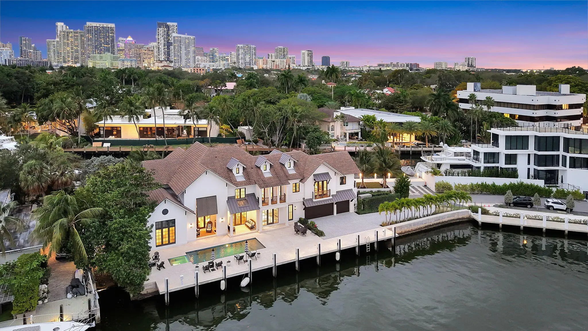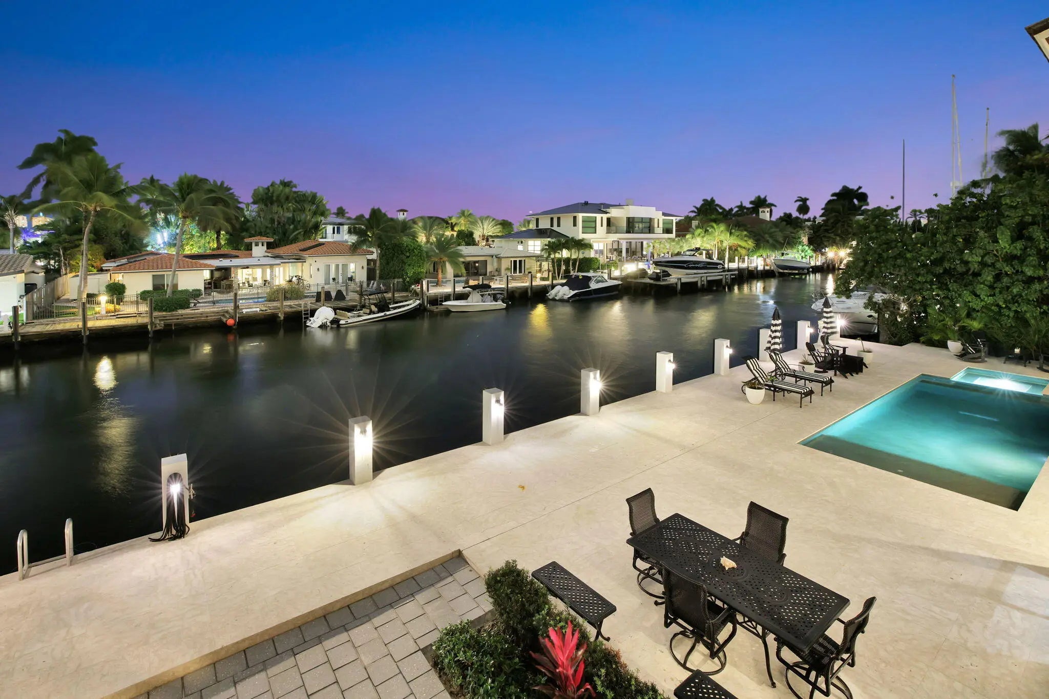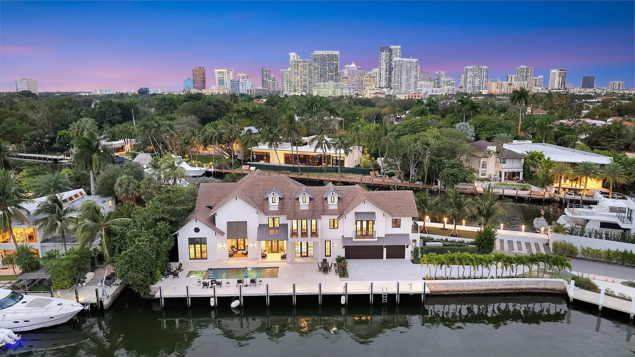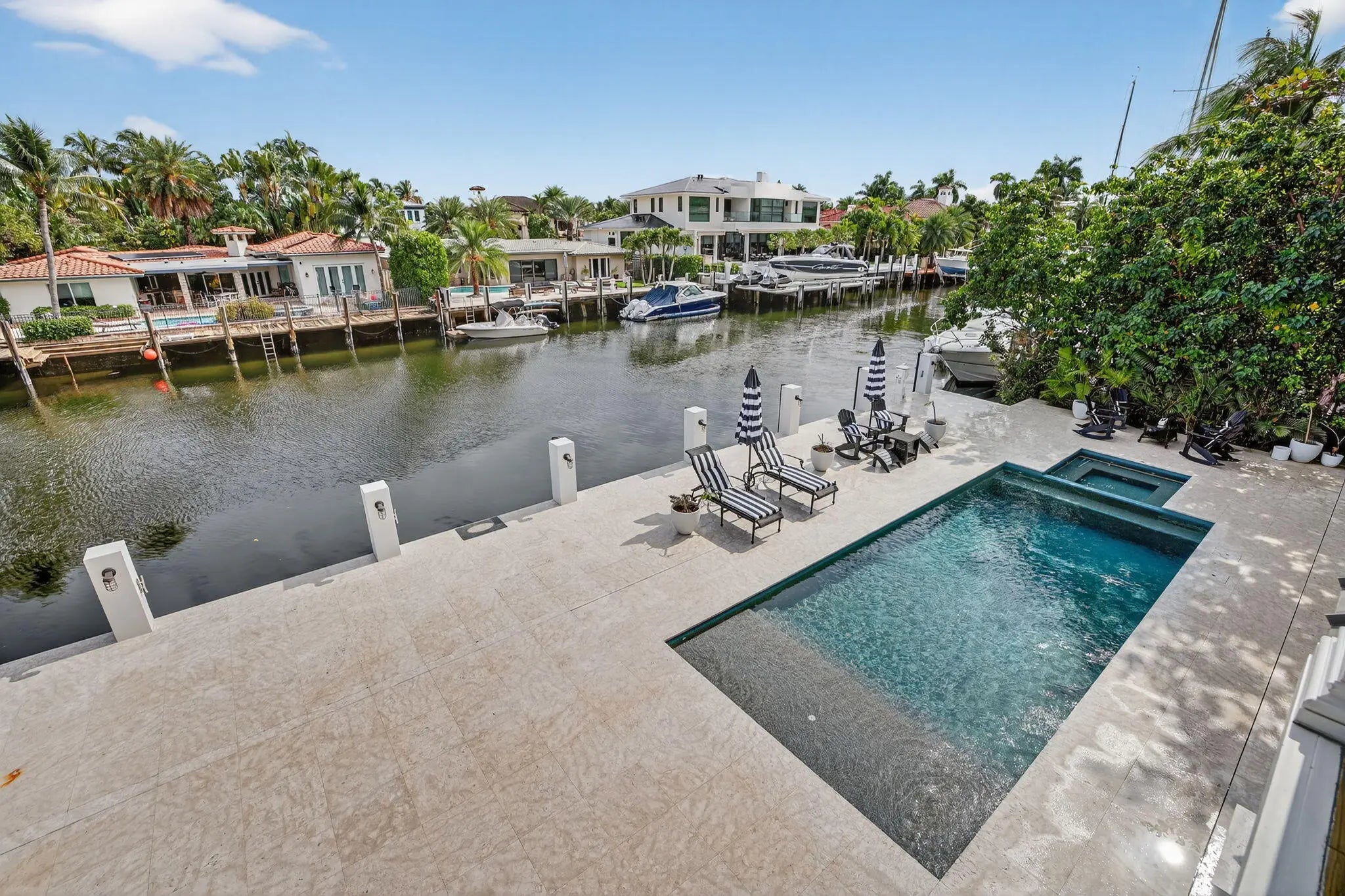Available for Lease! Create your own private luxury marina environment just off Las Olas! 376 ft of deep-water dockage on two wide canals allows comparable dockage to point properties! Main residence 168ft & separate west dock 208ft & 3-phase power. Enjoy supreme privacy & great Las Olas proximity, surrounding multi million-dollar residences. British West Indies-inspired architecture, high-quality custom build & detailing throughout, welcoming great room with vaulted ceiling, chef's kitchen, two primary suites (main suite 1st level), guest suite, laundry & guest bath. The 2nd level comprises an additional primary suite (or Captain's Quarters), an open office, and two additional large bedroom suites. Entire 3rd-level, large, private bedroom suite. Also for Sale