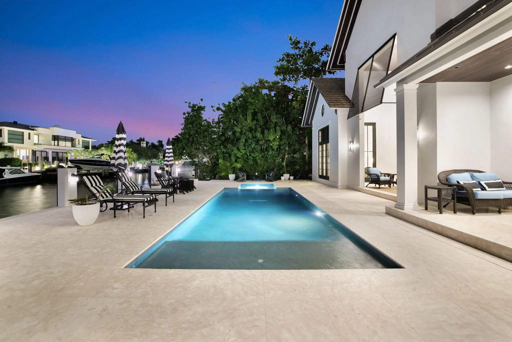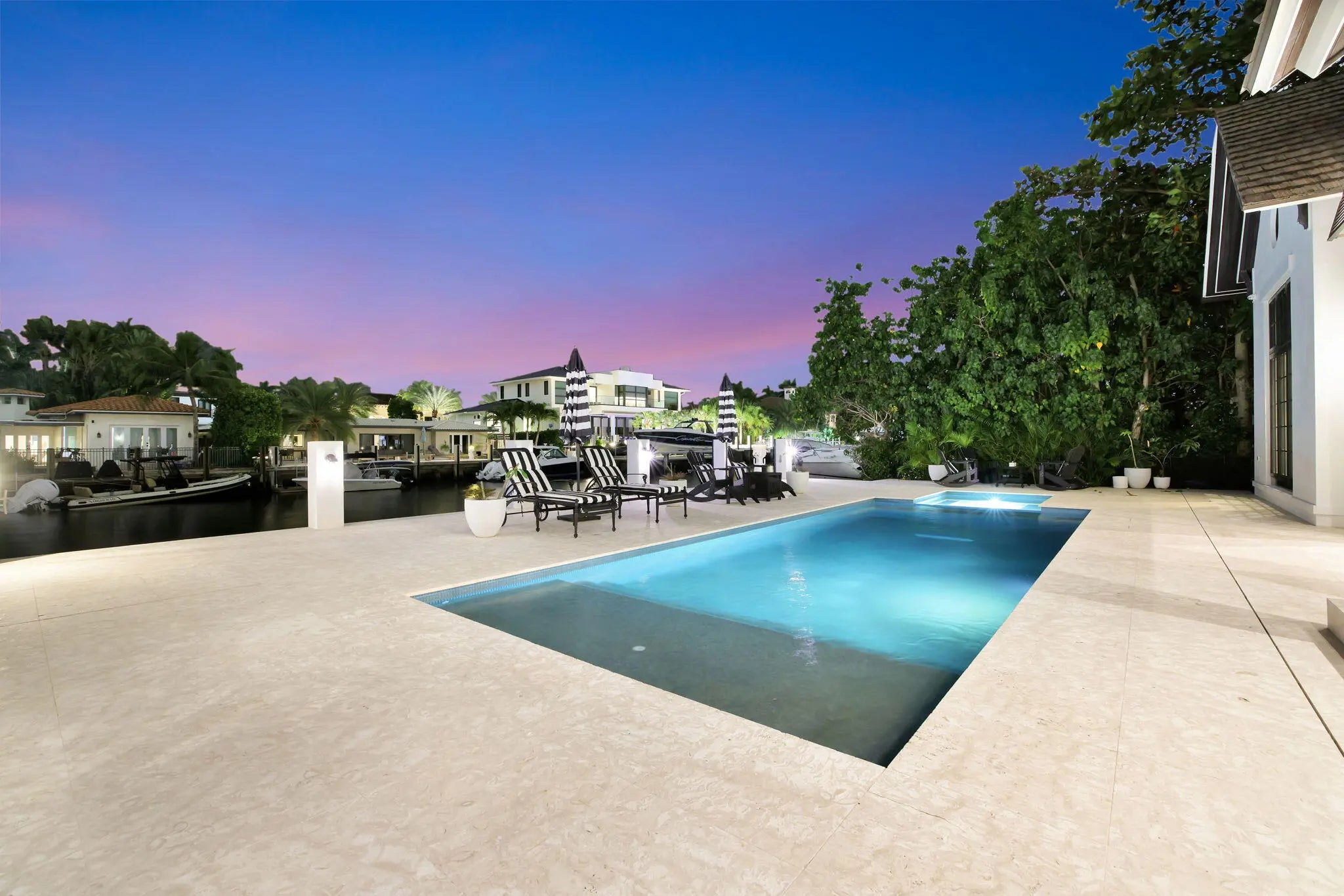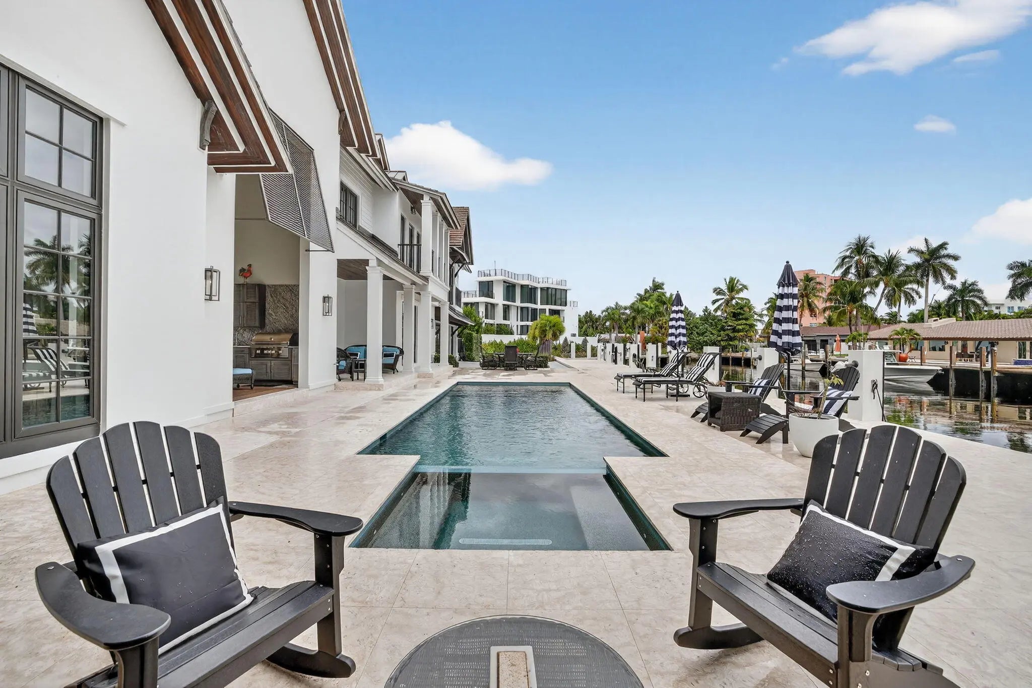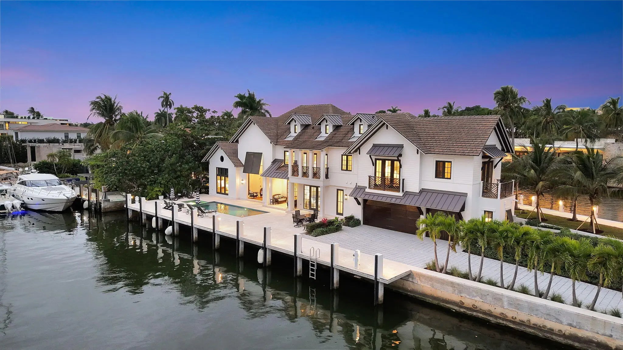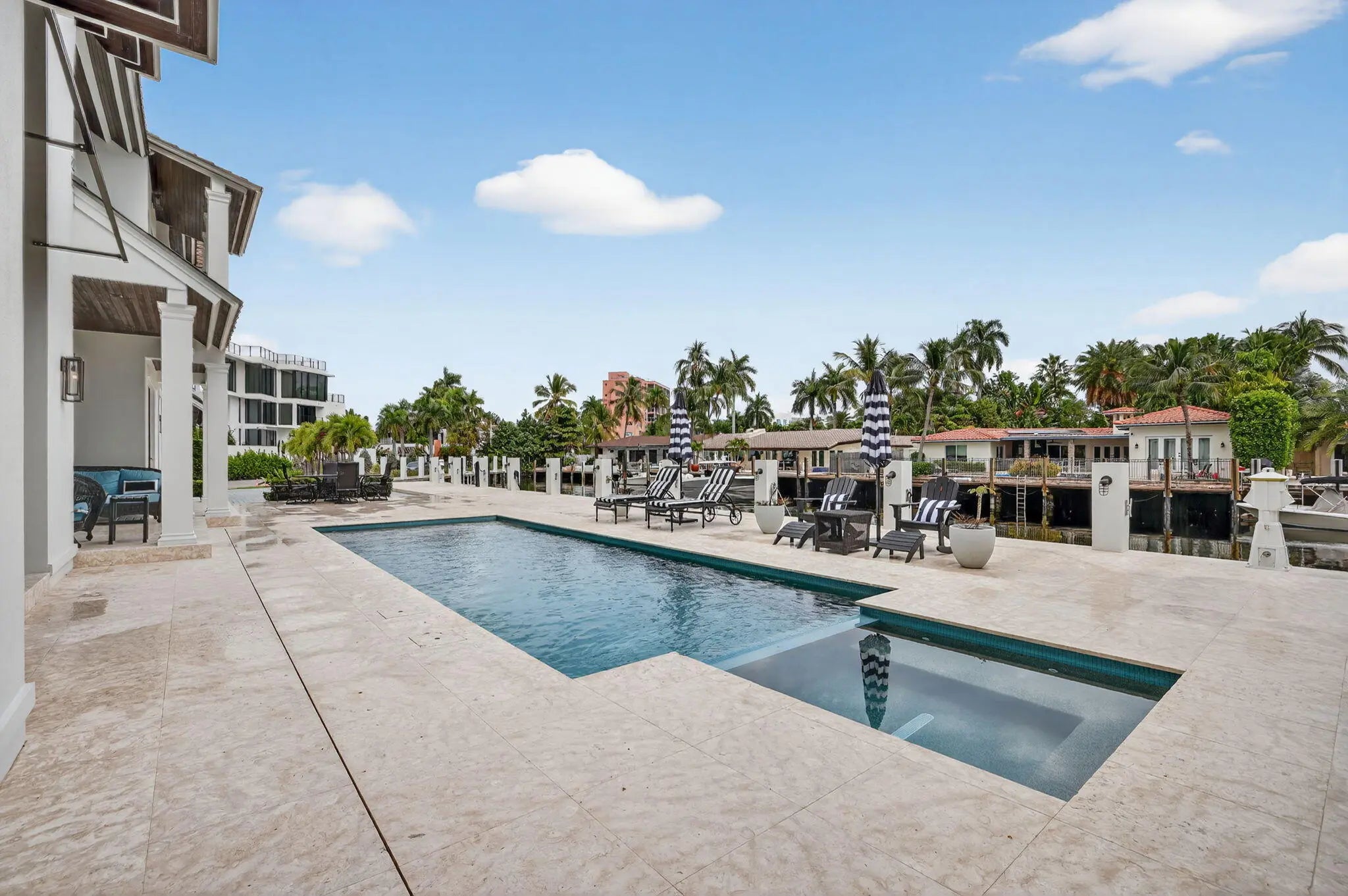 Available for Lease! Create your own private luxury marina environment just off Las Olas! 376 ft of deep-water dockage on two wide canals allows comparable dockage to point properties! Main residence 168ft & separate west dock 208ft & 3-phase power. Enjoy supreme privacy & great Las Olas proximity, surrounding multi million-dollar residences. British West Indies-inspired architecture, high-quality custom build & detailing throughout, welcoming great room with vaulted ceiling, chef's kitchen, two primary suites (main suite 1st level), guest suite, laundry & guest bath. The 2nd level comprises an additional primary suite (or Captain's Quarters), an open office, and two additional large bedroom suites. Entire 3rd-level, large, private bedroom suite. Also for Sale