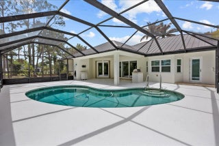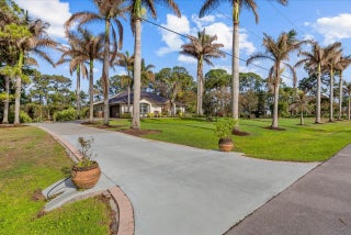 Nestled on a private 2.76-acre lot along an interior waterway with preserve views, this turnkey 4BR/2.5BA CBS estate is located within the highly sought-after gated Stuart West equestrian community. Positioned at the end of a cul-de-sac for added tranquility, the residence features soaring vaulted ceilings and a thoughtfully designed, open layout. The pool home is further enhanced by a convenient cabana bath, ideal for indoor-outdoor living. Extensively renovated, the home showcases new impact windows and doors, wood plank-style tile flooring, updated pool equipment, exterior trim lighting, a new water softener, and a whole-house electric generator for added comfort and peace of mind. Additional improvements include a 2018 roof and kitchen appliances just 3 years old. Residents enjoy the option of non-mandatory membership to The Cape Club, a premier golfer's retreat offering exceptional golf and dining. Ideally located near I-95, with convenient access for north & south bound travel.