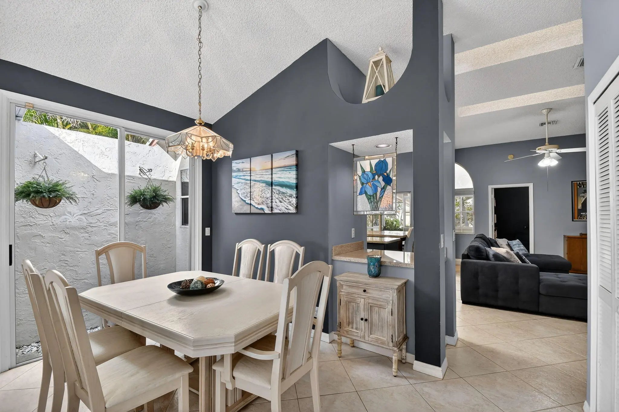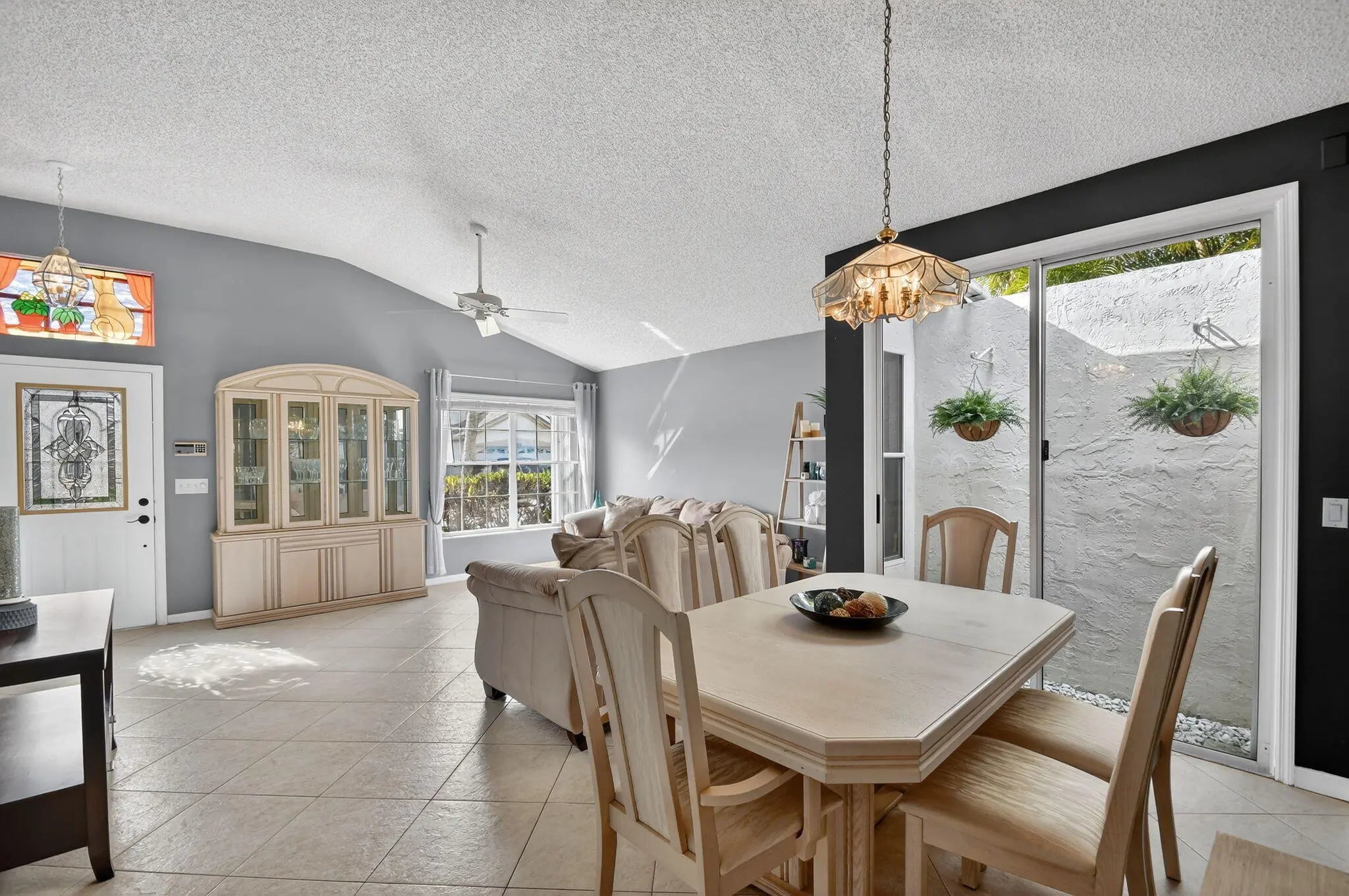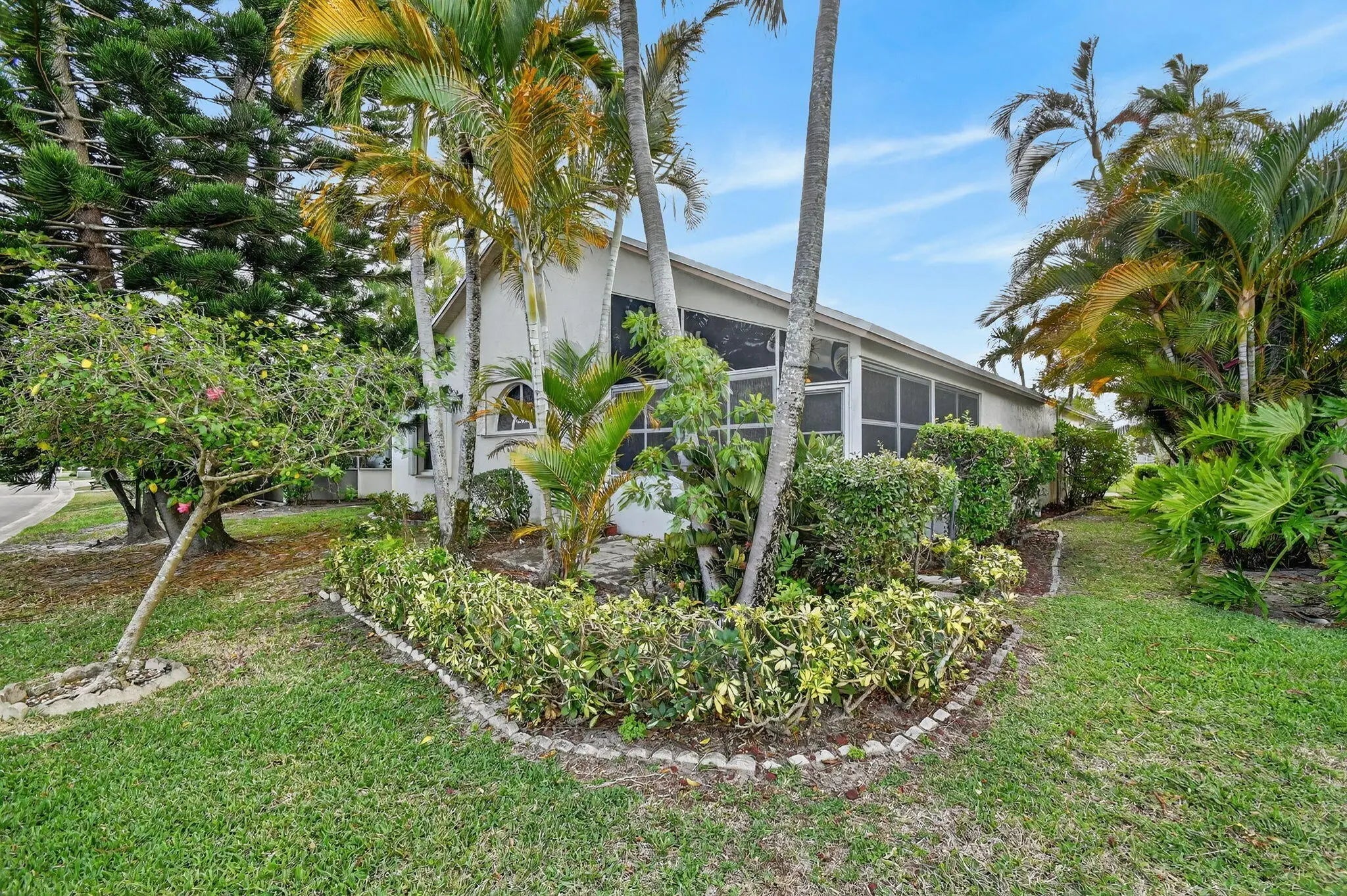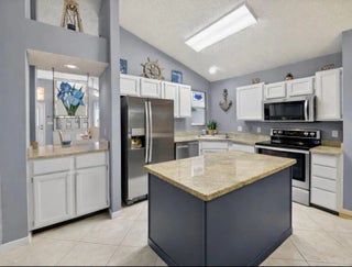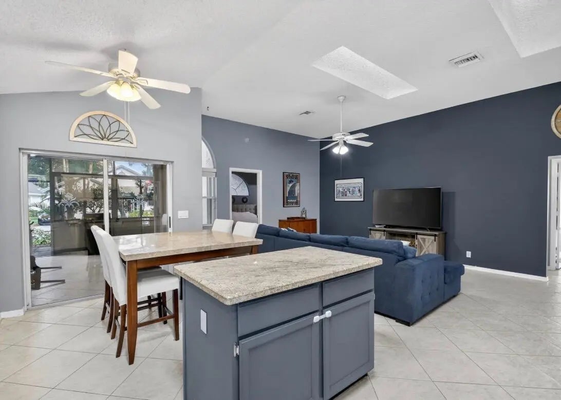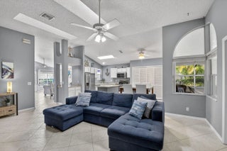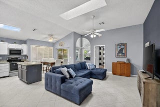 BRAND NEW ROOF with a transferable warranty! Welcome to this beautifully maintained, move-in ready single-story home in the highly sought-after gated River Bridge community in Greenacres. This 3-bedroom, 2-bathroom residence offers the perfect blend of comfort and style, featuring a pristine white stucco exterior with subtle accent tones that create great curb appeal. Surrounded by lush tropical landscaping, the home also includes a spacious 2-car garage and a full set of accordion hurricane shutters on all windows for added peace of mind. Step inside to a bright and inviting entryway highlighted by soaring vaulted ceilings, neutral tile flooring, and a decorative glass inset front door with a stunning stained-glass transom. The expansive open-concept family room and dining areas are designed for both everyday living and entertaining, showcasing a modern gray color palette, oversized tile flooring, and abundant natural light pouring in through large windows and sliding glass doors. The formal dining area seamlessly connects to a private courtyard garden, creating a true indoor-outdoor living experience. At the heart of the home is a spacious living room featuring a dramatic accent wall, ample seating, and two skylights that fill the space with soft natural light. This area flows effortlessly into the updated kitchen, complete with crisp white cabinetry, granite countertops, a large center island, stainless steel appliances, a double pantry, and recessed lighting. A cozy breakfast nook offers the perfect spot for casual dining while staying connected to the main living areas. The primary suite serves as a private retreat, offering vaulted ceilings, serene patio garden views, and generous space for both relaxation and functionality. The en-suite bathroom features a dual-sink vanity, expansive mirrors, a dedicated vanity area, and a walk-in shower with clean, modern finishes. Two additional bedrooms provide flexibility for family, guests, or a home office, all maintaining the home's cohesive design with ample natural light and neutral tones. A second full bathroom, along with an updated AC unit (2022), washer and dryer (2022), water heater (2024), and extra storage and workspace, enhances the home's convenience. Enjoy Florida living year-round from your private screened-in patio, perfect for relaxing or entertaining while overlooking a beautifully landscaped backyard with mature tropical foliage and a privacy wall for added seclusion. Welcome to River Bridge, one of Greenacres' most desirable gated communities, ideally located just off Forest Hill Boulevard west of Jog Road. This beautifully maintained, master-planned neighborhood features 24 acres of scenic waterways, lush landscaping, and a peaceful, resort-style setting with full-time security and three gated entrances. Residents enjoy a fully staffed clubhouse, fitness center, social director, and an impressive lineup of amenities such as heated pools, hot tubs and a kiddie pool, tennis and pickleball courts, bocce, shuffleboard, billiards, ping pong, full-court basketball, and a performance center. The community also offers a vibrant social lifestyle with activities like seasonal family events, bingo, bridge club, tennis programs, chair exercise, and mat Pilates—creating plenty of opportunities to stay active and connect with neighbors. HOA includes cable, high-speed internet, lawn and landscaping services, trash and recycling valet with bulk pickup, 24-hour manned gate security, and access to all community amenities—offering a truly stress-free, low-maintenance lifestyle. Conveniently located near Wellington Green Mall, Wellington Hospital, Downtown West Palm Beach, and Okeeheelee Park—featuring dog parks, a 27-hole golf course with driving range, nature trails, biking paths, athletic fields, boating and water sports. Nearby shopping includes Publix, Target, and Walmart Supercenter. The River Bridge community also features the walkable River Bridge Center, with popular dining options like Chick-fil-A, Chipotle, and Duffy's Sports Grill. With easy access to major highways, Florida's Turnpike, and Palm Beach International Airport—not to mention South Florida's beautiful beaches just a short drive away—River Bridge offers the perfect balance of lifestyle, location, and convenience.