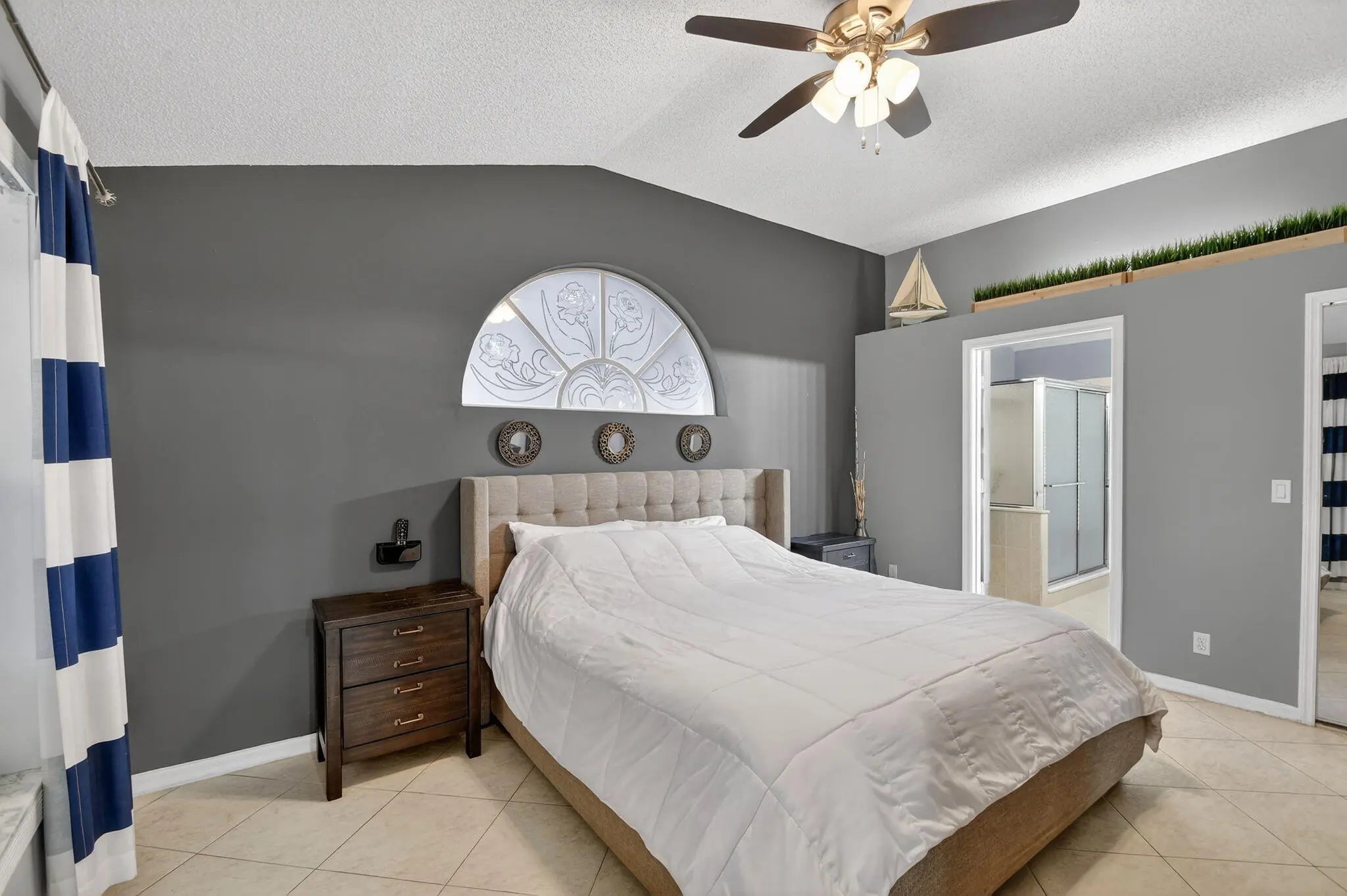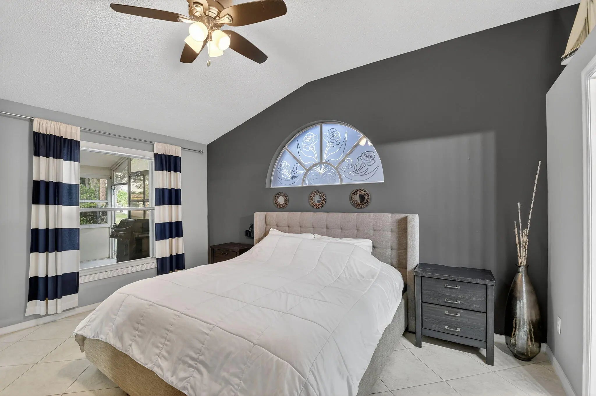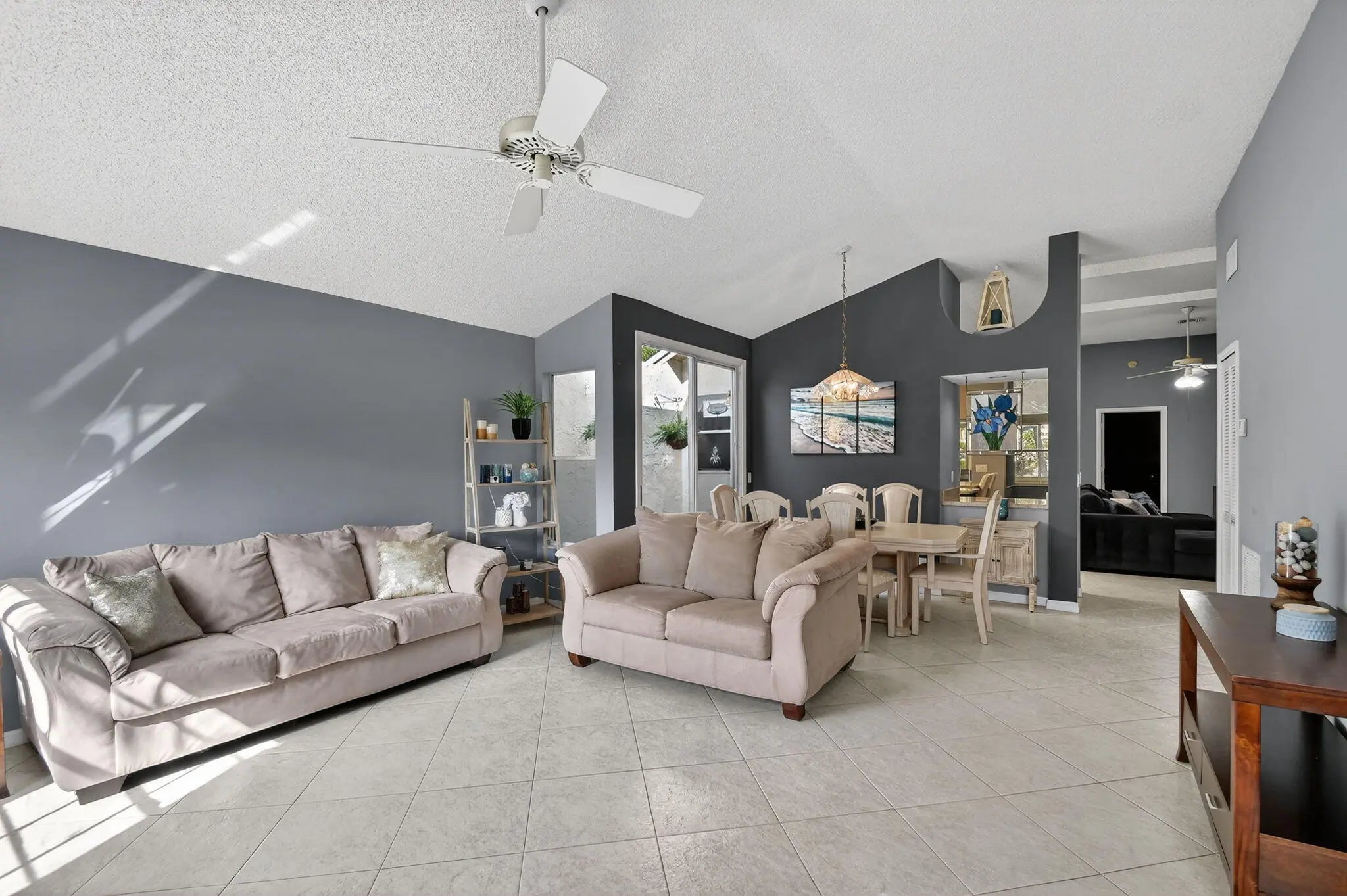 BRAND NEW ROOF with a transferable warranty! Welcome to this beautifully maintained, move-in ready single-story home in the highly sought-after gated River Bridge community in Greenacres. This 3-bedroom, 2-bathroom residence offers the perfect blend of comfort and style, featuring a pristine white stucco exterior with subtle accent tones that create great curb appeal. Surrounded by lush tropical landscaping, the home also includes a spacious 2-car garage and a full set of accordion hurricane shutters on all windows for added peace of mind. Step inside to a bright and inviting entryway highlighted by soaring vaulted ceilings, neutral tile flooring, and a decorative glass inset front door with a stunning stained-glass transom. The expansive open-concept family room and dining areas are designed for both everyday living and entertaining, showcasing a modern gray color palette, oversized tile flooring, and abundant natural light pouring in through large windows and sliding glass doors. The formal dining area seamlessly connects to a private courtyard garden, creating a true indoor-outdoor living experience. At the heart of the home is a spacious living room featuring a dramatic accent wall, ample seating, and two skylights that fill the space with soft natural light. This area flows effortlessly into the updated kitchen, complete with crisp white cabinetry, granite countertops, a large center island, stainless steel appliances, a double pantry, and recessed lighting. A cozy breakfast nook offers the perfect spot for casual dining while staying connected to the main living areas. The primary suite serves as a private retreat, offering vaulted ceilings, serene patio garden views, and generous space for both relaxation and functionality. The en-suite bathroom features a dual-sink vanity, expansive mirrors, a dedicated vanity area, and a walk-in shower with clean, modern finishes. Two additional bedrooms provide flexibility for family, guests, or a home office, all maintaining the home's cohesive design with ample natural light and neutral tones. A second full bathroom, along with an updated AC unit (2022), washer and dryer (2022), water heater (2024), and extra storage and workspace, enhances the home's convenience. Enjoy Florida living year-round from your private screened-in patio, perfect for relaxing or entertaining while overlooking a beautifully landscaped backyard with mature tropical foliage and a privacy wall for added seclusion. Welcome to River Bridge, one of Greenacres' most desirable gated communities, ideally located just off Forest Hill Boulevard west of Jog Road. This beautifully maintained, master-planned neighborhood features 24 acres of scenic waterways, lush landscaping, and a peaceful, resort-style setting with full-time security and three gated entrances. Residents enjoy a fully staffed clubhouse, fitness center, social director, and an impressive lineup of amenities such as heated pools, hot tubs and a kiddie pool, tennis and pickleball courts, bocce, shuffleboard, billiards, ping pong, full-court basketball, and a performance center. The community also offers a vibrant social lifestyle with activities like seasonal family events, bingo, bridge club, tennis programs, chair exercise, and mat Pilates—creating plenty of opportunities to stay active and connect with neighbors. HOA includes cable, high-speed internet, lawn and landscaping services, trash and recycling valet with bulk pickup, 24-hour manned gate security, and access to all community amenities—offering a truly stress-free, low-maintenance lifestyle. Conveniently located near Wellington Green Mall, Wellington Hospital, Downtown West Palm Beach, and Okeeheelee Park—featuring dog parks, a 27-hole golf course with driving range, nature trails, biking paths, athletic fields, boating and water sports. Nearby shopping includes Publix, Target, and Walmart Supercenter. The River Bridge community also features the walkable River Bridge Center, with popular dining options like Chick-fil-A, Chipotle, and Duffy's Sports Grill. With easy access to major highways, Florida's Turnpike, and Palm Beach International Airport—not to mention South Florida's beautiful beaches just a short drive away—River Bridge offers the perfect balance of lifestyle, location, and convenience.