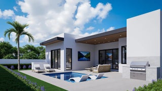 A refined take on contemporary design with fresh compositions that define this new construction home by MNB Construction. The commanding curb appeal is enhanced by clean architectural lines & sophisticated aesthetics. The open concept floor plan is enhanced by 10 ft ceilings & walls of glass that flood multiple living areas with natural light. The chef's kitchen offers high end appliances for those who cook & entertain. The primary suite features 2 spacious walk-in closets & luxurious bathrm. Glass doors open to the home office / den or exercise rm. The lrg laundry rm with a sink & ample counter space & cabinetry completes the interior. The covered terrace overlooks the pool with a sunshelf, summer kitchen & tropical landscaping. A cabana bathrm services the pool area Sq ft from architect