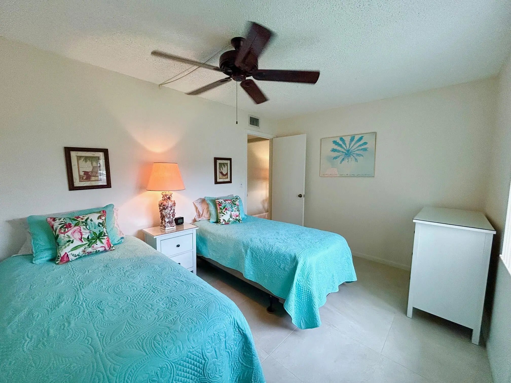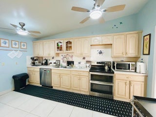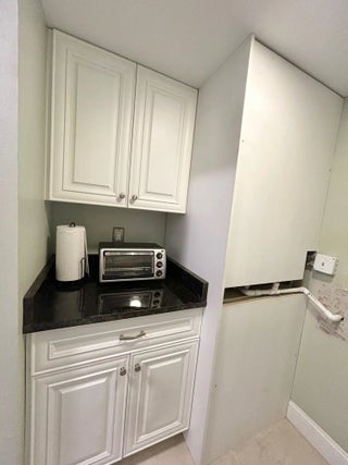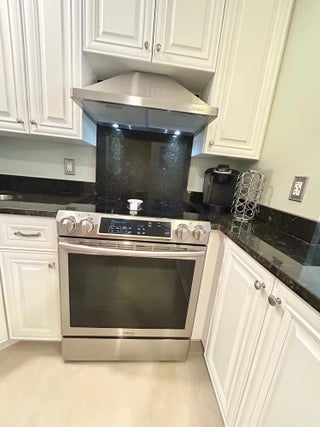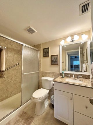 Beautifully renovated 1st floor corner w largest sq ft. No detail spared. Solid wood 42" white shaker cabinets w granite countertops. Upgraded stainless steel appliances. Refrigerator is french door w flex zone controlled drawer, ice maker/filtered water. Glass flat top range w steam clean option & front controls. Elegantly designed w granite backsplash & stylish chimney air vent. Custom cabinetry in the pantry giving more storage & countertop space. Newer A/C 2022 with 10 year warranty neatly enclosed w panel. New tile flooring throughout. Updated bathroom w tiled walk in shower featuring grab bars & heigth adjusting shower wand. Chair heigth toilet & new vanity. Updated powder room for your guests. Energy efficient Hurricane/Impact windows throughout. Both bedrooms have walk in closets.