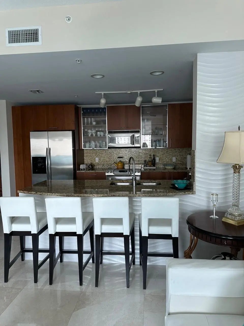 This condo in mint condition has 2 split suites plus a powder room, marble floors all over, is partially furnished, and elegantly decorated. Situated in an exclusive 5-star Luxury Building, offering direct beach access and Intracoastal boating with a private boat dock available. Amenities include fitness, spa, and 24/7 valet.
