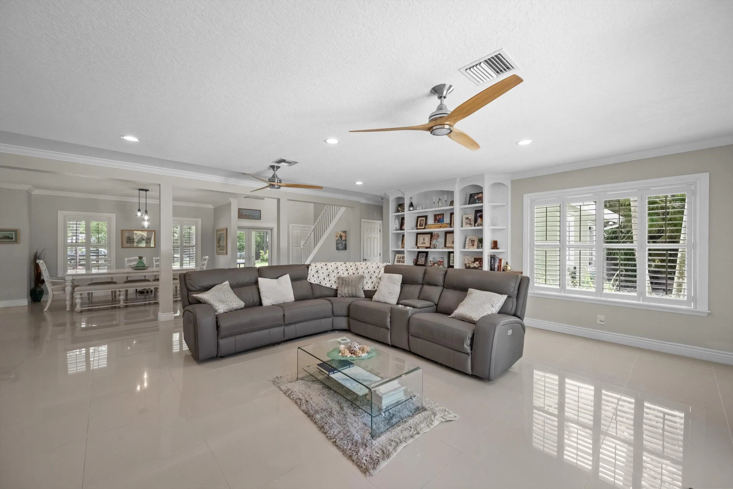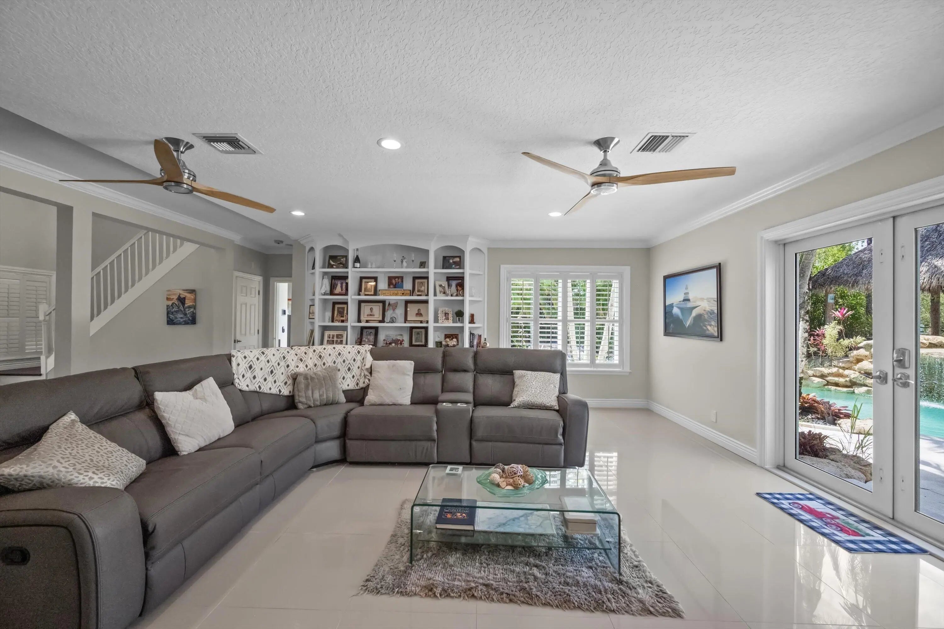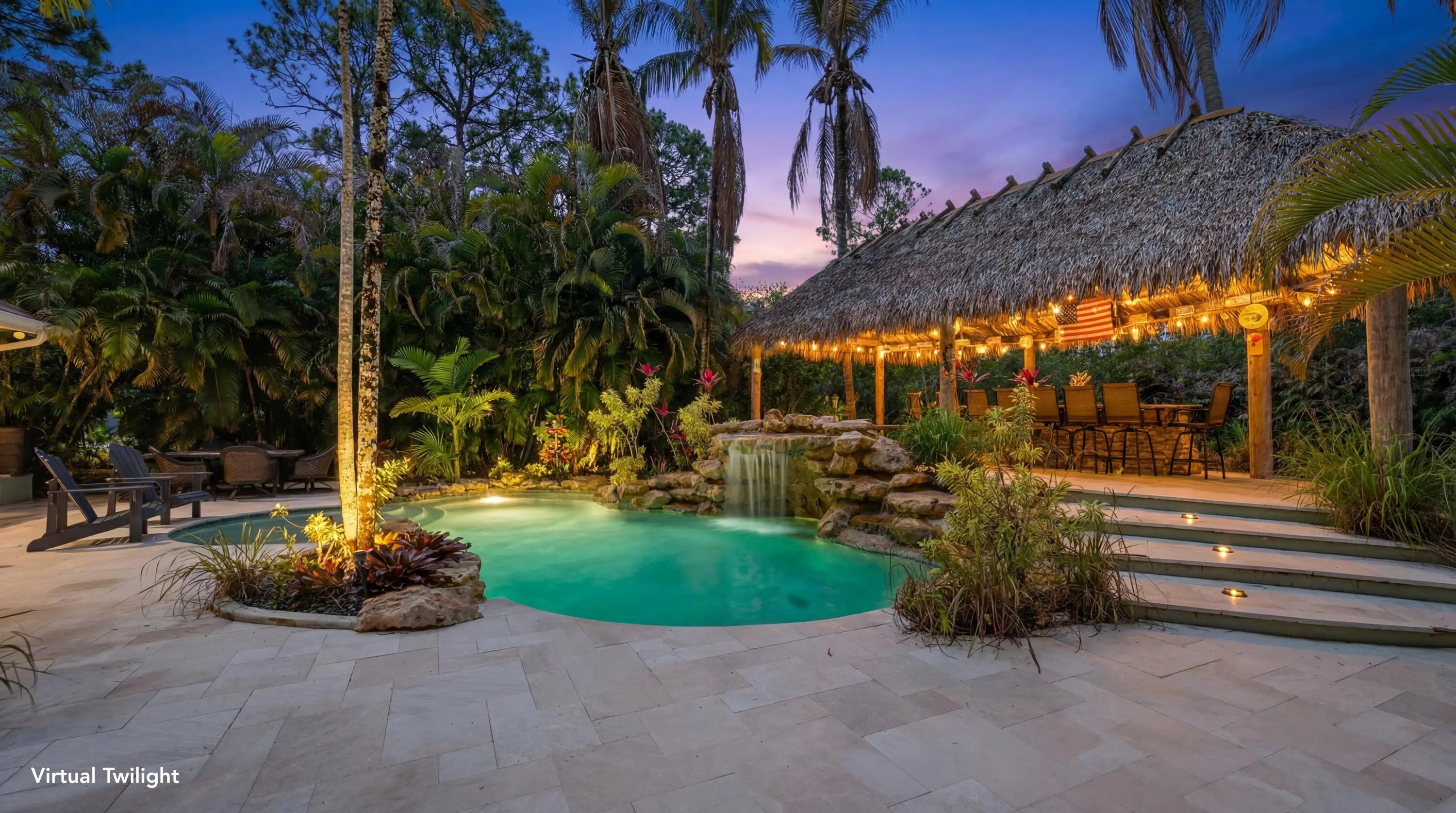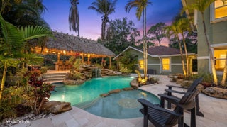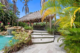 Discover your peaceful retreat in Jupiter Farms—a stunningly remodeled two-story home on 1.25 fenced acres. Featuring impact windows and doors on the first floor and detached garage for hurricane protection. Inside offers bright open-concept living ideal for families. Outside enjoy a resort-style pool with tumbled marble deck and lush landscaping, plus a tiki outdoor kitchen with granite bar, grill, pizza oven, sink, fridge and seating for 12. Includes screened front patio, fire pit, air-conditioned detached garage with livable potential and 30 & 50-amp hookup pad for boat or RV. Minutes from beaches, boating, shopping, fine dining, and great schools. Don't miss this Jupiter Farms gem.