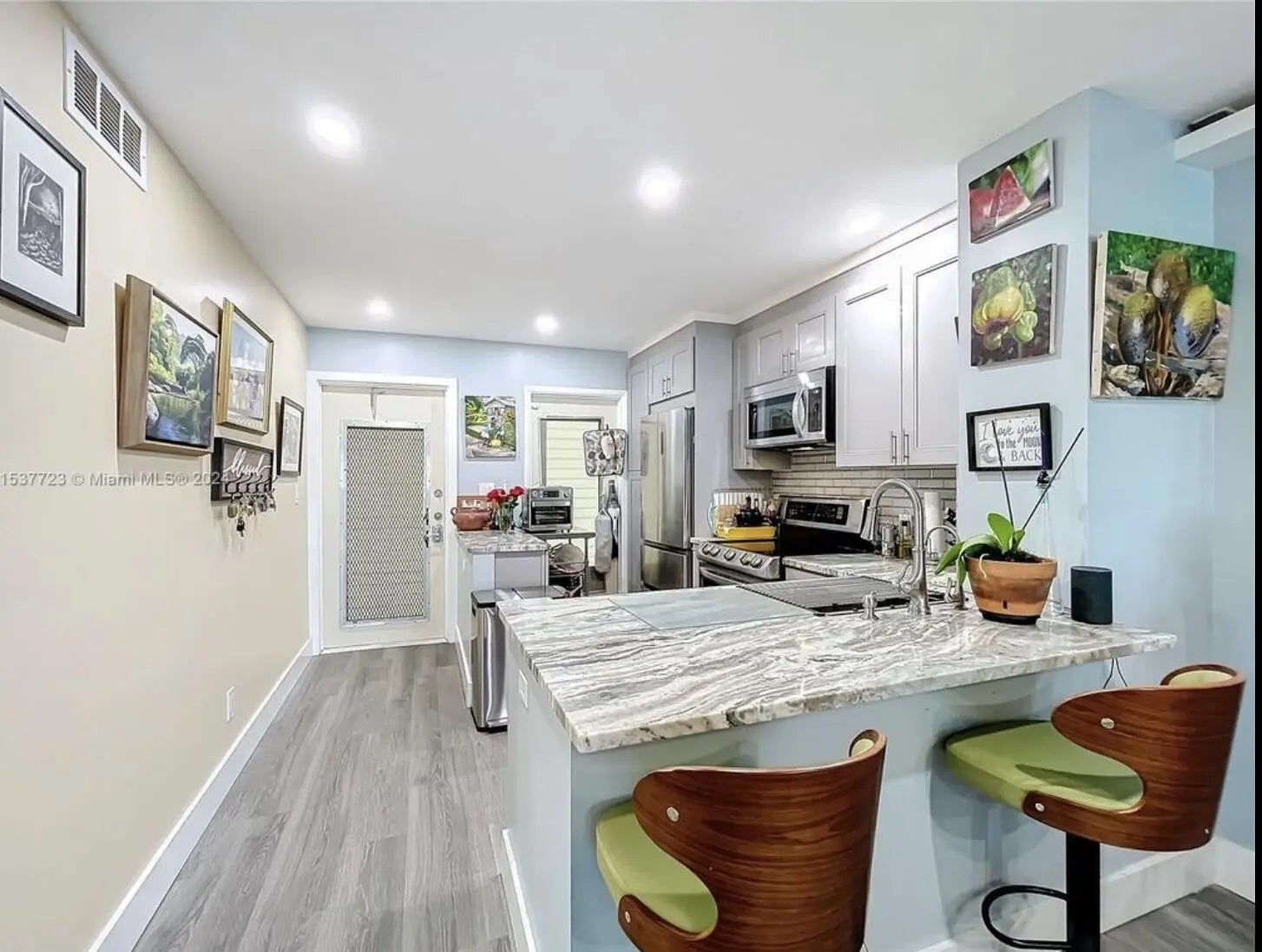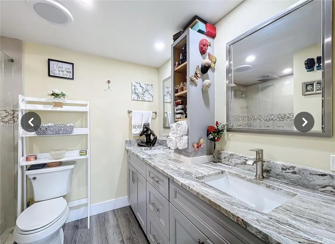 Luxuriate in your private island paradise. This 2nd-floor, fully renovated 2BR/2BA condo offers stunning sunset water views—even from your bed. The redesigned layout features an open-concept kitchen with quartz countertops and new appliances, a walk-in closet, dual sinks, and a spacious shower. Additional upgrades include a tub in the second bedroom, built-in bar/coffee station, new interior doors, lighting, plumbing, electric, and water heater. Located in the tucked-away Paradise Isle community, less than a mile to the beach, shops, restaurants, and Gulfstream Park. Extra storage included.