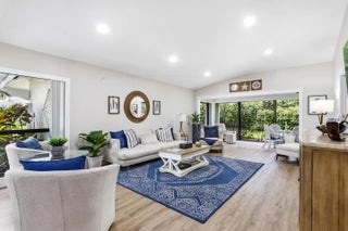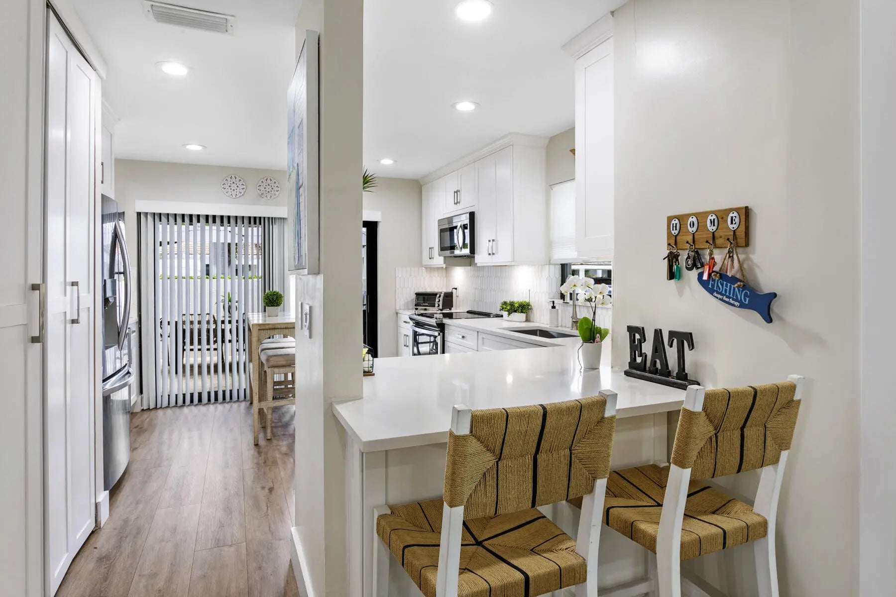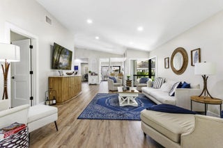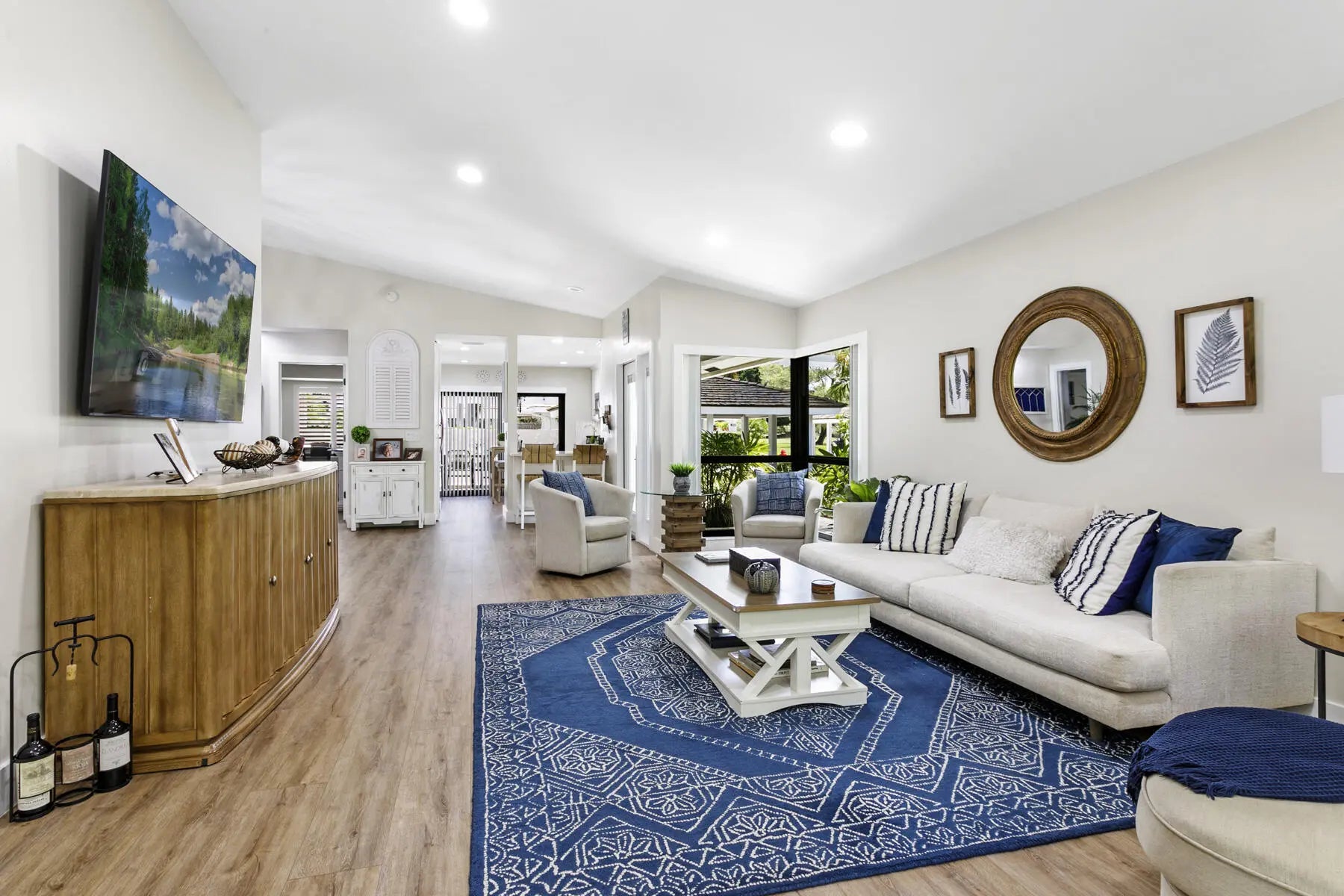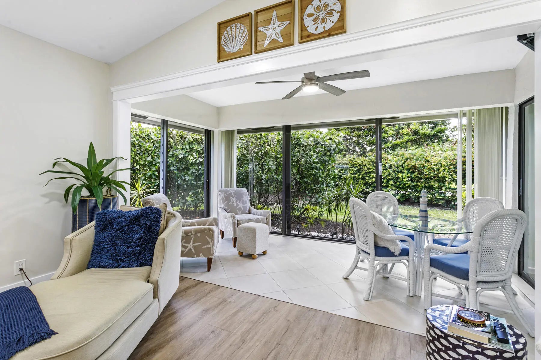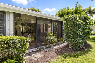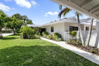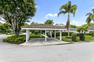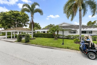 Beautifully maintained 2 bed, 2 bath corner villa in the gated community of Jonathan's Landing. Renovated kitchen with bar & updated baths, modern lighting & impact glass (except the back porch sliders w/hurricane shutters). Spacious split-bedroom floor plan offers privacy & comfort. Large family room & dining area perfect for entertaining. Lush, mature landscaping surrounds this oversized corner villa. Enjoy charming front patio, ideal for grilling & entertaining, complete with exterior lighting to enjoy the evening. Plus 2 full-size carport spaces & golf cart garage. 24 hour security patrol for all residents & their comfort.