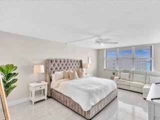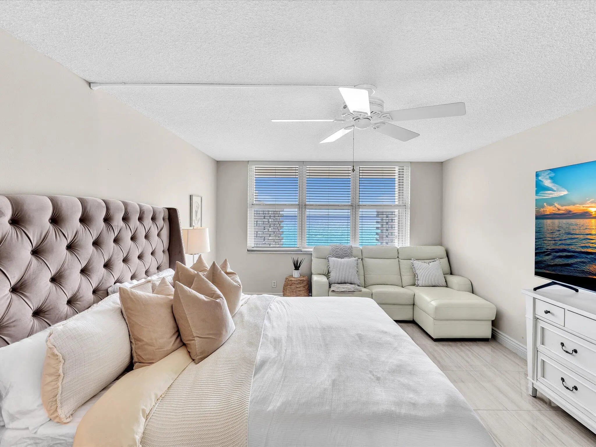 Step inside to this FULLY FURNISHED condo and you'll immediately be overtaken by the incredible and endless ocean views from every room. The views are much better in person than in the photos. Secondly, you'll notice how bright, clean, and welcoming this residence feels. The space has been thoughtfully updated with a modern traditional touch, featuring sleek ceramic tile flooring throughout and a neutral color palette that makes it easy to call HOME. The kitchen is both stylish and functional, with updated cabinetry, quality countertops, and plenty of storage—perfect whether you're cooking a full meal or just putting together something quick before heading out. It opens nicely into the living and dining areas, creating a comfortable flow that's great for everyday living. The living area is spacious and filled with natural light, with large sliding glass doors that lead out to the balcony. It's the kind of space where you can relax during the day and unwind at night while taking in the views. The bedrooms are fully equipped with quality furnishings and are generously sized with ample closet space, giving you both comfort and practicality. The bathrooms have also been refreshed with clean, modern finishes that keep everything feeling crisp and move-in ready. Living at Opal Towers West means embracing resort-style amenities just steps from your door: a heated pool overlooking the Intracoastal, deeded private beach access directly across the street for sun-soaked days on pristine sands of the Atlantic Ocean, a fitness center, billiards room, clubroom, barbecue areas, and security for added peace of mind. The building offers that perfect blend of low-maintenance convenience and coastal charm. This is a must see and the best deal on the Mile.