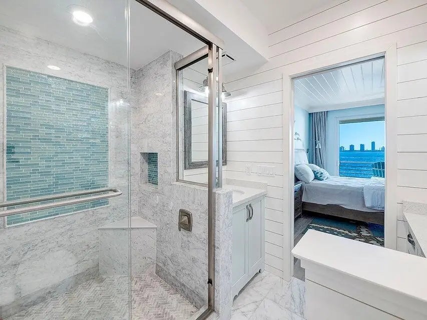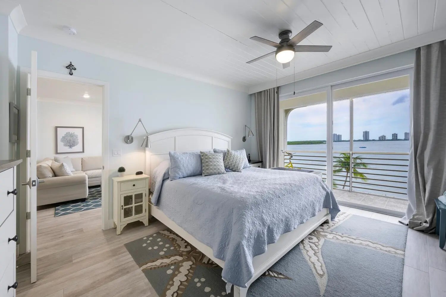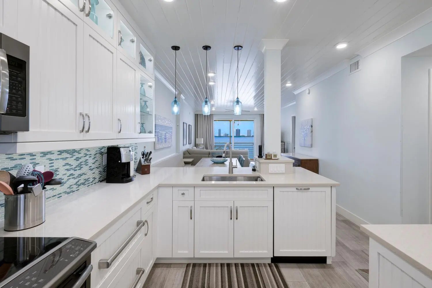 COMPLETELY REMODELED 2/2 UNIT. Highest Quality Finishes with attention to detail throughout. Top Floor, Middle unit offers Panoramic Water Views of the widest part of the Intracoastal. The most amazing views from the 25 foot balcony. Impact glass, porcelain wood like floors, custom kitchen open to living area with Sub Zero Fridge/Freezer drawers. Wood Cabinets, Pendent Lighting, Shiplap ceiling with added High Hats. Double vanities in Master Bath with large marble walk in shower. ToTo Toilets, custom Closets, 2nd Bath with Deco Shower inlays, Solid Interior Doors, Storage, Great Natural light, close to Golf/Tennis.