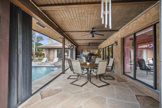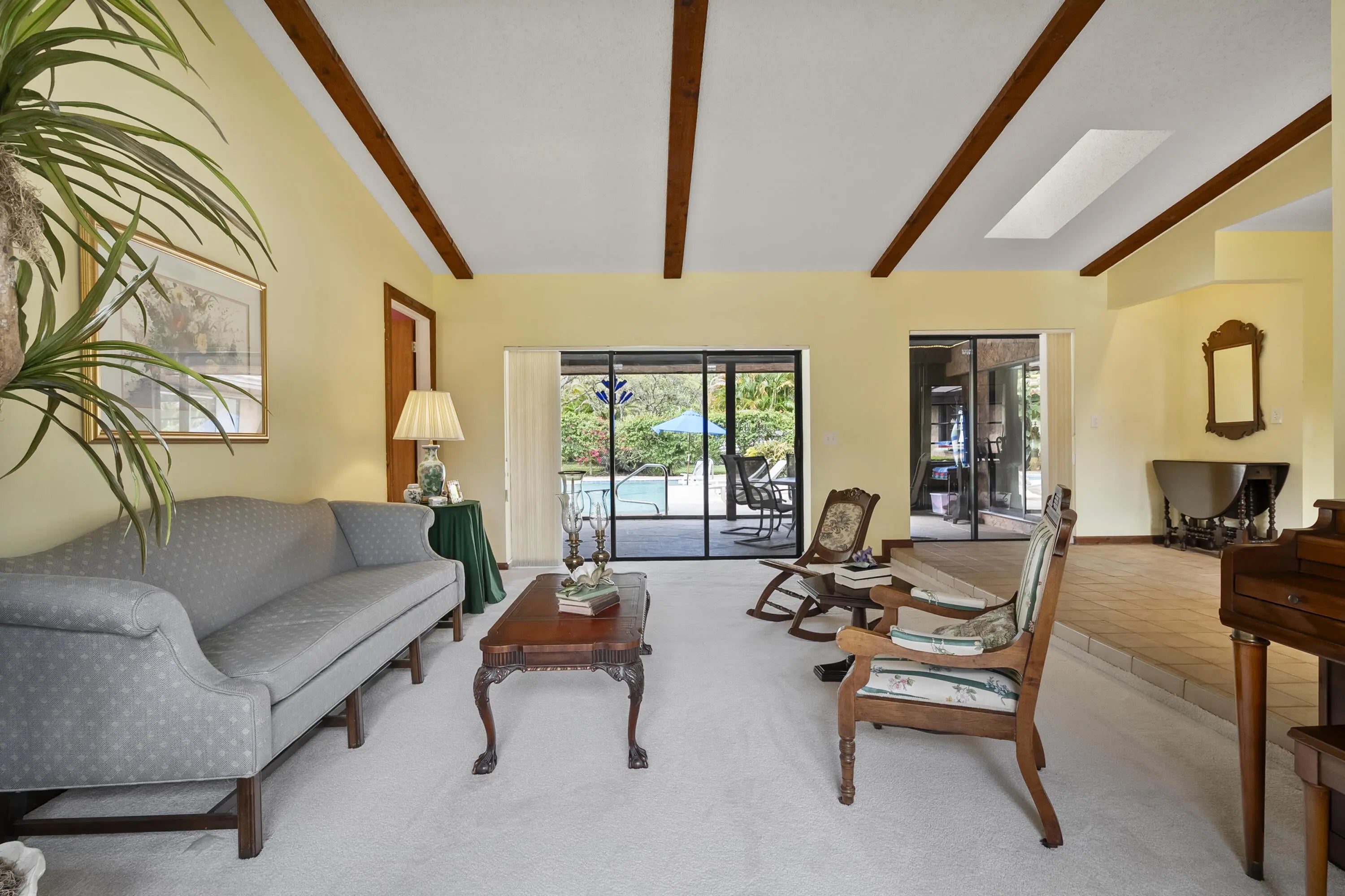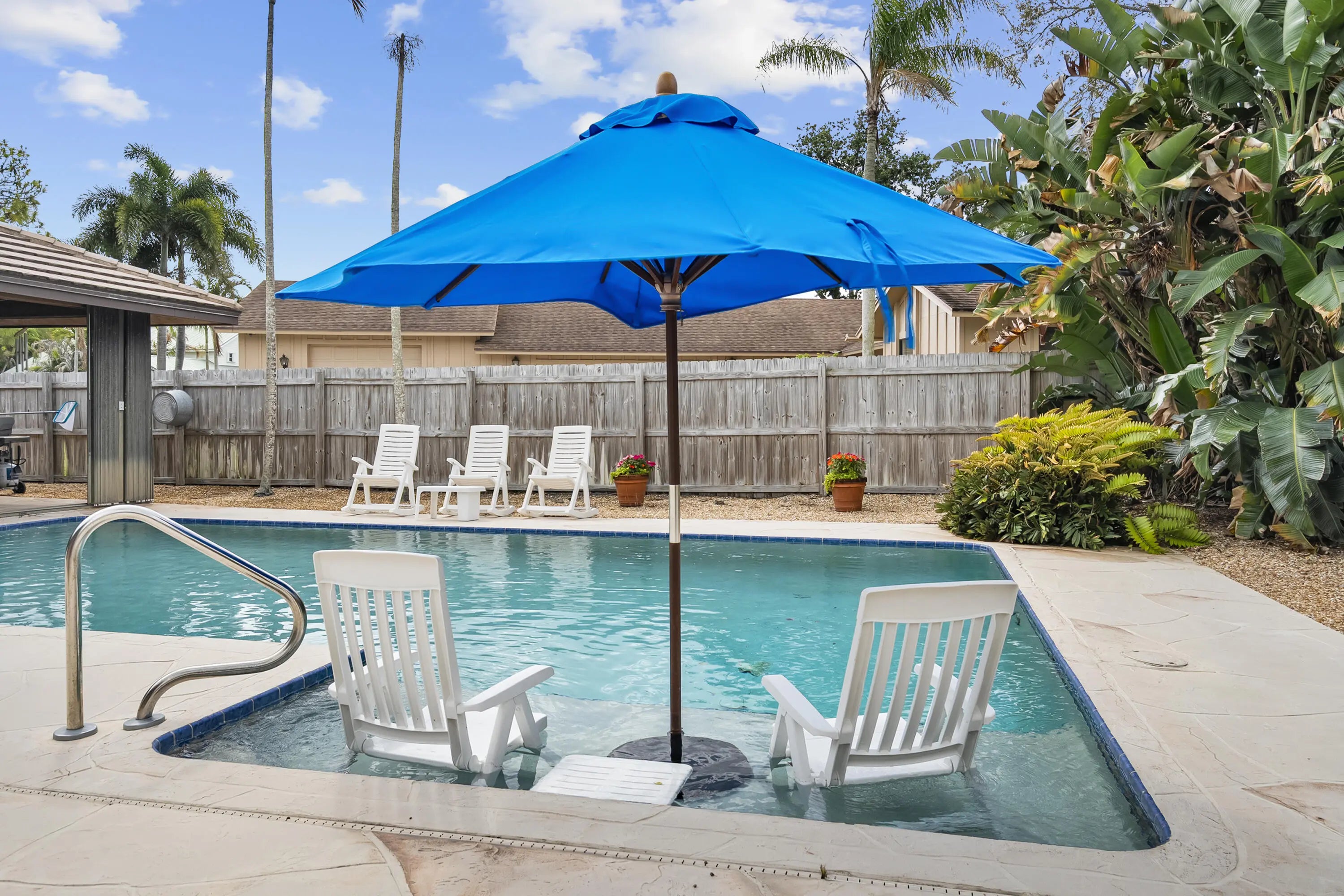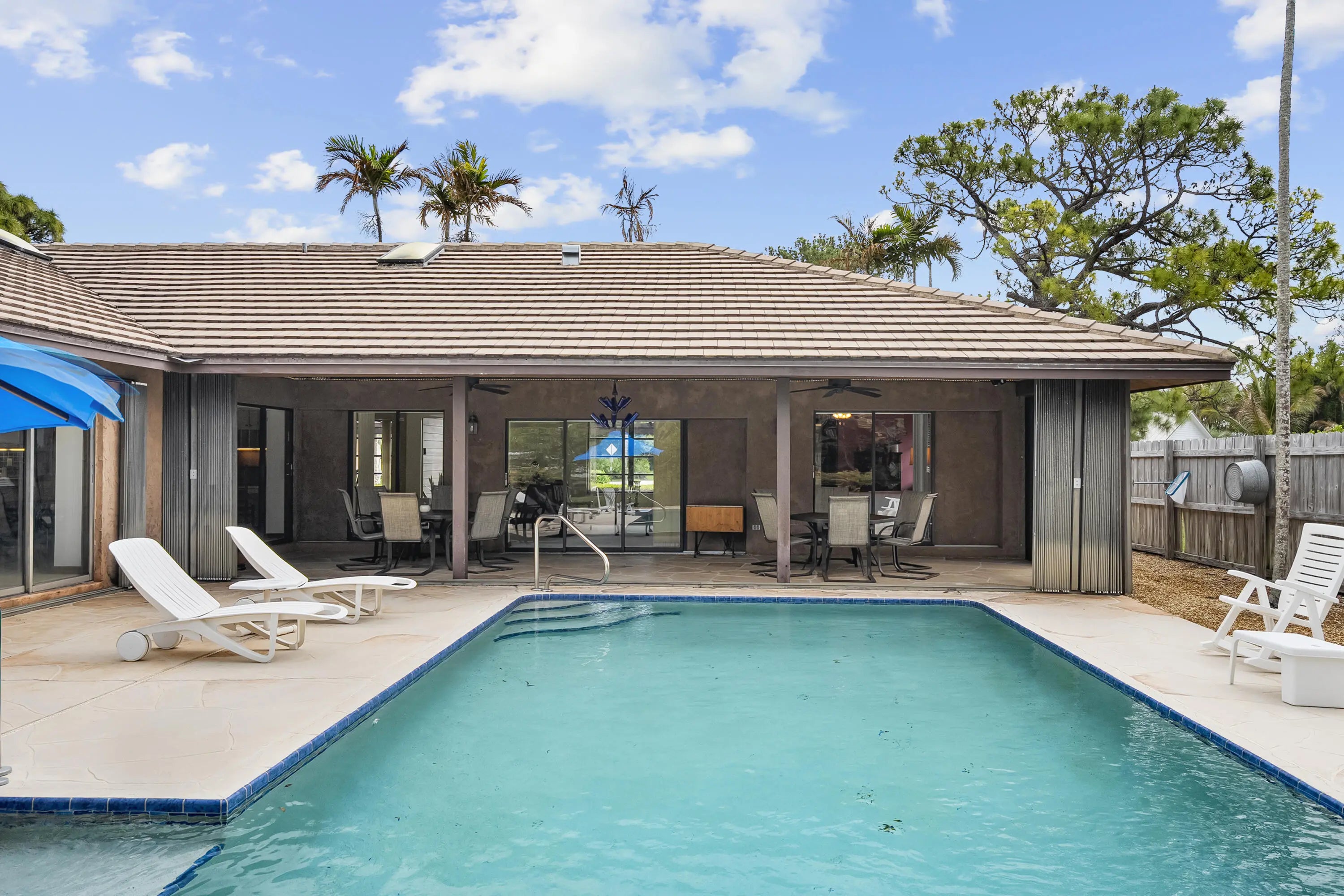 Eagles Nest is one of those communities in Jupiter that people move into and don't leave. Half acre lots, low HOA, privacy, and a community boat dock and private launch sitting on one of the widest sections of the Loxahatchee River with direct access to the Jupiter Inlet and beyond. This CBS 4 bedroom, 3 bathroom home sits on a fenced .51 acre lot and has been cared for by one owner for over 40 years. Brand new AC, and fresh paint throughout the main living areas. Exceptionally well maintained in the truest sense. Inside, the layout is thoughtfully designed for how people actually live. Formal living and dining rooms, a spacious family room with custom built-ins and a fireplace, vaulted ceilings with wood beams and skylights that bring in natural light and architectural character. The kitchen is well equipped with a double oven, large pantry, built-in desk, and built-in cabinetry. All of the sliding doors in the home are pocketing, allowing the home to be fully open to the outdoor space creating seamless indoor-outdoor flow. The primary suite has two closets, dual sinks, a standalone soaking tub, and a walk-in shower. Secondary bedrooms are generously sized with ample closet space and one includes built-ins configured perfectly for a home office. Outside, a resurfaced 16x32 chlorine pool with sun shelf anchors a large patio with plenty of room to expand and customize. The fence can be extended for additional flexibility. Top-rated schools, beaches, dining, and everything Jupiter and Northern Palm Beach County has to offer are within reach.