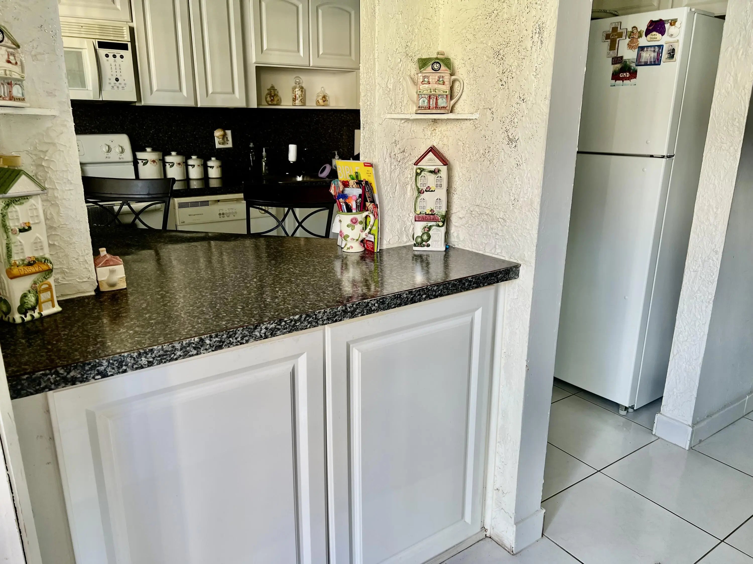 Enjoy life in this well-maintained 55+ community of Royal Park Gardens. Pride of ownership shows in every aspect of this well appointed condo. Park directly in front of your ground floor unit. This condo offers a unique kitchen and is well protected from any type of inclement weather. Hurricane shutters on all windows, plus hurricane impact windows in the living room and patio. The patio is enclosed for all weather use and is used as an additional room. Kitchen snack bar has additional storage space. Large tile throughout. Amenities include pools, tennis, pickleball, and bocce. Laundry room and storage areas on the first floor are close to the unit. Building has its own party and exercise rooms.