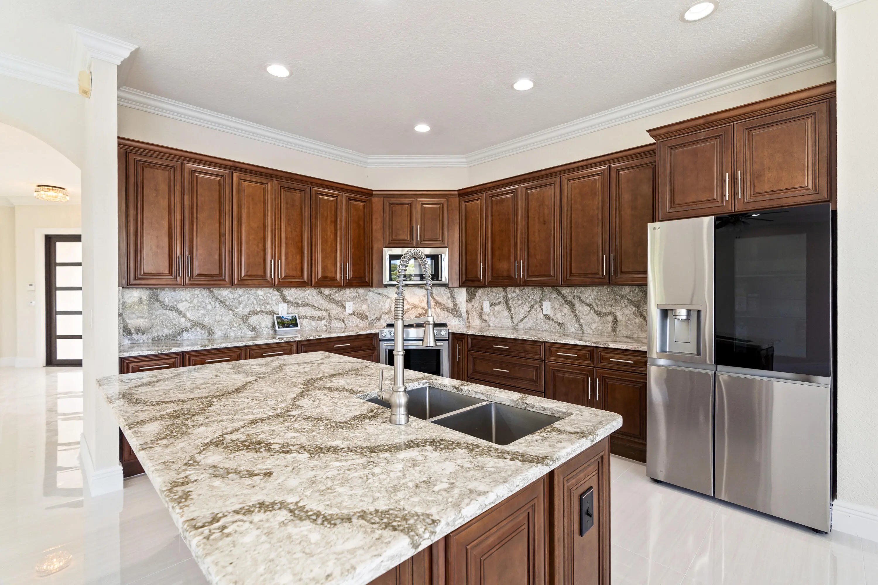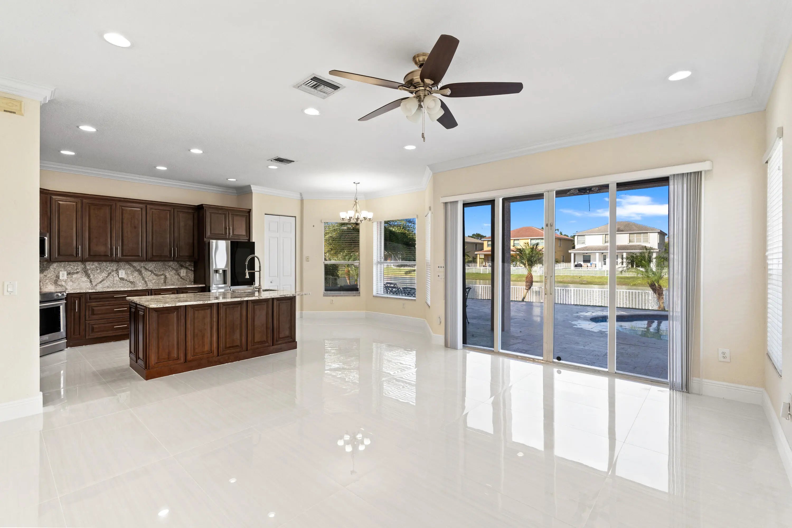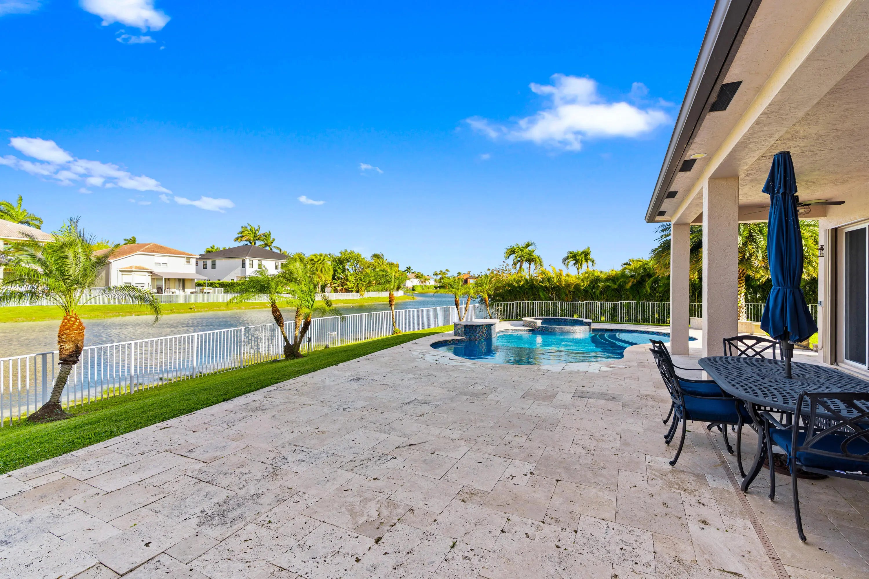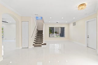 Impeccable lakefront home on a cul-de-sac featuring an oversized 12,978 SF lot with 110 ft of lake frontage. This beautiful residence offers 6 bedrooms and 4 bathrooms, including a spacious primary suite with sitting area and his & hers baths. New porcelain floors on the first level, wood floors upstairs and on stairs, new A/C, new water heaters, and a renovated kitchen with 42" wood cabinets and stainless steel appliances. First floor includes two bedrooms and a full cabana bath. Enjoy a spectacular backyard with saltwater heated pool & spa, new travertine patio, and lush landscaping with outdoor lighting—perfect for entertaining