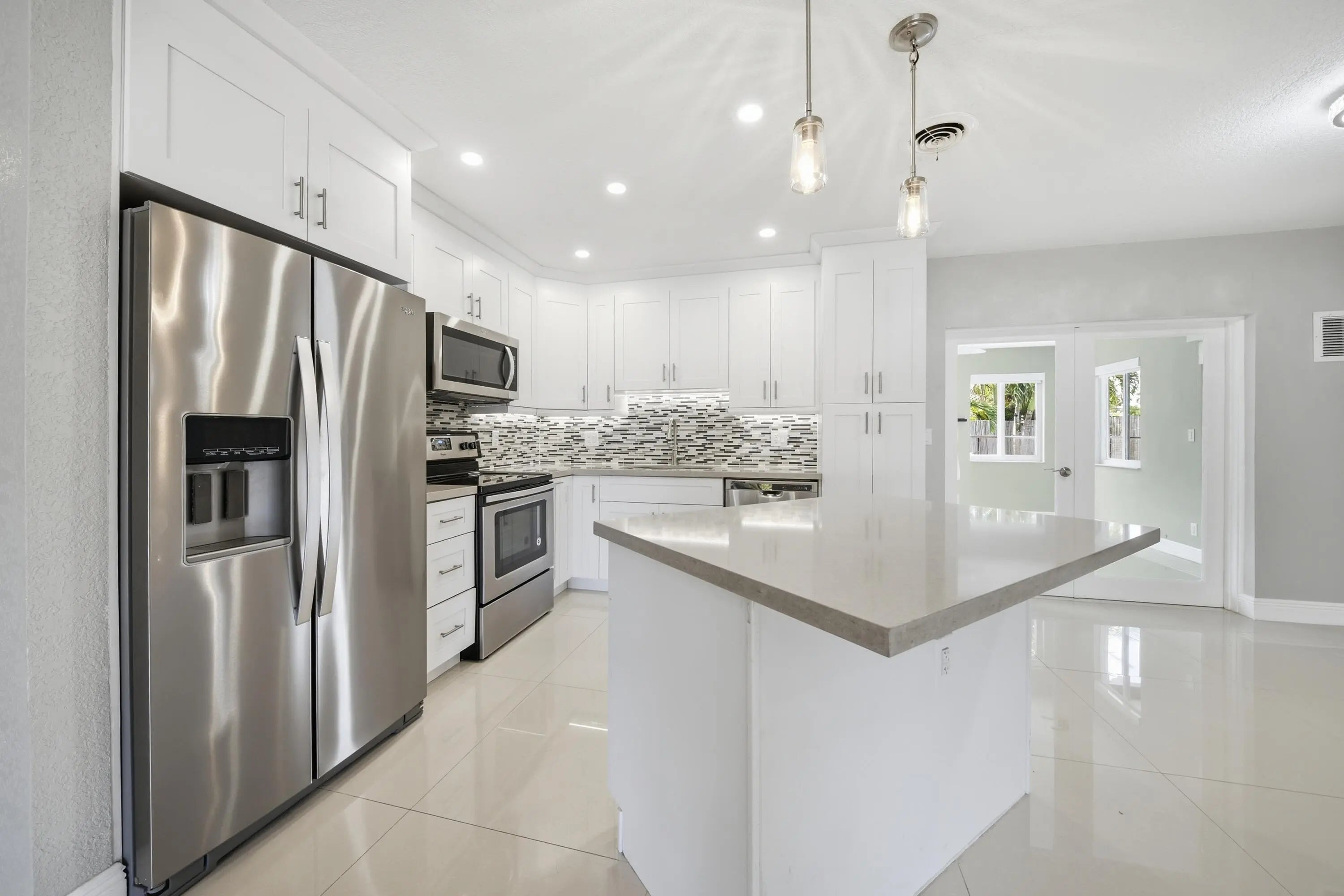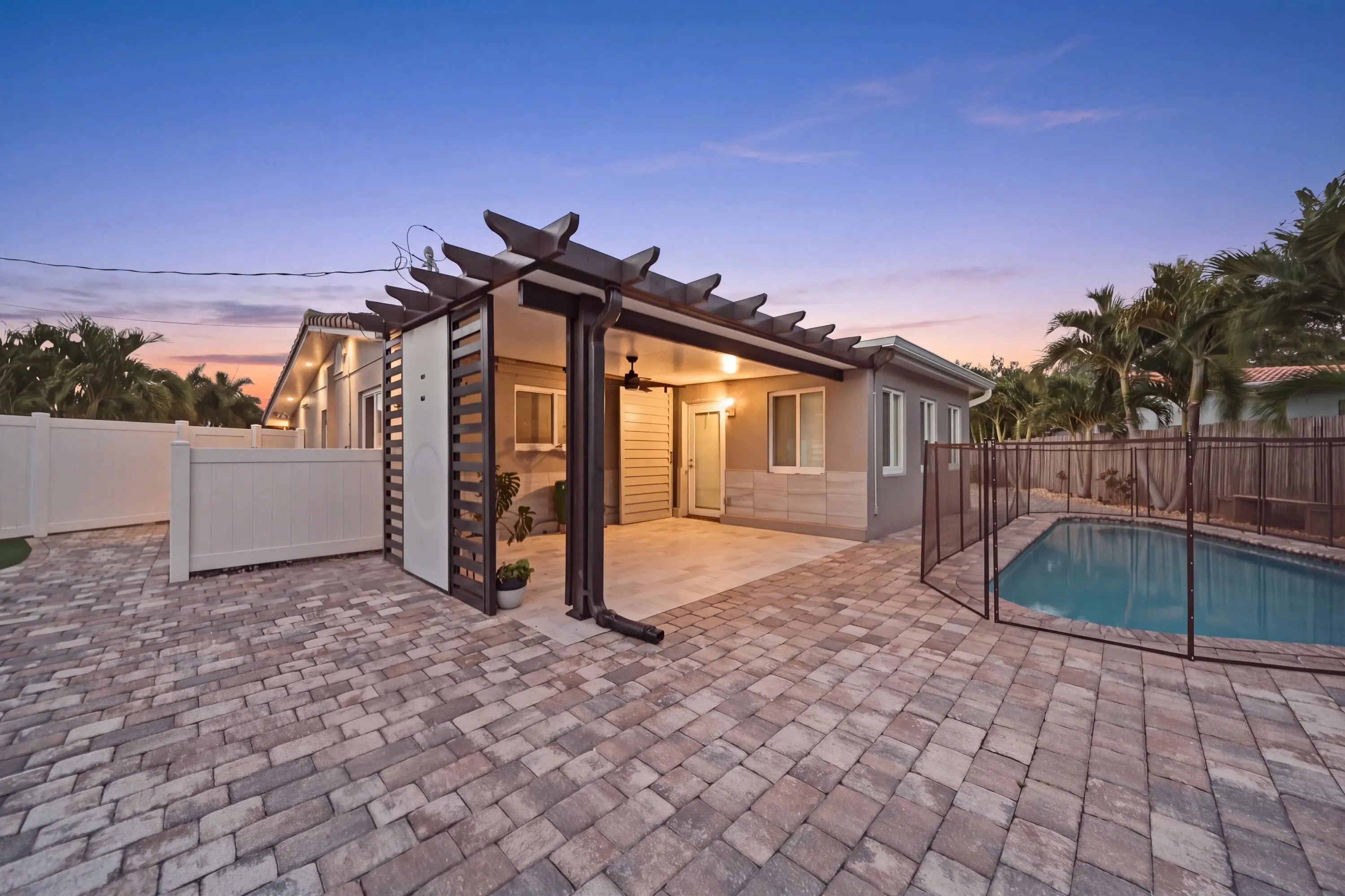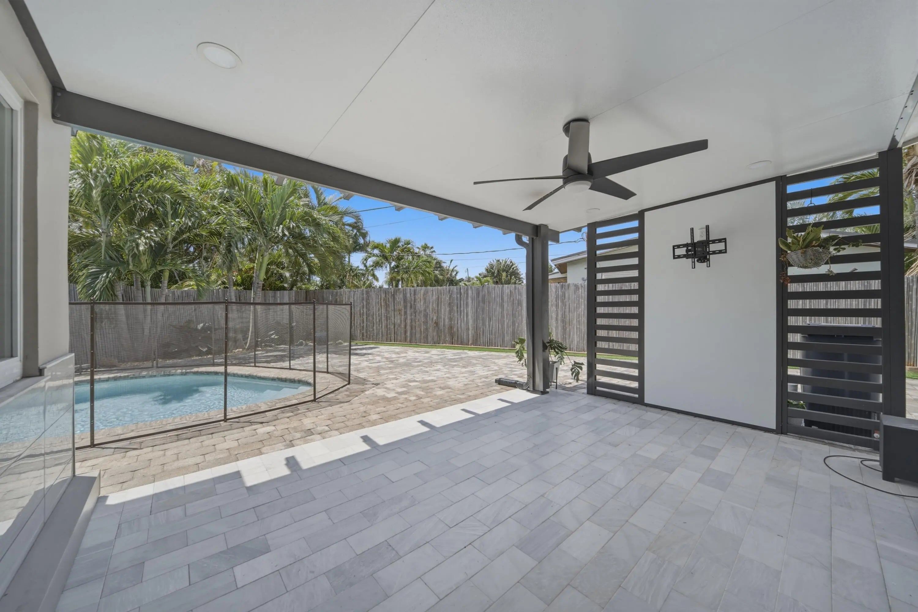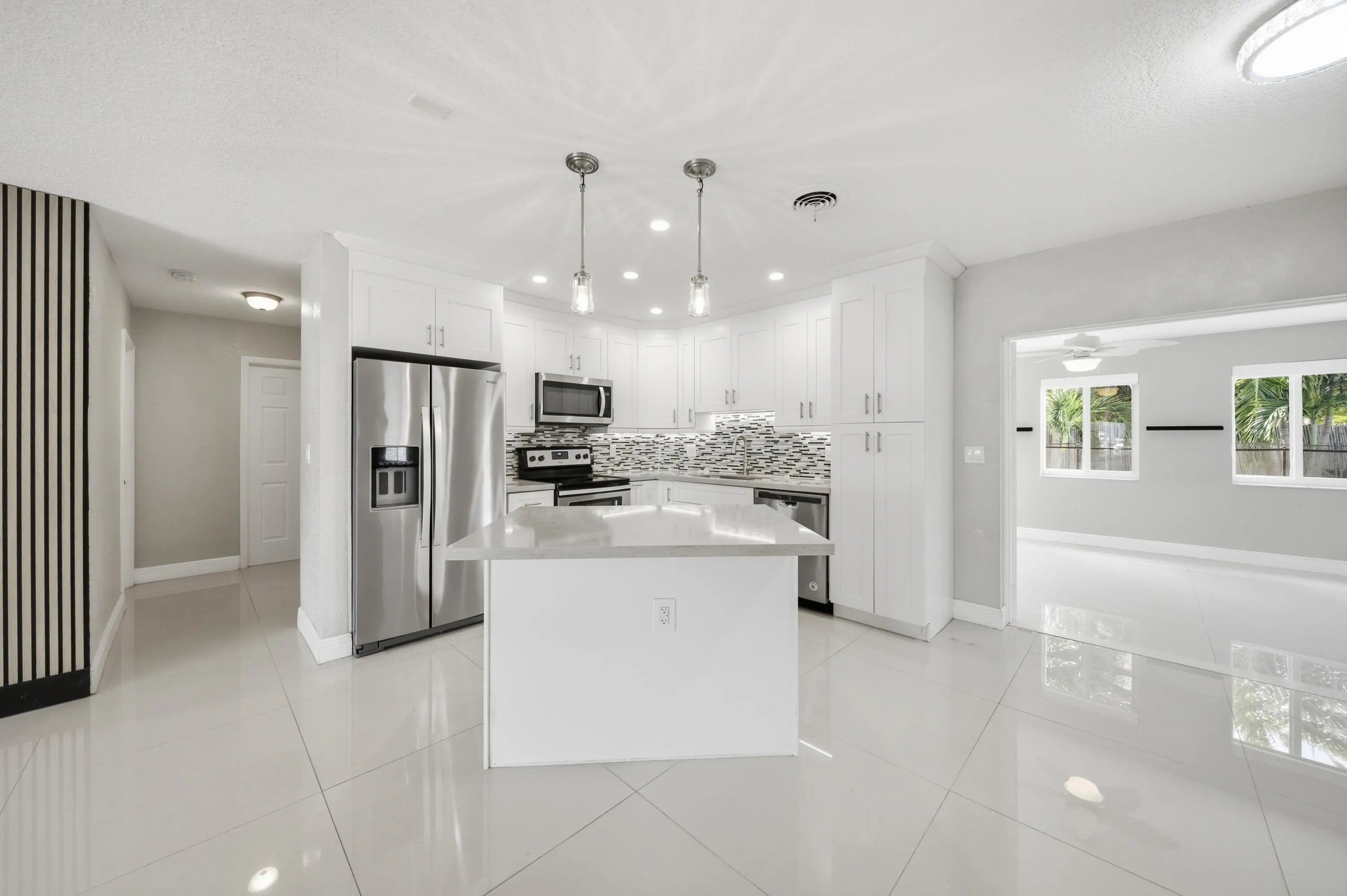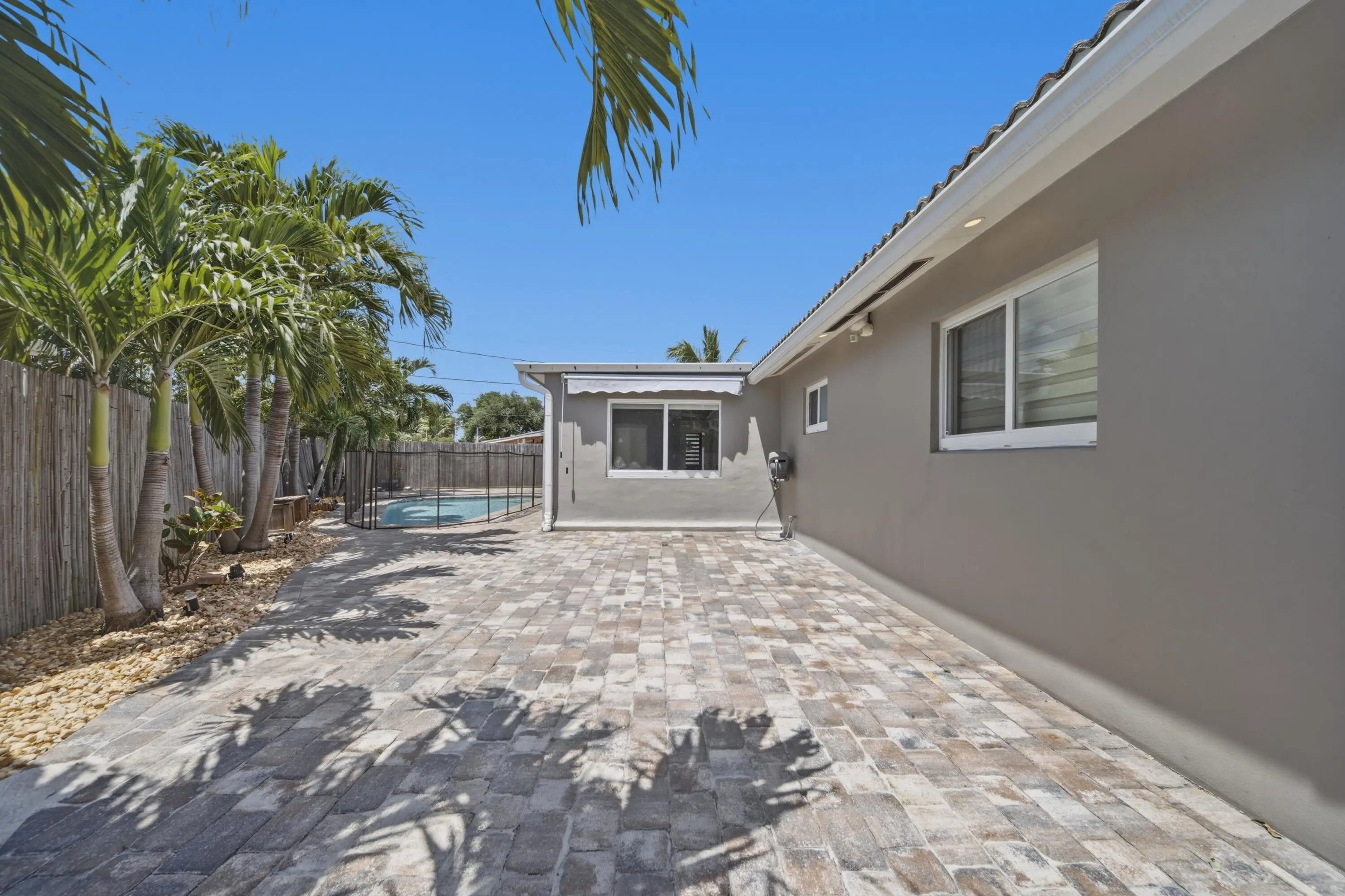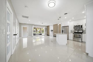Fully remodeled 3BR/2BA home on a corner lot in desirable Lighthouse Point. Inside, the home features modern finishes throughout, dimmable lighting, a built-in security system, and a remote-controlled privacy shade in the front window. Brand new A/C installed this month. The main living areas open to a tropical backyard oasis with a heated pool (electric heater), putting green, covered patio area and a roll-out awning—ideal for relaxing or entertaining. The property offers two side entrances, including one with space to store a boat. One-car garage plus a large driveway with ample parking. Additional upgrades include a Tesla supercharger and a secondary electrical panel for generator hookup. Pool and grounds maintenance included in monthly payments for easy, low-maintenance living.