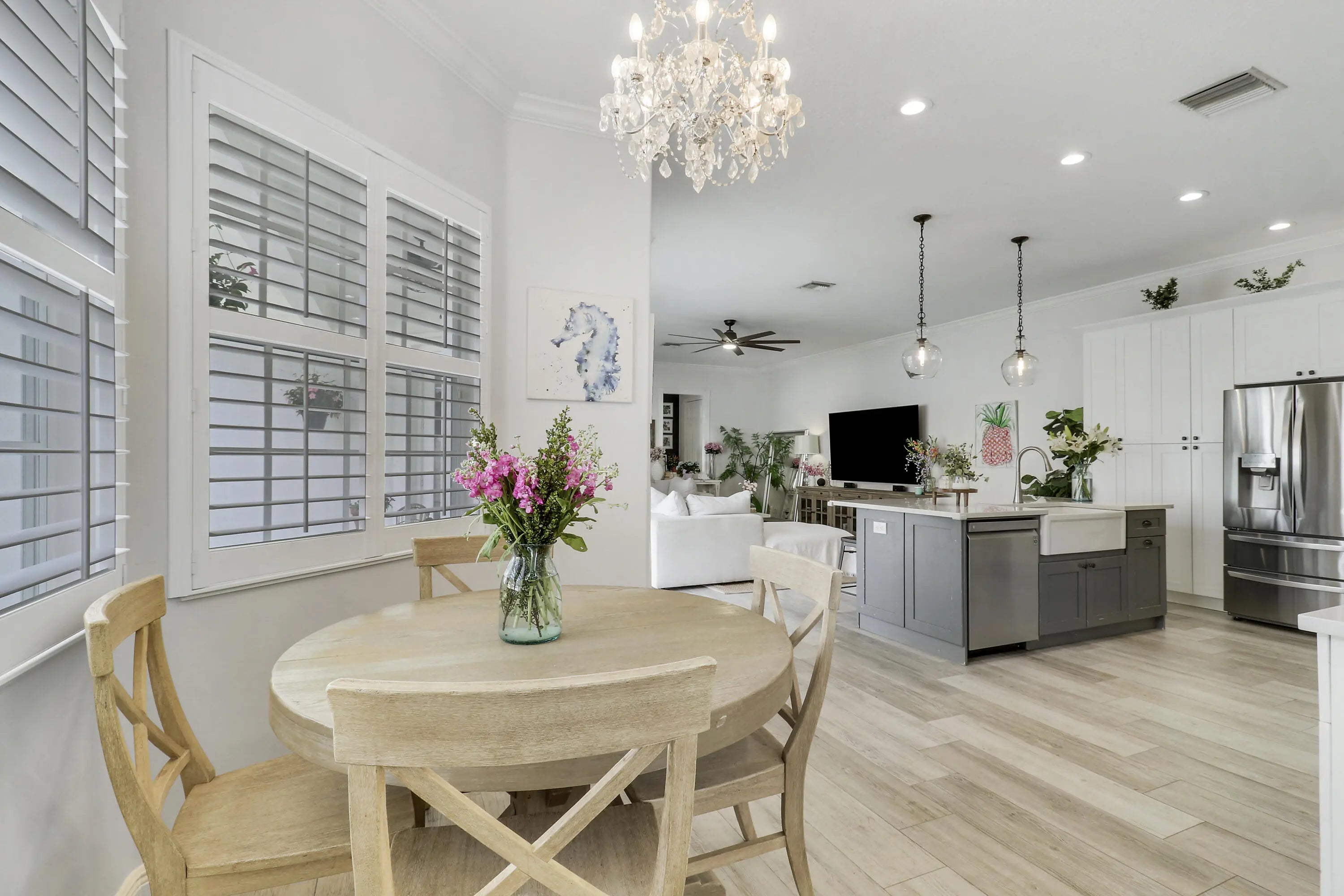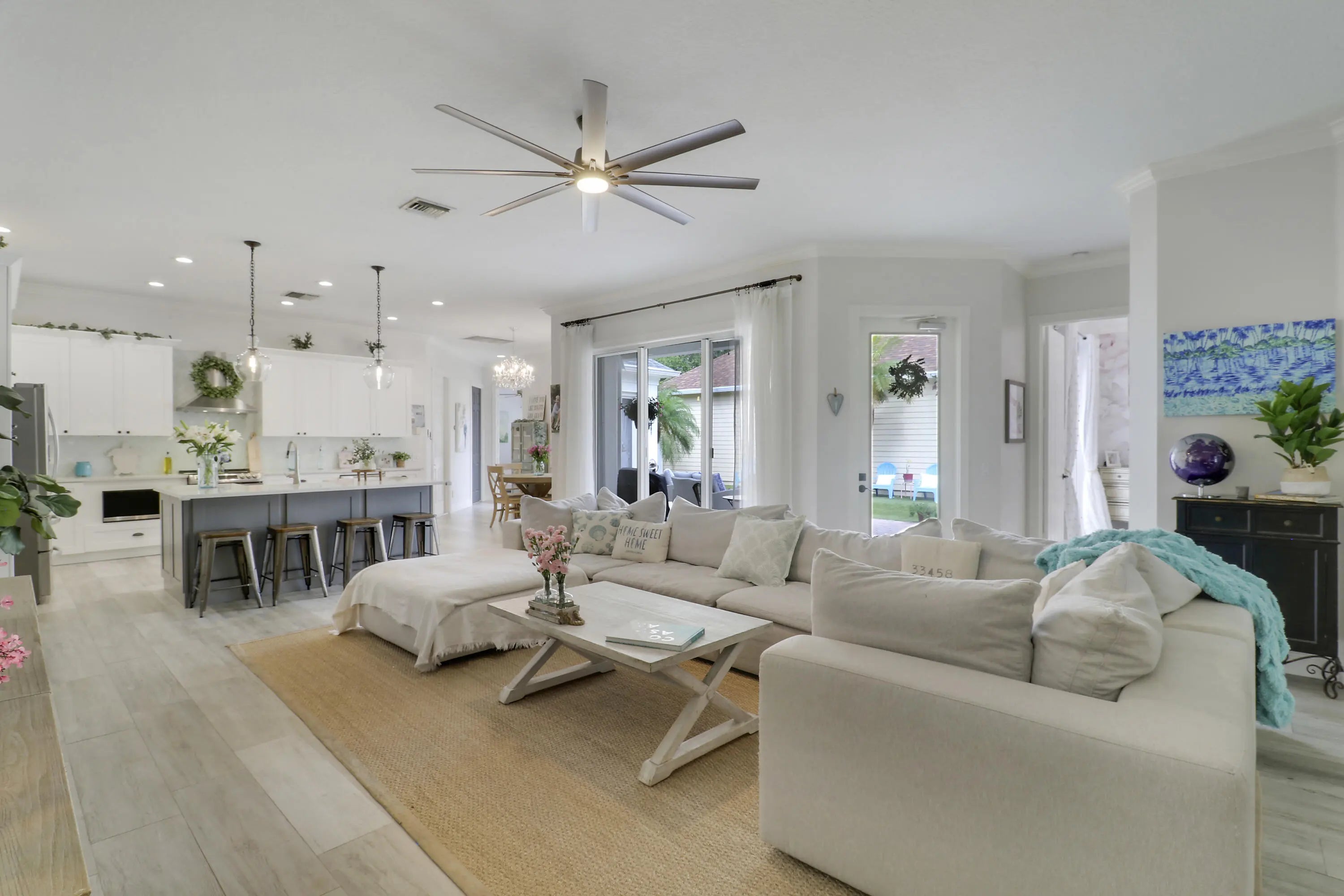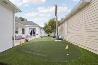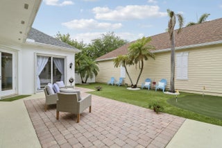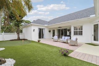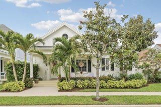 Bright, inviting, and ideally situated, this courtyard-style B-Model home in NewHaven at Abacoa—built by Divosta Homes in 1999—offers 3 bedrooms, 2.5 baths, and a 2-car garage, along with tranquil preserve views from its charming front porch. Inside, a thoughtfully designed open-concept layout features tile flooring throughout, plantation shutters, and a beautifully renovated kitchen that has been opened up to enhance flow and functionality. The kitchen includes a center island, quartz countertops, upgraded appliances, modern lighting, and a sleek glass backsplash. The spacious living area is perfectly suited for both entertaining and everyday living. The primary suite offers a true retreat, complete with a spa-like bathroom featuring quartz countertops and dual shower heads with handhelds & body sprayers for a luxurious experience. Step outside to a private side yard designed for low-maintenance enjoyment, featuring artificial turf and a fun mini putting green—ideal for relaxing or casual play. Recent updates: roof replaced in 2022, 4-ton A/C unit replaced in 2021 and primary bathroom remodeled in 2025, providing added comfort and peace of mind. NewHaven is widely regarded as one of the premier neighborhoods in Jupiter, consisting of 405 single-family homes and 100 townhomes, and offering a true sense of community. Residents enjoy a well-maintained environment with HOA benefits that include exterior painting (completed in 2025), cable TV and high-speed internet through Hotwire, exterior pest control, and landscaping. Community amenities include two pools with heaters for the winter months and chillers to keep them refreshing in the summer, a brand-new fitness center, 2 playgrounds for the kids, clubhouses, scenic walking trails, and a newly added covered park. All just minutes from pristine beaches, top-rated schools, golf, shopping, dining, downtown Abacoa, and Palm Beach International Airport.