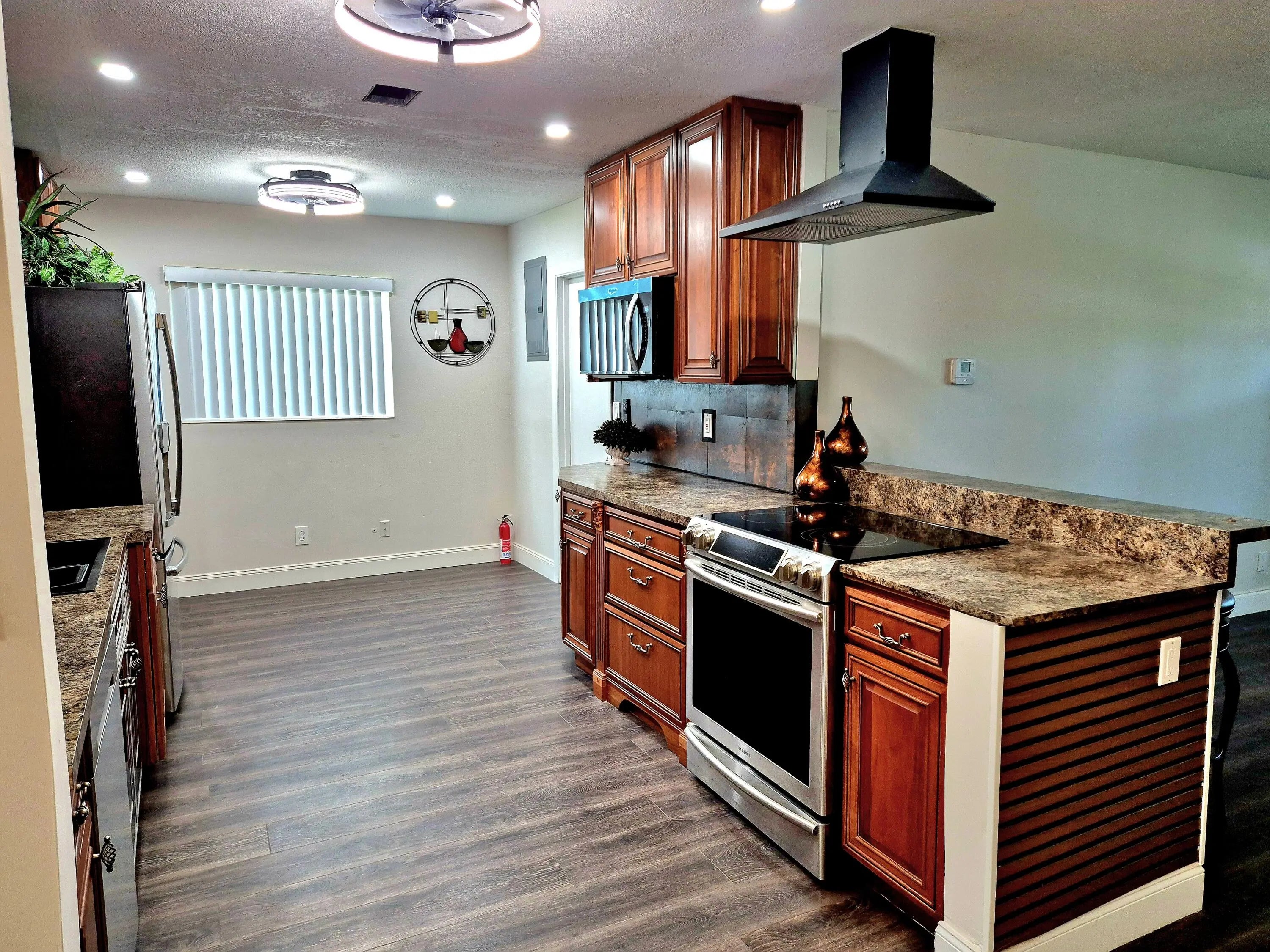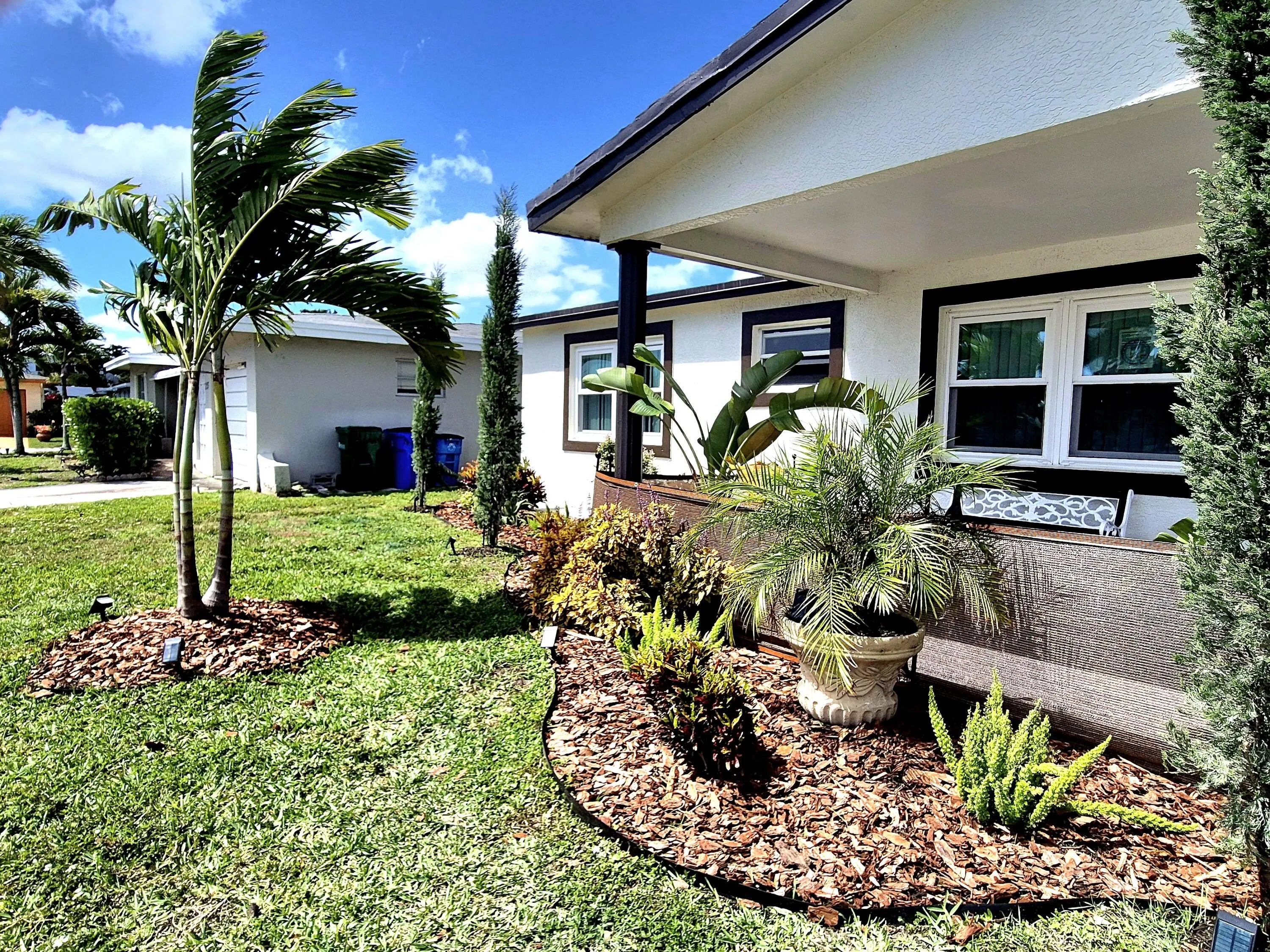 This exquisite home and spacious model with many beautifully upgraded features throughout: Dream Kitchen and appliances, 3 bedrooms and 2 baths with an office nook. It boasts an open and split floor plan, attractive laminate flooring. New IMPACT Windows , tankless water heater, electric panel. ALL WORK WAS COMPLETED WITH PERMIT! Up to todays code! INSURANCE DISCOUNT! Beautiful designer landscaping. Private backyard really allows you to enjoy South Florida Best Lifestyle. Walking distance to clubhouse and huge parking area. You must see it before it's GONE! Enjoy very low HOA fees, clubhouse, pool & active community amenities. Prime location close to shopping, dining, beaches & entertainment. Schedule your showing today!