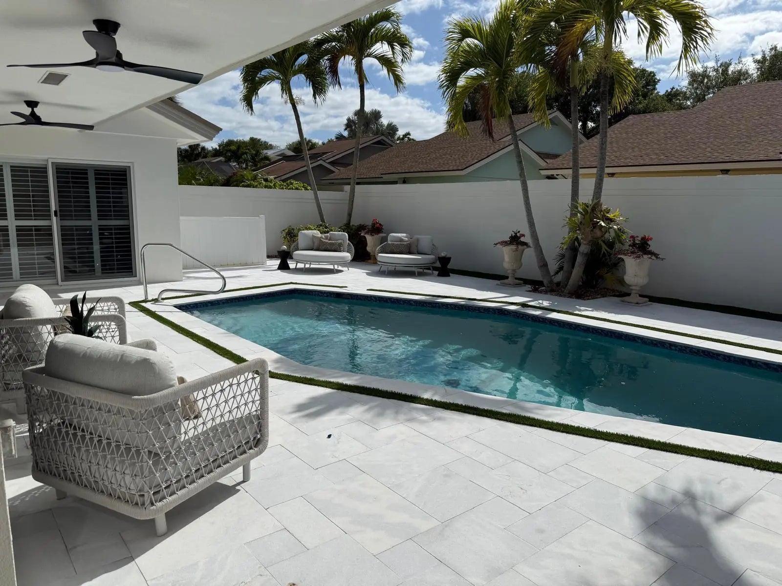 Welcome to your South Florida oasis in one of Jupiter's most sought-after coastal communities—The Bluffs. Perfectly positioned just minutes from pristine beaches, premier shopping, top-rated dining, and world-class boating, this high-end luxury residence offers the ultimate blend of lifestyle and location. Thoughtfully updated and meticulously maintained, the home features a 2022 metal roof and 2022 A/C system, providing peace of mind and modern efficiency. All-new full impact windows and doors—including an impact-rated garage door—offer both style and security. Step outside to your private retreat where the pool has been beautifully resurfaced and enhanced with a stunning travertine deck and lush turf surround—perfect for entertaining or relaxing year-round. Inside, the reimagined kitchen showcases a fresh, modern aesthetic with sleek quartz countertops, Bosch appliances, and elegant slim shaker white oak cabinetry complemented by designer finishes. A large statement island with a striking quartz waterfall edge on both ends serves as the centerpiece—perfect for gathering, entertaining, and everyday living. The primary suite is a true sanctuary, featuring a spa-like bathroom with a soaking tub, walk-in shower adorned with marble accents, and a spacious custom closet complete with built-ins. The secondary bathroom has also been thoughtfully renovated with high-end marble details and refined design. A versatile third bedroom with a loft space offers endless possibilities—ideal for a home office, guest suite, or creative retreat. Experience elevated coastal living in one of Jupiter's "it" communities—where luxury, comfort, and location come together seamlessly.