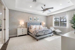 Zero traffic noise. Experience for yourself! This 2020 build, 4BR + office home with loft sits on a quiet lot in gated Sonoma Isles with easy access to I-95 and the Turnpike. Open kitchen features an oversized island, double ovens, gas cooktop, and walk-in pantry. Owner's suite includes large walk-in closet and bath with dual vanities and makeup area. Motorized screened lanai with tongue-and-groove ceiling, and gas fireplace. Summer kitchen with grill, pizza oven, refrigerator, and sink. Fenced backyard offers lake views, heated saltwater pool, screen enclosure, turf, putting green, and lighting. Add'l: impact glass, home generator, plantation shutters, motorized shades, epoxy garage floors, EV charger, and storage. Sonoma Isles amenities: pool, fitness center, tennis, and pickleball. Zoned for A-rated Jupiter schools. Near beaches, great restaurants, golf, and Palm Beach International Airport. Optional Jupiter Country Club membership. Furniture negotiable.