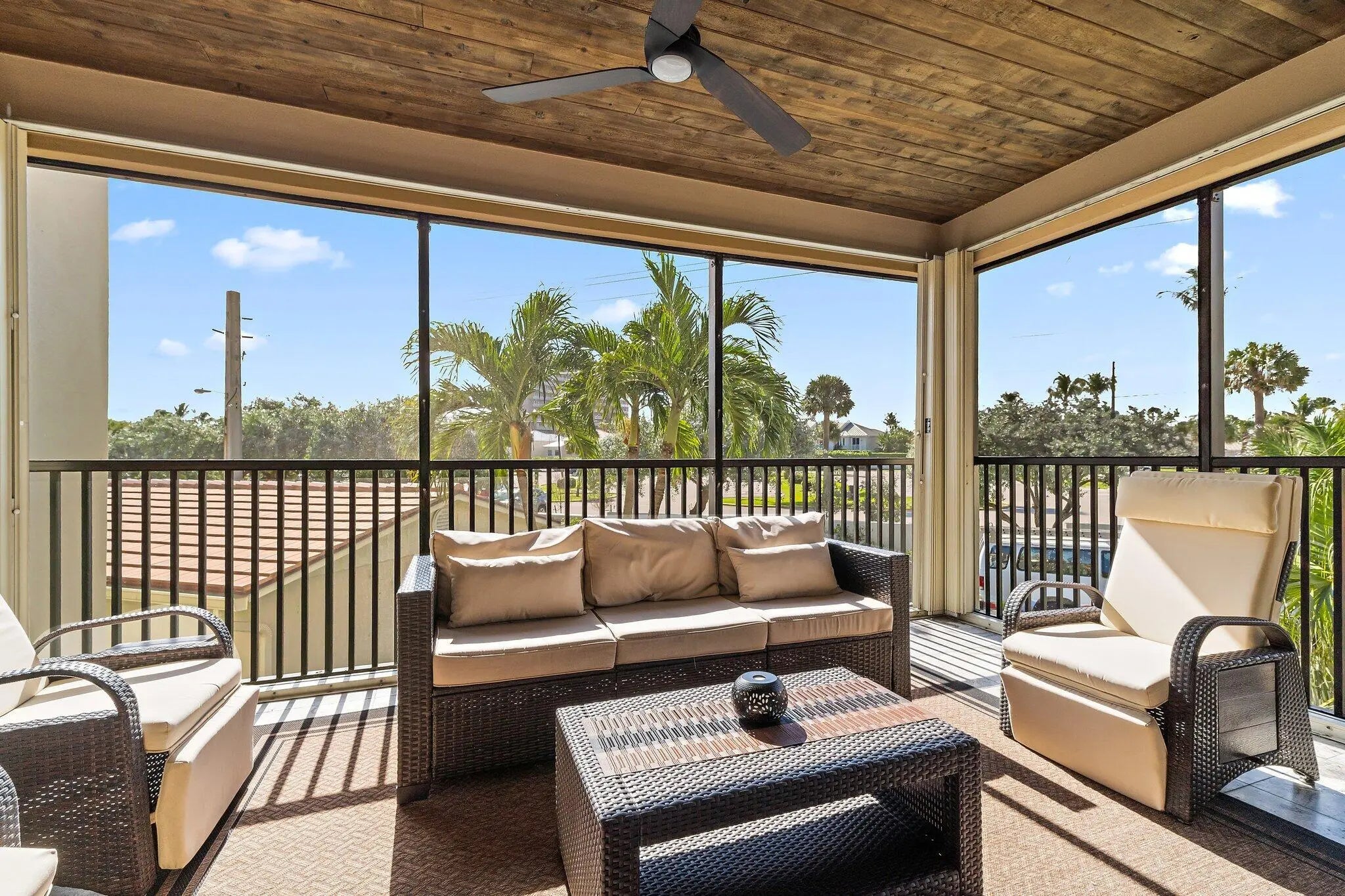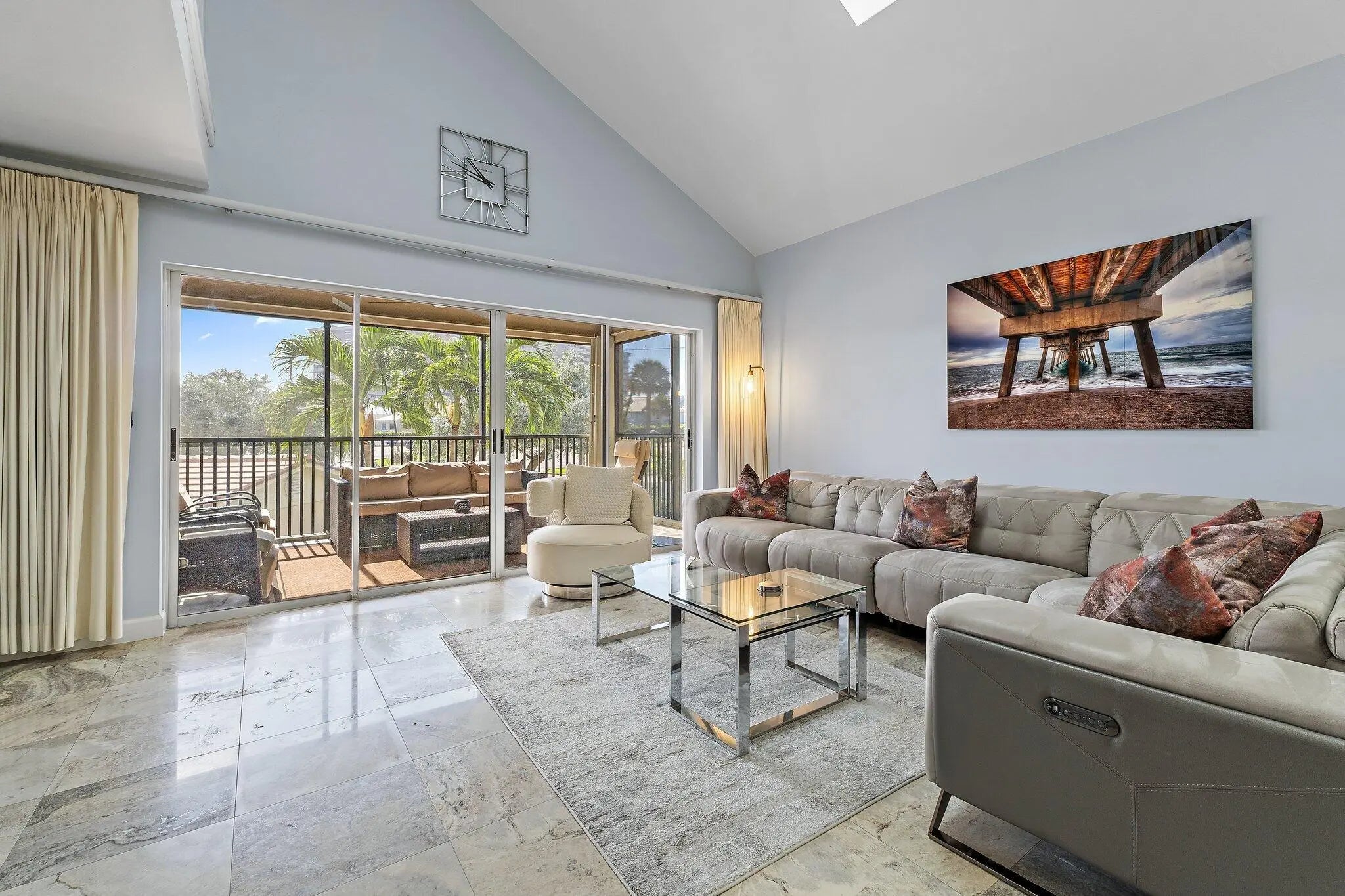 SUMMER RENTAL - Nestled between Ocean Cay Park and the iconic Juno Beach Pier, this spacious four-bedroom, three-bathroom, two-level Beachcomber condo offers a premier coastal lifestyle. Just steps from the pristine beach, Unit G3 boasts soaring ceilings, abundant natural light, spacious bedrooms, a tankless water heater, new HVAC system, and new appliances. Elegant stone tile floors run through the open living area and kitchen which features coastal-inspired tile and granite countertops. A large screened patio, accessible from both the living room and master suite, provides the perfect space to relax after a beach day. With a gated entry, lush landscaping, and community pool, Beachcomber has it all in a prime location near shops and dining. An enclosed garage is included. Pets prohibited.