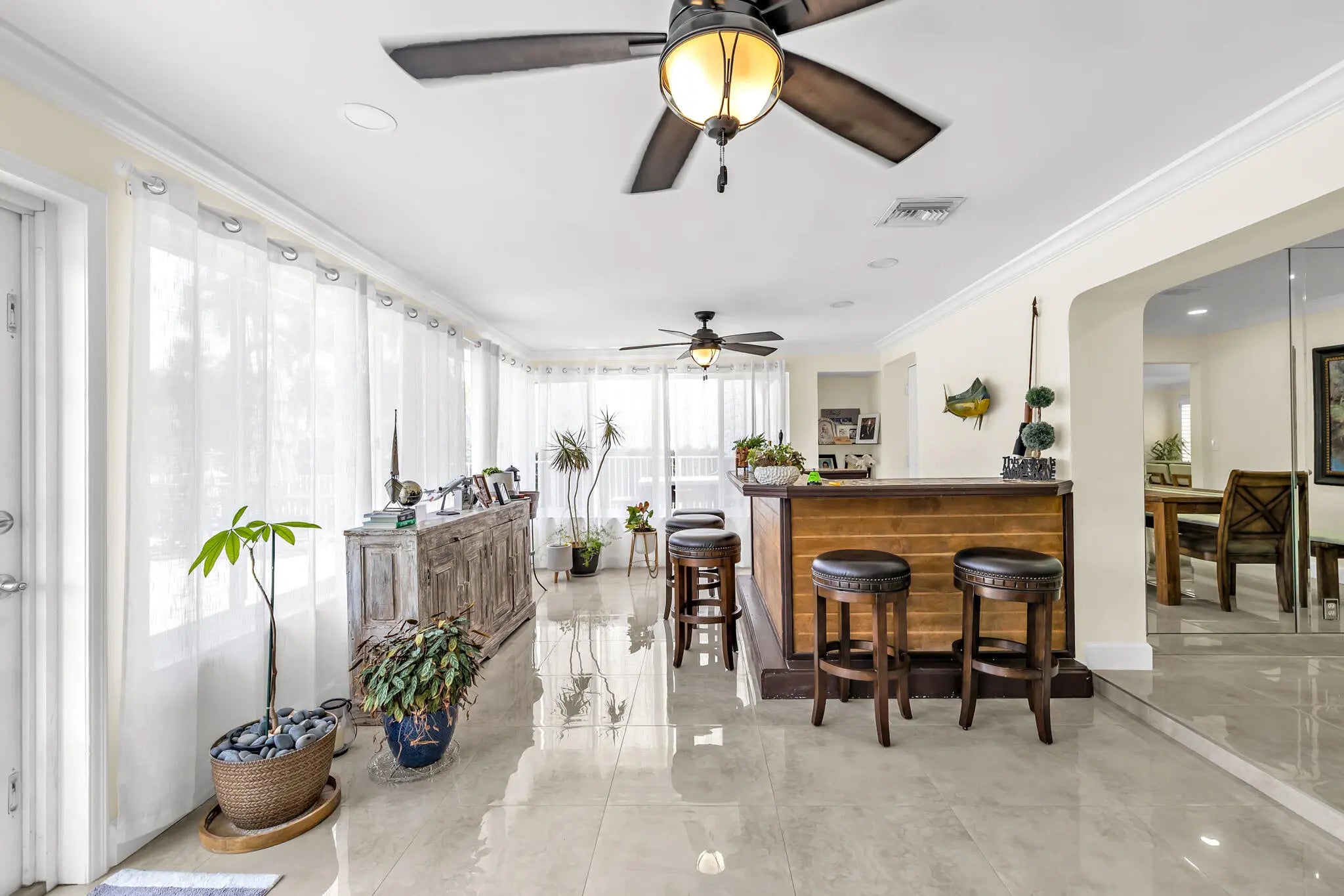 Welcome to your stunning South Florida waterfront home that offers 80 feet of deep water frontage with direct ocean access and no fixed bridges. Perfect for boating enthusiasts searching for a luxury waterfront home in Lighthouse Point, near Pompano Beach, Boca Raton and Hillsboro Inlet. Ideally positioned for quick access to the Intracoastal Waterway and Atlantic Ocean, this property checks every box for buyers looking for deep water dock homes, boaters paradise properties, & homes with private docks in South Florida. Inside, you'll find 2,152 Square feet, a brand new kitchen with an oversized island, and new appliances, all opening to a bright, open floor plan designed for modern coastal living. Porcelain tile flows throughout, with French doors leading to a private pool and patio area complete with a wet bar, making it ideal for entertaining and indoor-outdoor living. Enjoy an oversized garage with excessive storage. The exterior features a paved circular driveway and an expansive patio surrounding the pool, leading to a fully equipped dock with water, electric, and davits—ideal for yacht owners or those searching for waterfront homes with dockage in South Florida. The backyard offers highly desirable eastern exposure, capturing beautiful natural light and ocean breezes. This is a rare opportunity to own a move-in ready waterfront home with no fixed bridges, deep water frontage, and ocean access in one of South Florida's most sought-after boating communities.
