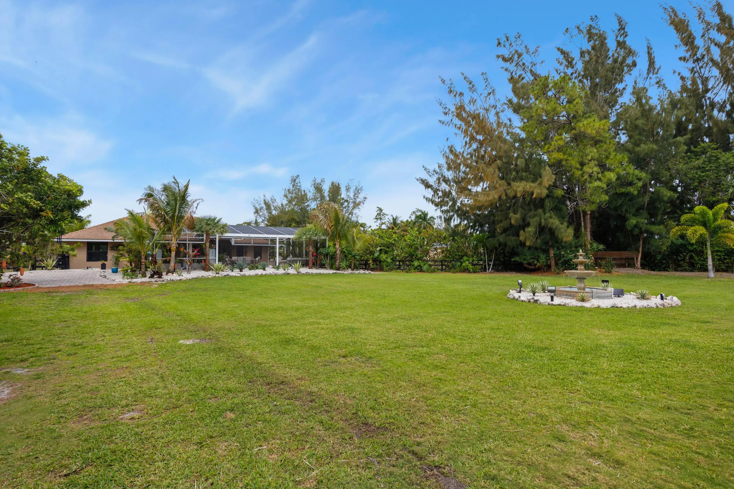 Discover your fabulous private oasis in Loxahatchee Groves — this stunning 3-bedroom, 3-bath single-family home (2,219 sq ft, built 2008) on a sprawling 1.73-acre lot is pure modern elegance with effortless South Florida style and serious entertaining energy. Step inside to an open-concept haven drenched in natural light and soaring ceilings. The gourmet kitchen is the ultimate stage with its oversized island, stainless appliances, and seamless flow into the living and dining areas — perfect for relaxed brunch with the boys, sunset cocktails that turn into all-night fun, or those legendary weekend gatherings you love to throw. Sliding doors open wide to the backyard, making every day feel like an indoor-outdoor fashion show. The primary suite is your personal sanctuary: a main-level retreat with generous walk-in closets and a spa-inspired walk-in shower, the perfect spot to unwind in style after a day of living your best life. The thoughtful split bedroom layout keeps things private yet intimate, whether it's for guests or your fabulous home office. Outside is pure resort fantasy: a screened saltwater pool and expansive patio overlooking peaceful pond views, surrounded by lush landscaping. Impact windows and doors throughout plus a whole-house generator mean peace of mind no matter what. Ideal for poolside lounging, evening hangs under the stars with your crew, or simply living your most low-key luxe, Instagram-worthy life with total privacy (and zero HOA drama!). Recent updates, custom lighting, and smart storm protection keep it as effortless as it is fierce. Tucked on a quiet corner lot yet close to everything that makes South Florida pop — this is more than a house. It's a sophisticated, welcoming space that celebrates your vibe and is ready for your next chapter of effortless style and joy. Pride in every detail. Come make it yours.