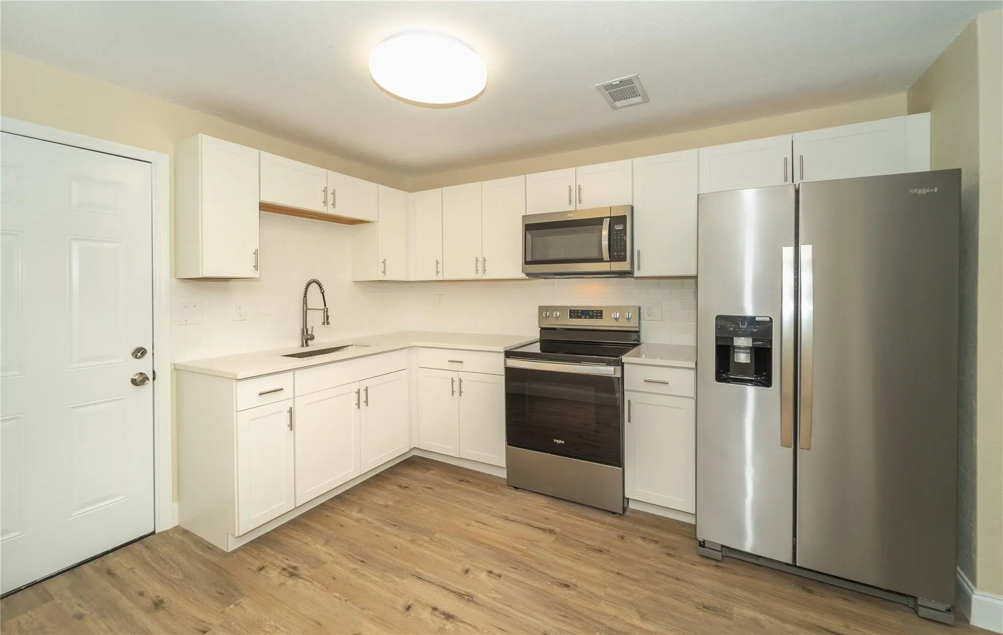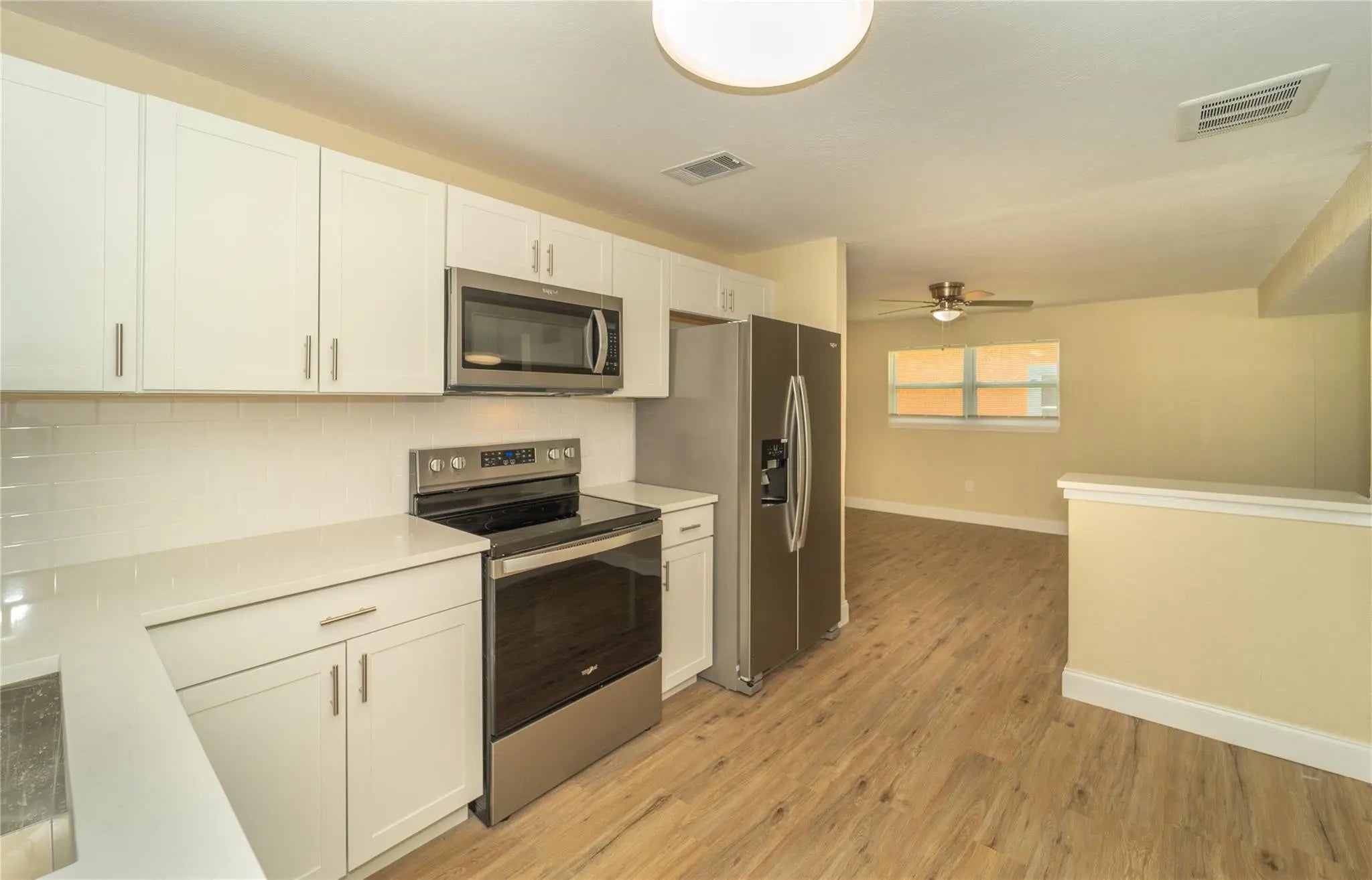 Affordability at its best !! Cheapest home per square footage in the area !! Newly renovated , 3bed, 2 bath frame stucco home . Approximately 1505 sq foot under air & Home is on public water/sewer, BRAND NEW & Permitted in 2023: Shingle roof . Central A/C condenser, handler, & thermostat. New laminate flooring throughout, New SS appliances, quarts countertops, backsplash, sink, built in pantry area, new cabinets, light fixtures, updated toilets, vanities, mirrors, tub with tile shower surround & electric water heater. Exterior attached carport, front and rear open patio space, chain link fence in rear, new ag, wood,