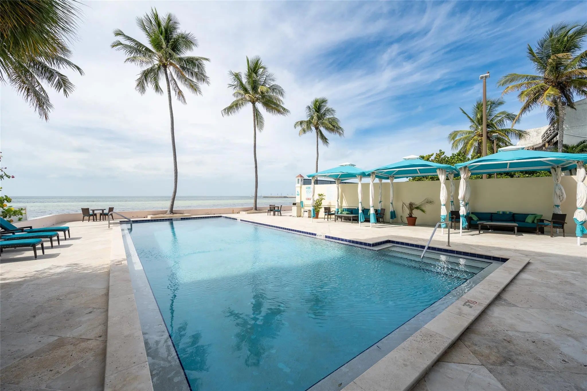Rare find! This recently completely renovated 4th floor, Ocean front unit is loaded with spectacular upgrades. EVERYTHING was updated! From the Cambrian countertops in the new kitchen, gorgeous Mahogany stairs with wire railings, tile bathrooms, and custom wood closet shelving, to the breathtaking panoramic ocean views, this unit is fully Turn Key and waiting for its new owner. Located at Key West Beach Club, this community has 2 waterfront pools, a tennis court, gym, and a sauna. Definitely a must-see!