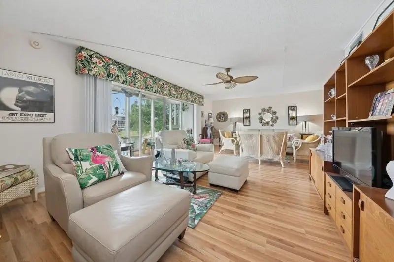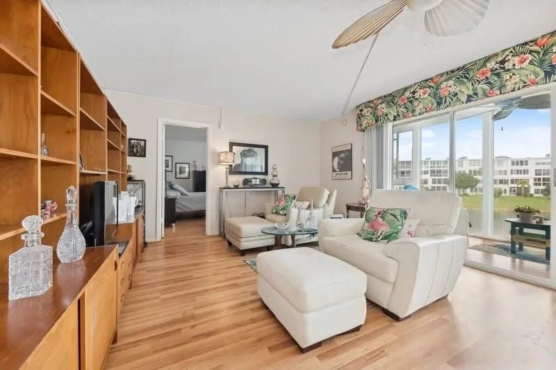 Discover the largest condo in all of Century Village—nearly double the size of most two-bedroom units! This spacious home is perfect for entertaining, whether for the season or year-round living. Recently updated with brand new flooring and fresh paint, it offers a modern, move-in-ready feel. Enjoy stunning views, abundant natural light, and generous closet space in the large bedrooms and impact glass throughout, providing peace of mind and energy efficiency. Relax on your expansive lanai, an ideal space for enjoying the views or hosting guests. Century Village has a total entertainment complex: an awesome gym, indoor/outdoor pools, sauna, game rooms, tennis and pickleball and its own movie theater.