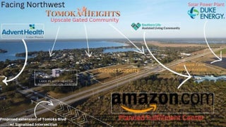 Over 10 acres of prime US Highway 27 frontage. Three existing buildings w/ total of 7874 sq ft, built as model homes for neighboring gated community, previously used as medical offices and maintained in good, clean condition, with 40 paved parking spaces as currently configured. Upscale, gated Tomoka Heights community adjacent to the north and west. 1/5 mile highway frontage, opposite the expected Amazon Fulfillment Center. Dedicated highway crossover with deceleration lanes in both directions. Existing R3 zoning permits - among many other uses - medical and professional offices, single and multi-family housing, apartments, condos, hotels/motels and assisted living/nursing care. Seven additional acres zoned B3 available directly across the highway.