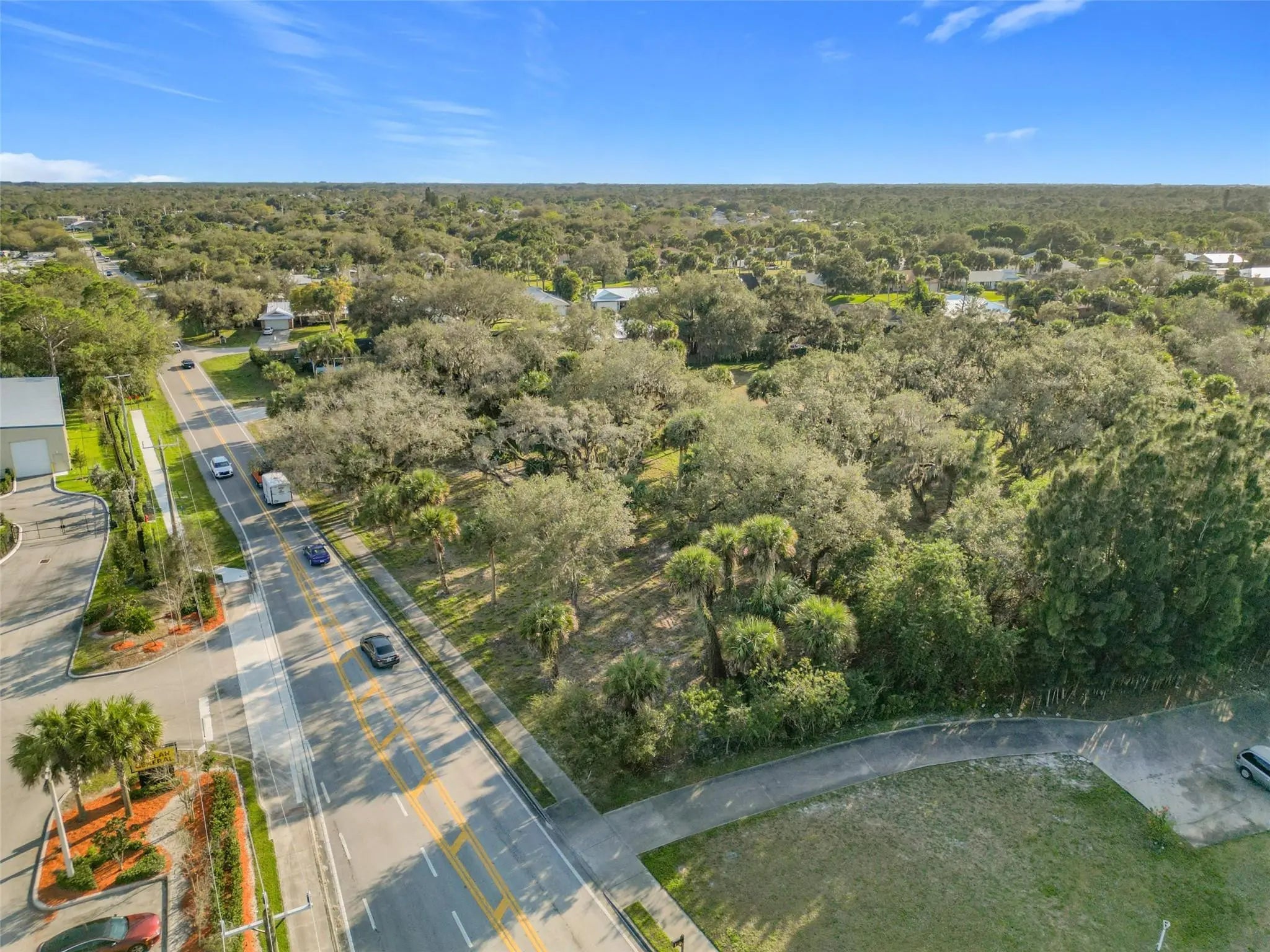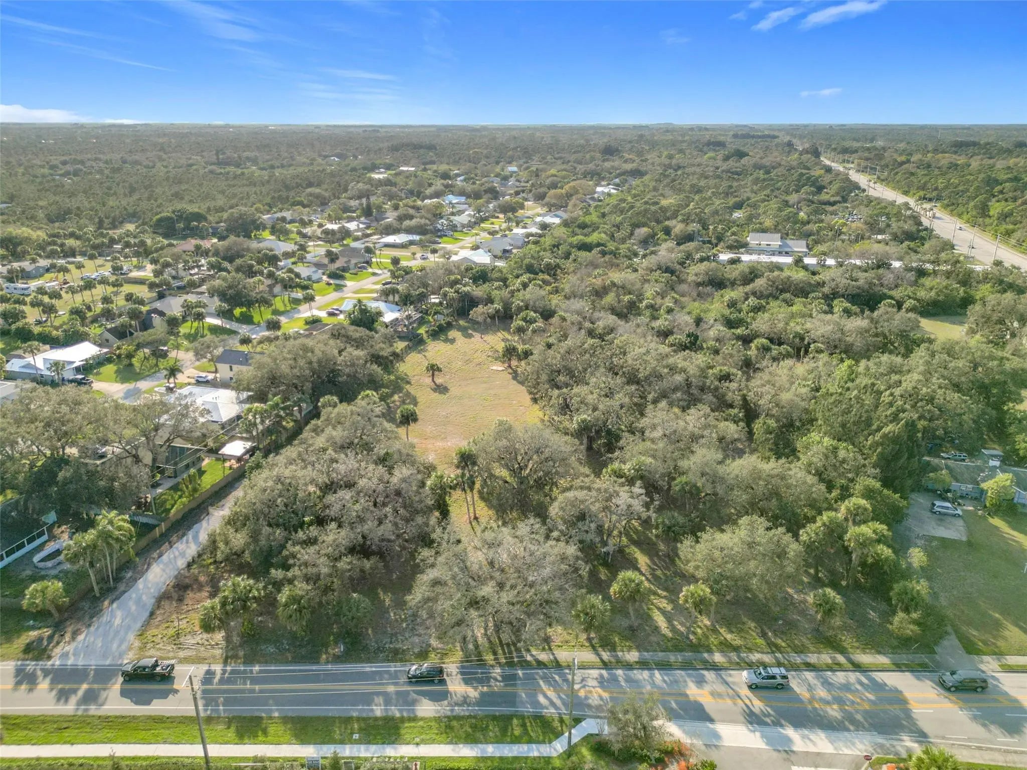 Beautiful 3.64 acres, zoned General Commercial. Just two parcels in from Oslo on Old Dixie Hwy. Close to US1. Center of the property has been cleared. The perimeter of the property has beautiful Oaks. Driveway with gate. The property also has temporary power and water available. Partial sidewalk. Awesome location close to US Hwy 1. Oslo Rd is scheduled to open to I-95 in the summer of 2027.