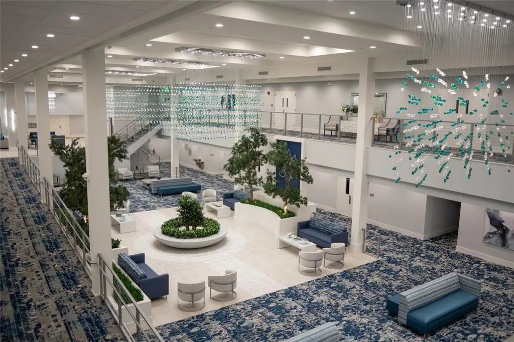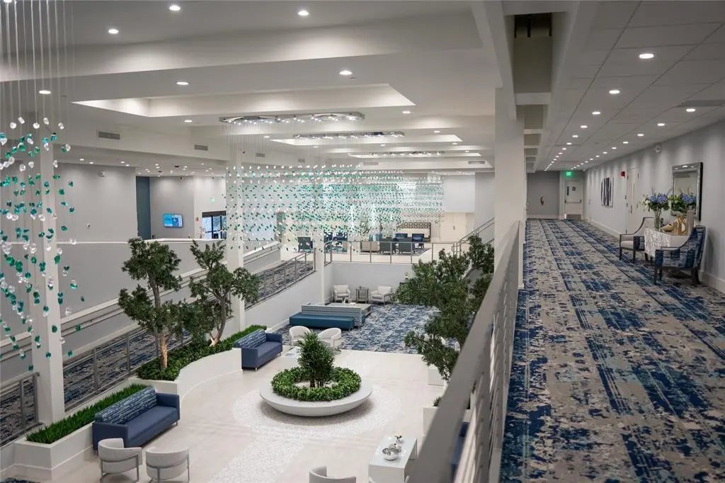 Enjoy your morning coffee on your private balcony, while taking in panoramic lake views from this turn-key, furnished, 2/2 unit with 1,230 sq. ft. This desirable largest Lancaster model has a primary bedroom with his/hers walk-in closets & spacious 2nd bedroom with en-suite bathroom. This unit has a plethora of features & updates including tile throughout, NO POPCORN, freshly painted, eat- in kitchen with granite counters & backsplash, stainless steel appliances including a NEW oven, updated bathrooms, laundry room with NEW full sized washer/dryer, plantation shutters, HWH 2024. This unit is offered furnished including new TV's. (dining rm table & bar table excluded) NEW ELEVATOR. CAN RENT IMMEDIATELY. Huntington Lakes is an active, gated 55+ community with a newly renovated clubhouse.