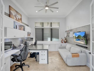 Live at Parkland Golf and Country Club, Parkland’s only private golf community. Enjoy golf and lake views plus a bridge view, high ceilings, and large windows for great natural light. This 5BR/4.5BA home offers a remodeled kitchen with waterfall quartz countertop and custom cabinetry, plus an updated primary bath. Office with two built-in desks and a separate entrance. Open loft with sitting area and two built-in work zones. Media room, entertainment cabinet. Outside, unwind in the heated saltwater pool with covered patio, outdoor kitchen, and cabana bath for easy indoor-outdoor living. Impact windows, wood front door, and a 3-car garage with built-in storage. Guard-gated entry, clubhouse amenities with restaurant, bar, pools, tennis, pickleball, fitness center, spa, kids club, and events.