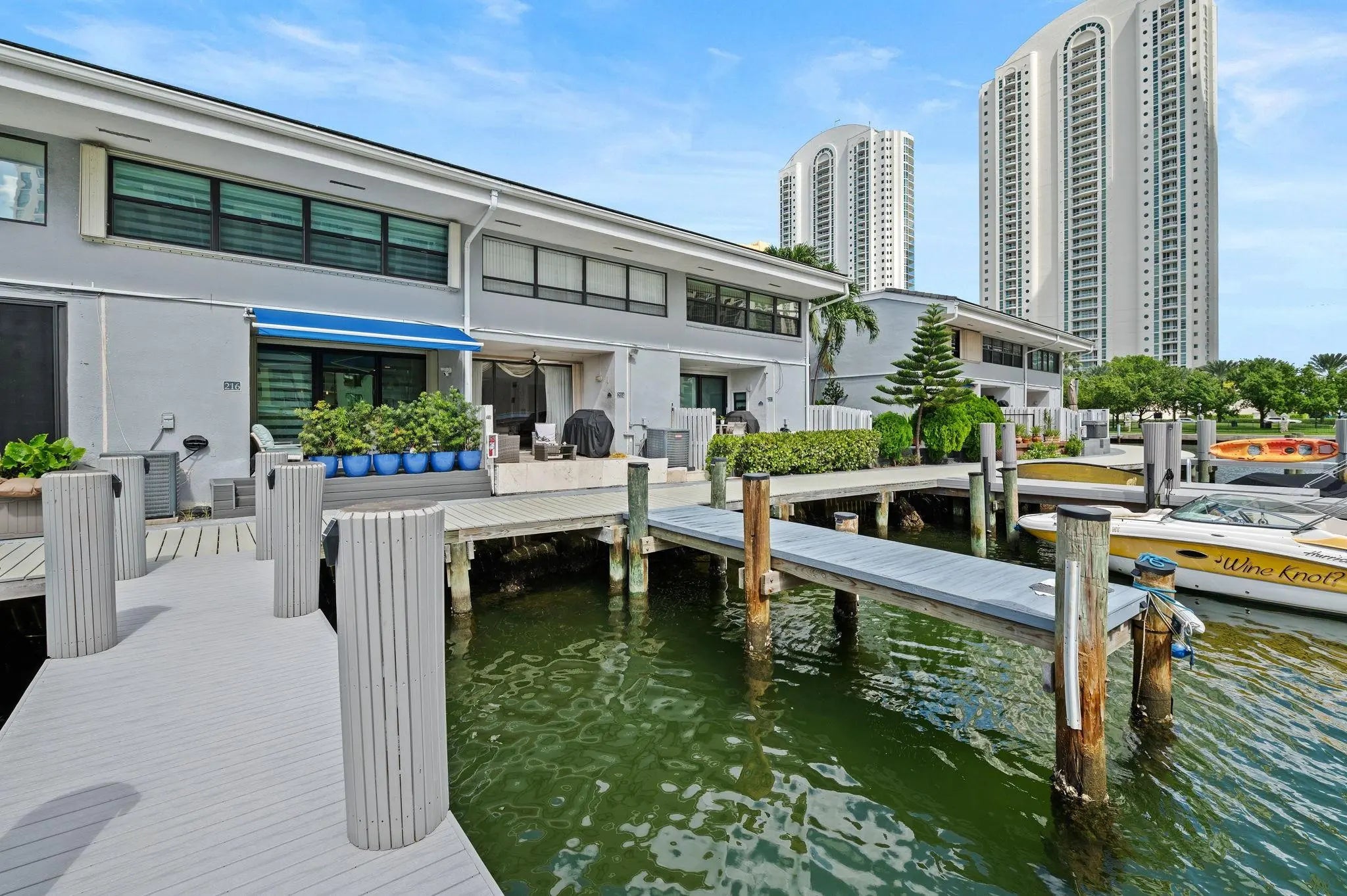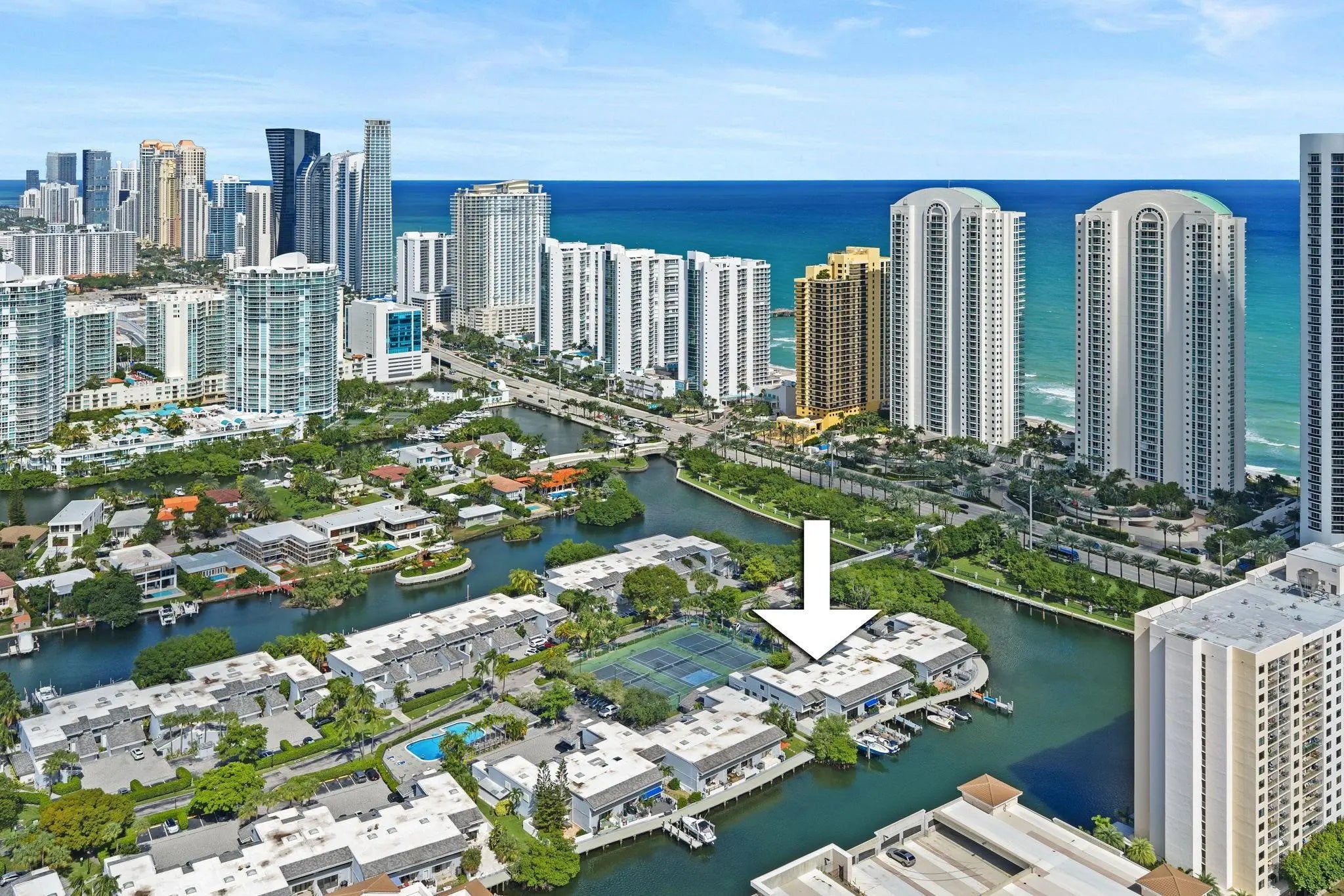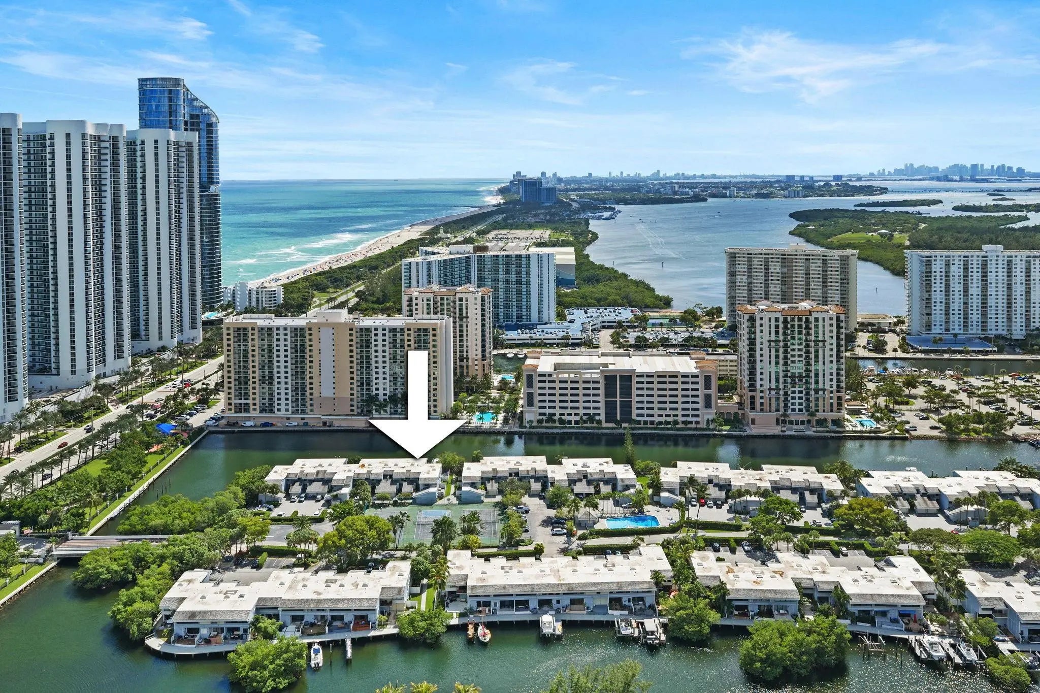 Exclusive townhouse, located on a private, secluded gated island in Sunny Isles with 24/7 security. Updated and renovated contemporary townhouse featuring three bedroom, two-and-a-half bathroom with high ceiling throughout. Sky light. Brand new appliances, flooring, kitchen, bathrooms, railing, painting, deck, new impact windows and doors and new 35' Dock with easy ocean access. Amenities include a tennis courts, two pools, exercise room, community room, and racquetball court. Nearby distance to the beach, major shopping centers, restaurants, and A+ schools. Roof is approx. 3 year old (per HOA). Maintenance fee includes Cable, Internet, wind and flood insurance, water, sewer, and roof. Could be sold furnished. Ready to move in. Black out shades in Master. Bluetooth Lutron lighting, WIFI water heater, Ring cameras and lights and Nest thermostat. Exclusive townhouse, located on a private, secluded gated island in Sunny Isles with 24/7 security.Brand new epoxy floor in garage, currently used as home gym and storage. Could be sold furnished.