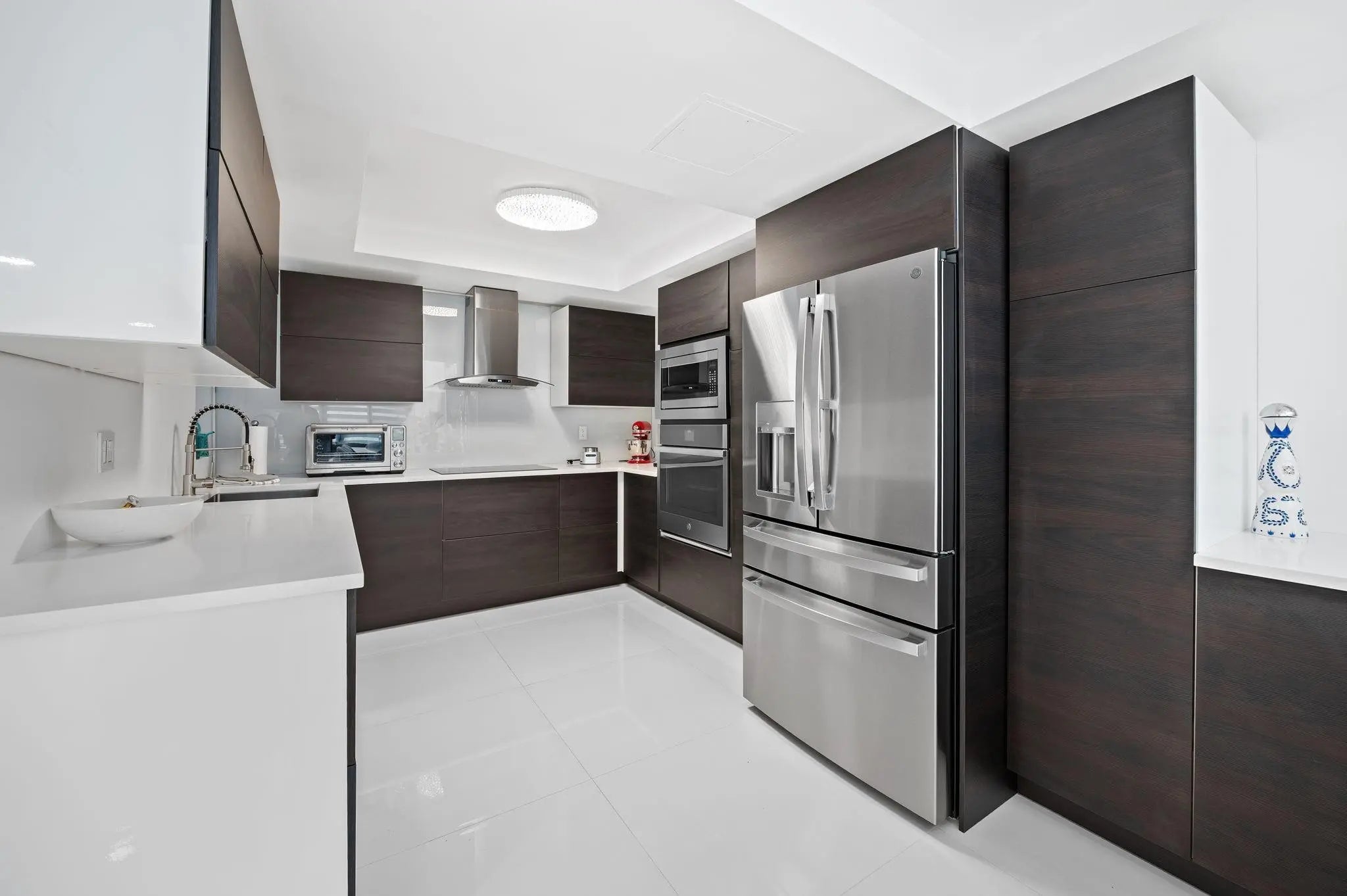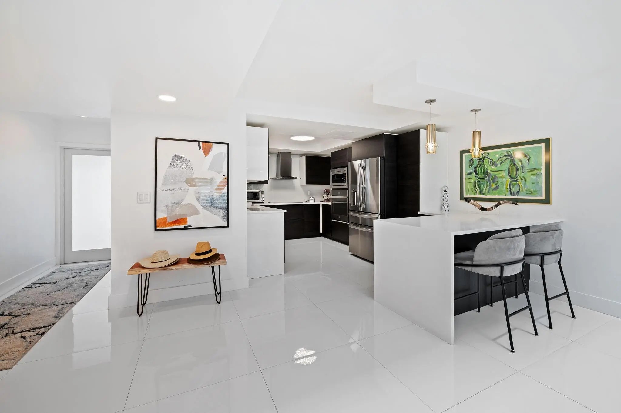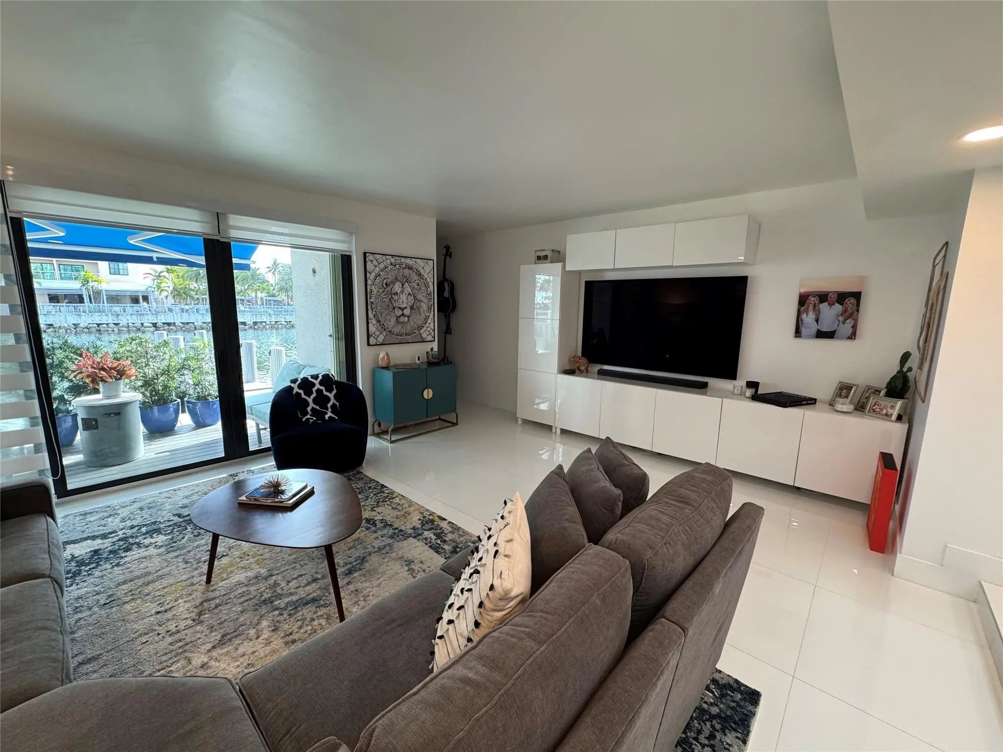 Exclusive townhouse, located on a private, secluded gated island in Sunny Isles with 24/7 security. Updated and renovated contemporary townhouse featuring three bedroom, two-and-a-half bathroom with high ceiling throughout. Sky light. Brand new appliances, flooring, kitchen, bathrooms, railing, painting, deck, new impact windows and doors and new 35' Dock with easy ocean access. Amenities include a tennis courts, two pools, exercise room, community room, and racquetball court. Nearby distance to the beach, major shopping centers, restaurants, and A+ schools. Roof is approx. 3 year old (per HOA). Maintenance fee includes Cable, Internet, wind and flood insurance, water, sewer, and roof. Could be sold furnished. Ready to move in. Black out shades in Master. Bluetooth Lutron lighting, WIFI water heater, Ring cameras and lights and Nest thermostat. Exclusive townhouse, located on a private, secluded gated island in Sunny Isles with 24/7 security.Brand new epoxy floor in garage, currently used as home gym and storage. Could be sold furnished.