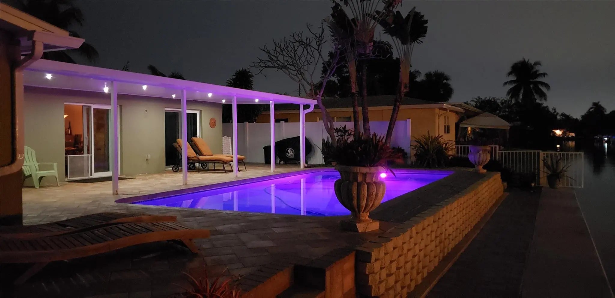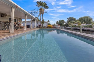 Hidden Gem! Beautiful completely move in ready 3 Bed, 2 Bath, 2 Car Garage with lots of storage Waterfront Property. This entertainers dream home comes with New Seawall & Dock & replaced old galvanized pipes & sewer lines. Enjoy yourself by the saltwater heated pool. Incl pool maintenance equip. Or relax on the 490 sq ft patio with fans & tv. New a/c & tank less water heater. Tinted impact windows & doors. Beautiful solar landscaping with potted plants. Incl. Lawn maintenance equip. Newer appliances with 2 refrig. with filtered water & icemaker. Plus wine frig. Smart alarm, camera & sprinkler syst. Backup generator. Lots of upgrades near premium schools on cul de sac like property. Bridge is being raised from 6.44 high tide- low tide 8.36 to 10.37 High tide and 12.29 low tide. Sept 26 A totally remodeled and gorgeous home with New Sea Wall & Dock. New plumbing and sewer line. New premium white Metal roof. New 490' sq ft patio roof with dim high-hat lighting with wall fans & TV. New stucco soffit & vents. Saltwater pool system with pool heater. Beautiful solar landscape lighting. Potted landscape plants. Newly landscaped courtyard. New traveline circular driveway. Pool maintenance equipment, Electric lawn maintenance equipment. New remote control backup generator. Tinted impact windows & doors. New A/C & tankless water heater. Newly remodeled bathrooms, kitchen with soft closing drawers. Newer appliances with 2 refrig & filtered water system. New wine fridge. Washer/Dryer. Upgrade electric & light dim switches. Lots indoor storage & shed. Premium schools. Alarm sys. cameras. sprinkler sys