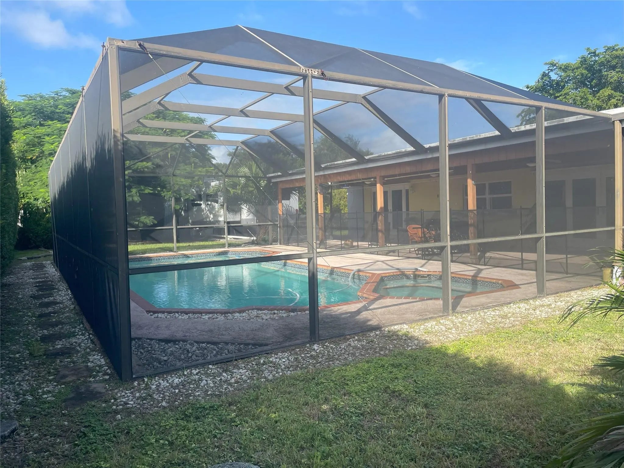 OWNER FINANCING AVAILABLE! Unique corner property in a neighborhood. Situated on a low-traffic street it features a private backyard with a screened pool, whirlpool spa, and a covered entertainment area. Equipped with a whole-home generator connected to City Gas and a one-bedroom RV installed w/electric, water and plumbing. This well-loved home with impact windows and a 2017 shingle roof guards a spacious living and dining room, updated kitchen with a breakfast bar that opens to the family room. The master bedroom opens to bay windows, plenty closet space and master bathroom; across the hall a remodeled bathroom and two bedrooms. Additionally, the two-car garage with automatic doors conceals a laundry area equipped with a washer, dryer, and a new water heater