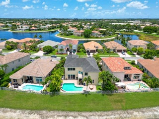 Discover lakeside serenity in Black Diamond. Wellington’s 24/7 guard-gated family community. This 6-bed, 4-bath Tiffany model spans 4,123 sq ft with 62' direct lake shoreline, and nearby A-rated schools. Enter the 22' high living room with floor-to-ceiling impact windows showcasing lake views. Gourmet kitchen features granite counters, LG high-end stainless appliances, gas, and a big island—perfect for gatherings. 2025 smart upgrades include Nest thermostats, app-controlled lighting, ADT color touchpads. Upstairs, the master suite boasts dual walk-in closets, shower, soaking tub and a private balcony. Outside, enjoy a lanai, ext. patio, sparkling pool & lush landscaping. HOA includes high speed internet, clubhouse, heated pool, fitness ctr, tennis courts, and walking paths. Call me today! Black Diamond has 2 builders, the homes on Bay View were built by the premier neighborhood builder Centerline Homes. Steel and Concrete second floor, full private yard (not zero lot line) 10-22’ high ceilings & tall doors. Superior product selection. House is NOT being rented. Renovated in 2025. Owner is relocating