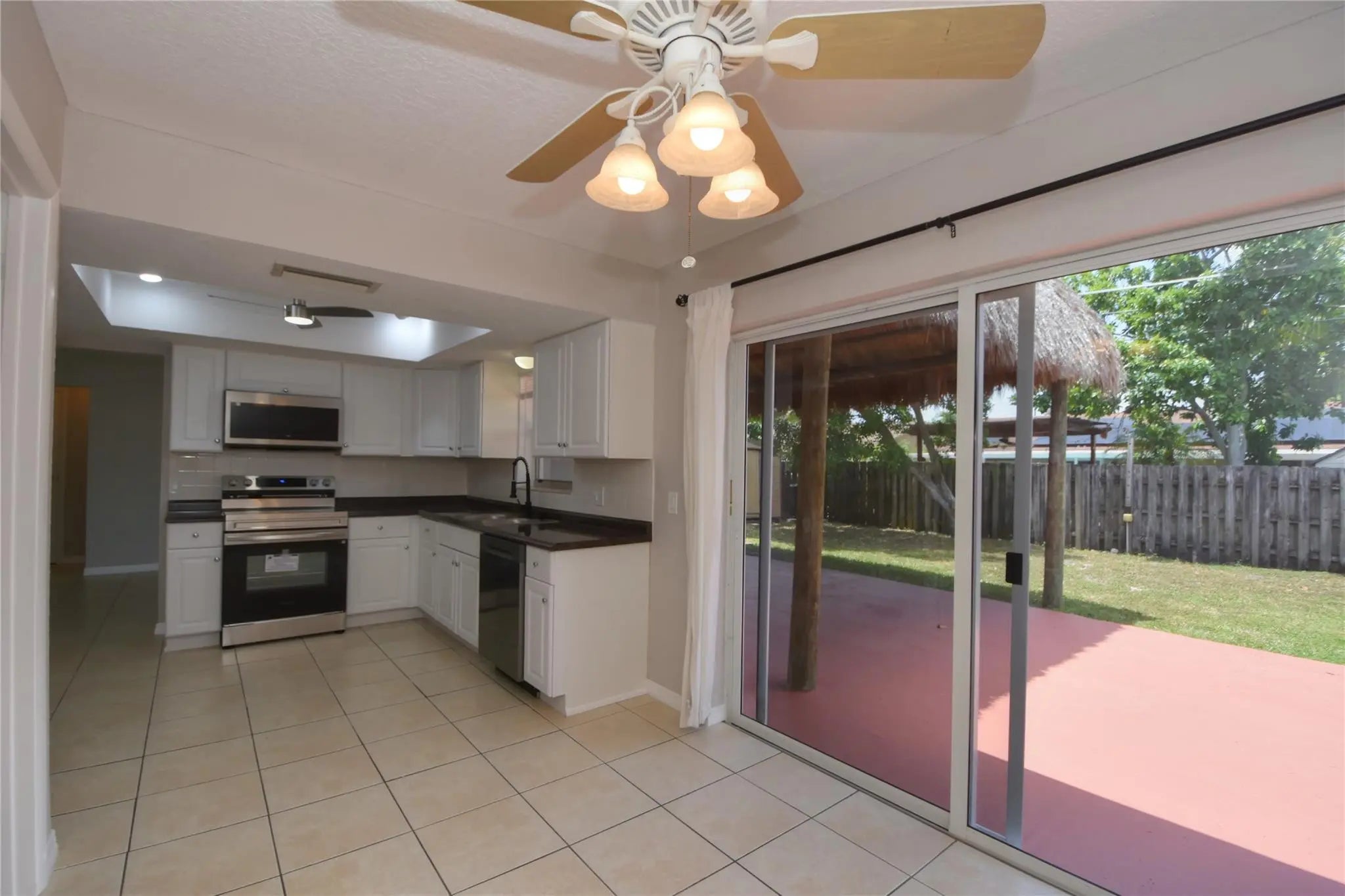Move-in ready 3BR/2BA single-family home with no HOA! Freshly painted inside and out with a resurfaced asphalt driveway and walkway. New landscaping with automatic sprinkler system. Inside, enjoy luxury vinyl plank flooring in all bedrooms and tile throughout the rest—no carpet! The kitchen features brand-new stainless steel appliances, including stove, dishwasher, and microwave. Relax or entertain in the spacious backyard with tiki hut and large patio area. Partial impact windows. This updated home offers comfort, style, and low-maintenance living—don’t miss out!