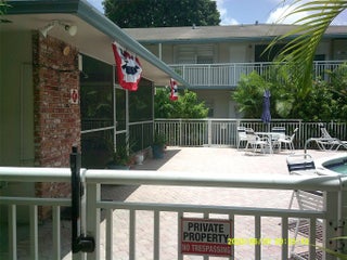 NEWLY PAINTED. ALL REDONE UNIT. BRAND NEW KITCHEN WITH BUTCHERS BLOCK COUNTER TOPS PLUS NEW CABINETS! NEW KITCHEN SINK AND NEW WATER HEATER! NEW FLOORING IN LIVING ROOM/DINING ROOM AND MASTER BEDROOM. BRAND NEW BATHROOM SHOWER, SINK AND COMMODE WITH NEW MIRROR. WALK-IN CLOSET. PATIO IS SCREENED IN WITH VIEW OF FOUNTAIN. FIRST FLOOR CORNER UNIT. NEXT TO POOL AND CLUBHOUSE.