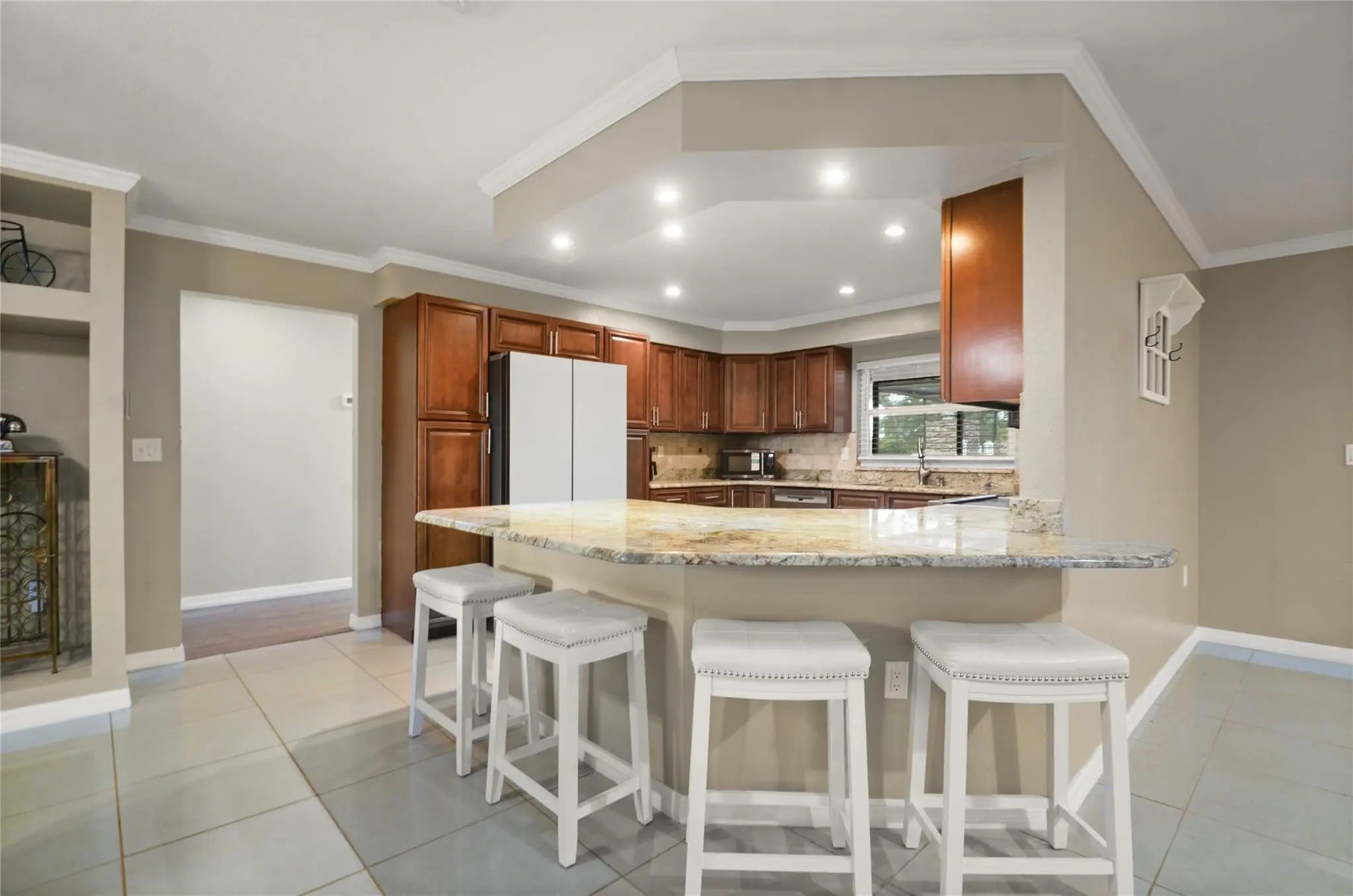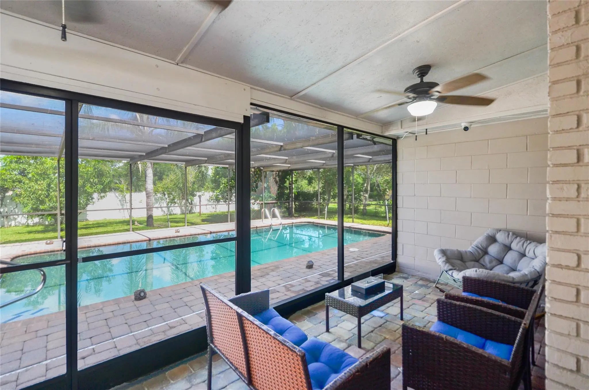 Welcome to this beautifully updated 4-bed, 2-bath home perfect for both entertaining and relaxing. Enjoy open living and dining areas, a spacious kitchen with modern appliances, and a split-bedroom layout offering privacy. The master suite features a soaking tub, separate shower, and dual sinks. Additional highlights include an office/den, new hurricane windows, a new roof, upgraded plumbing, a whole-house generator, and a security system. The backyard is a true oasis with a pool, summer kitchen, pizza oven, fireplace, and lush landscaping with fruit trees. Schedule your private tour today!