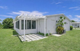 MOVE-IN-READY, WATERFRONT HOME priced at just $299K! Located on a LARGE, PIE-SHAPED, WATERFRONT LOT, this well-maintained 2BR home features NEWER WATERPROOF WOOD FLOORS, freshly painted interior, and UPDATED BATHROOM. The MODERN KITCHEN offers white shaker cabinets, quartz countertops, and matching stainless steel appliances. Enjoy PEACEFUL WATER VIEWS from the kitchen, living area, primary bedroom, and ENCLOSED FLORIDA ROOM with WINDOWS. Energy-efficient solar panels keep electric bills under $100/month. NEW 2023 WATER HEATER & NEW 2020 A/C. Located in an active 55+ community with low HOA covering lawn care, exterior painting every few years, and amenities. WATERFRONT LIVING FOR UNDER $300K! MOVE IN READY 2BR HOME on a LARGE PIE-SHAPED, WATER FRONT LOT. New waterproof wood floors, freshly painted interior, 2020 AC, 2023 WATER HEATER; OPEN LAOUT; LOW HOA FEES+++ SELLER MOTIVATED!