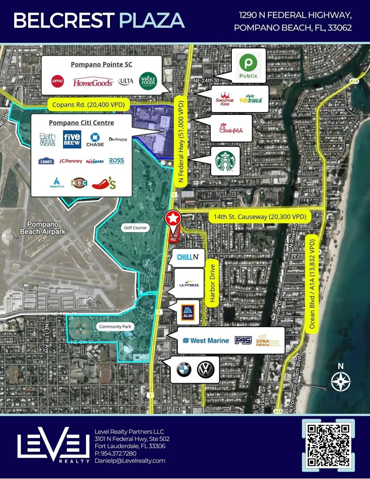 End-cap dry retail space on the north side of the plaza with huge parapet signage and excellent visibility from both Federal Hwy and Harbor Bay Drive. Wood floors, shelving, kitchenette, and ADA bathroom already built in space!Join an active community of long-standing and exciting tenant mix.450' frontage on Federal Hwy with 55,000 VPDLocated 3 miles East of I-95, 1 mile West of A1AOnly A1A access between Hilsborro to AtlanticConnect to underserved retail market on barrier island via 14th St. CausewayPull residents from booming Lighthouse Point & Pompano BeachSurrounded by many major retailers, economic drivers, and new construction.