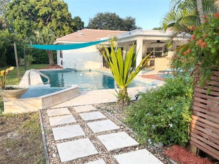 Don’t miss this opportunity! One of the largest homes in Coral Springs at just under 4000 sq ft, on nearly a half acre of land. View of canal. Exquisite 4 bedroom, 4 bathroom estate with bonus room - can be extra bedroom, office or movie room-sweeping driveway, sprawling lot & lush landscaping on peaceful cul-de-sac in the desirable neighborhood of 'The Oaks'. NO HOA. ‘A’ rated schools.This beautifully kept home features two spacious master suites, huge walk in closets, a cedar closet, new roof 2025, 2022 a/c, new tile & a gourmet kitchen with custom cabinetry, stainless appliances & waterfall granite countertops. The resort style backyard boasts an oversized diving pool, fountain, gazebo, large garden with deck and gorgeous sunset views. The outside bar and grill features an open seating area to enjoy the lovely Florida evenings.The bathrooms are newly tiled, the master bath has a corner jacuzzi tub for a spa-like soak. Enjoy movies ,sports whatever entertainment that suits you in a family sized movie room . Pool has new diamond brite. Separate laundry room offers cabinetry and new washer dryer.Only a 20 minute drive to beautiful Pompano Beach! A 5 minute walk to local Oakwood Park, acres of green space along the canal, with playground, outdoor exercise equipment and fitness trail.
